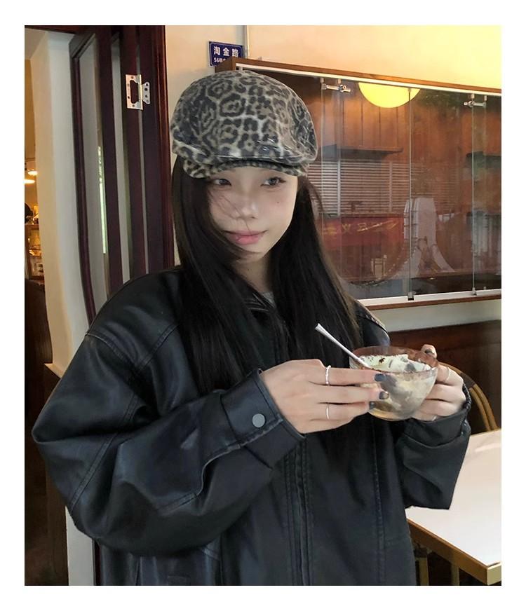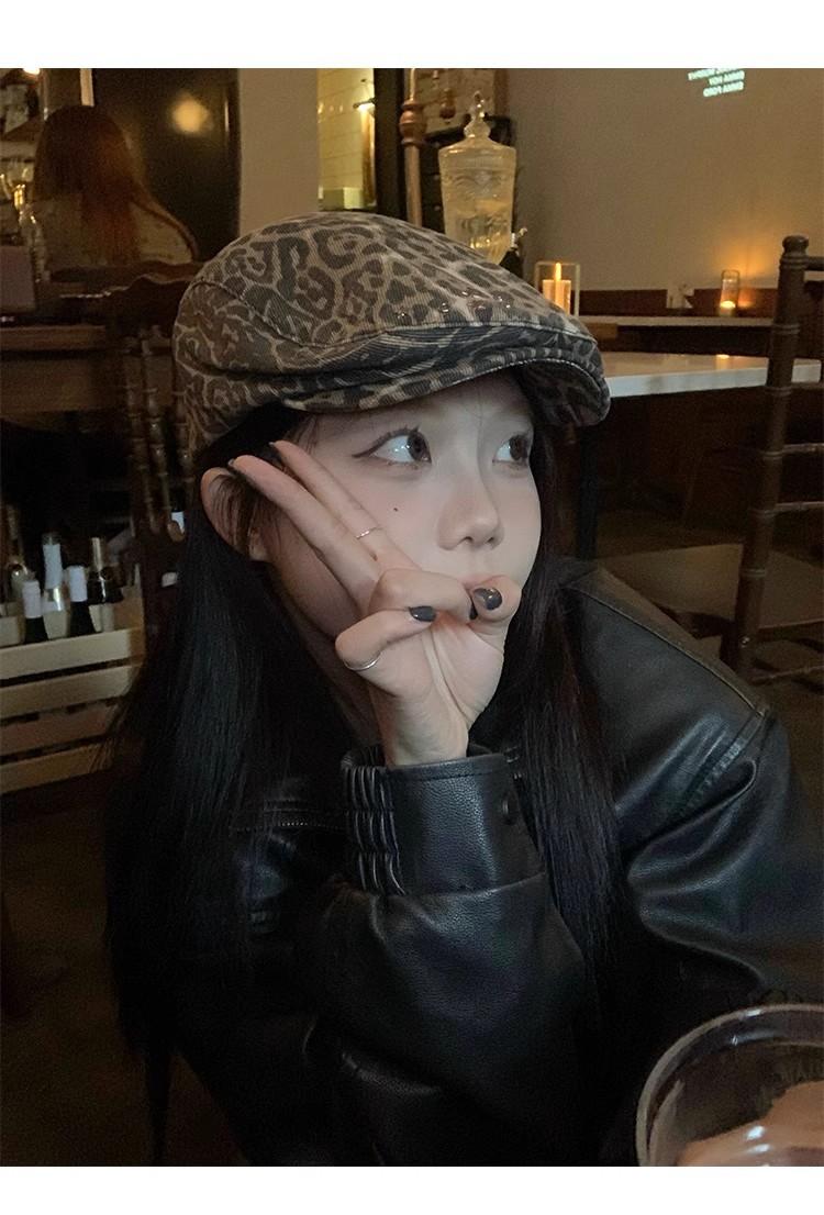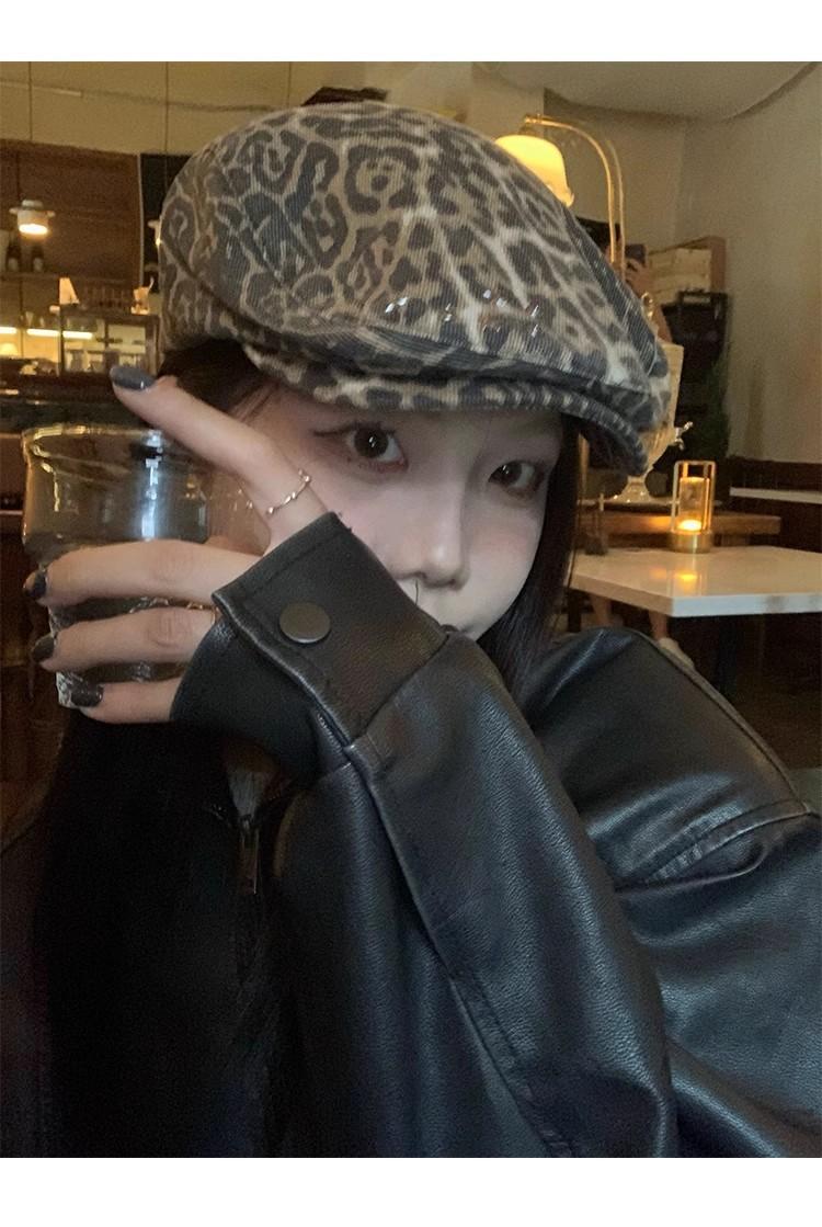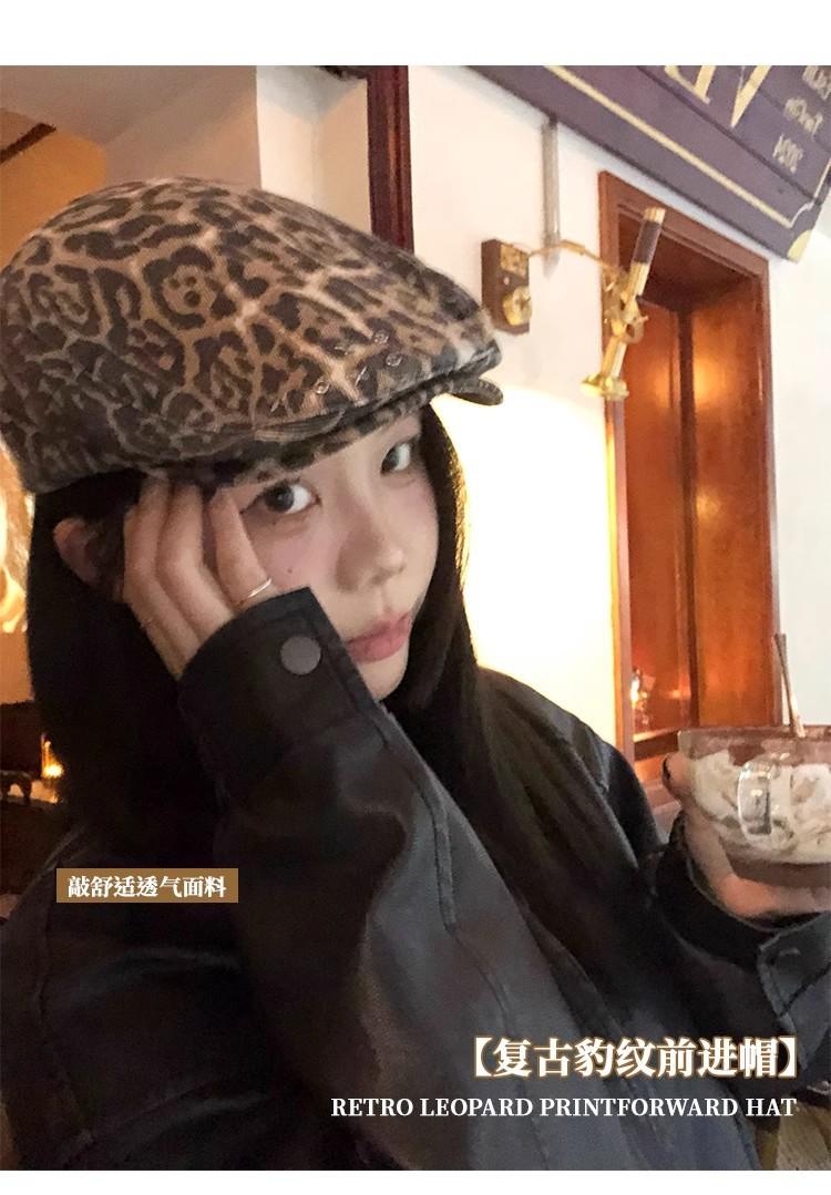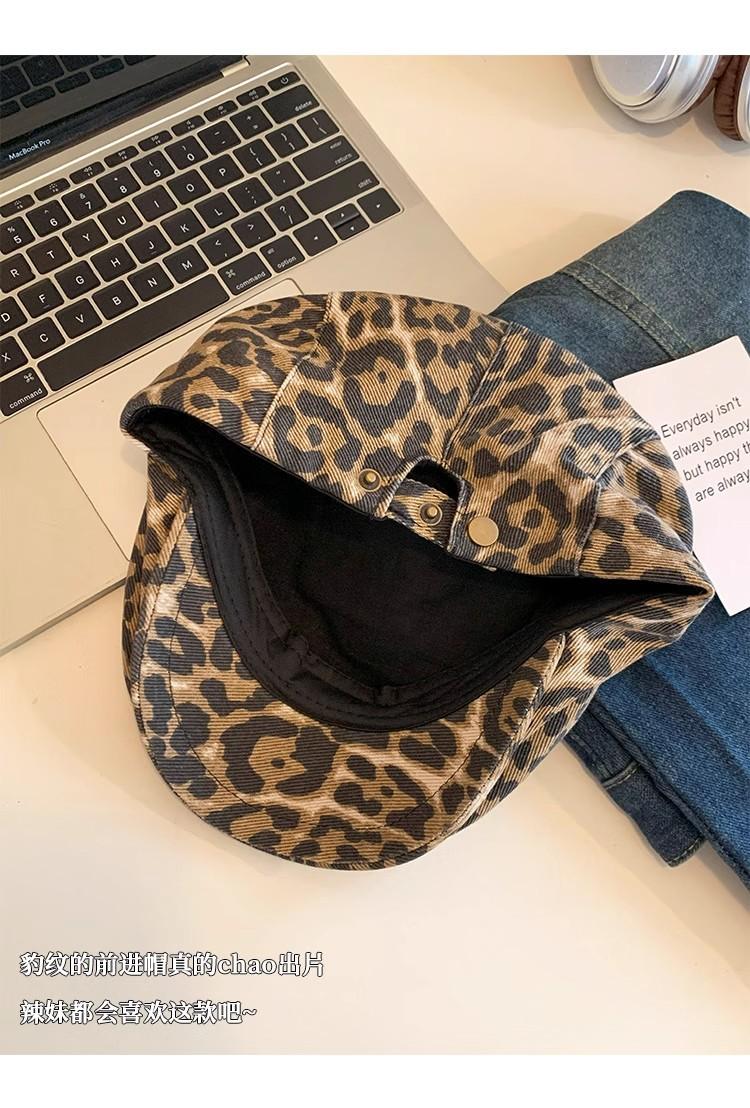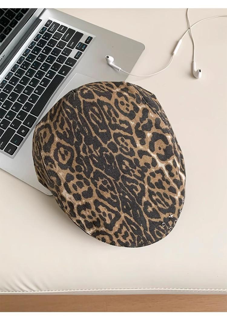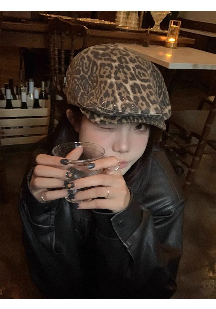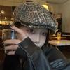 Boina pequeña con estampado de leopardo retro estilo americano para mujer, estilo Spice Girl Y2K, 2024