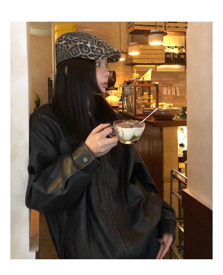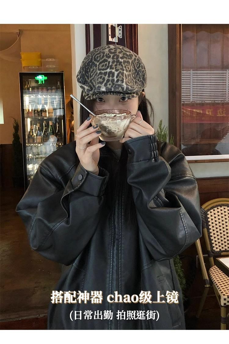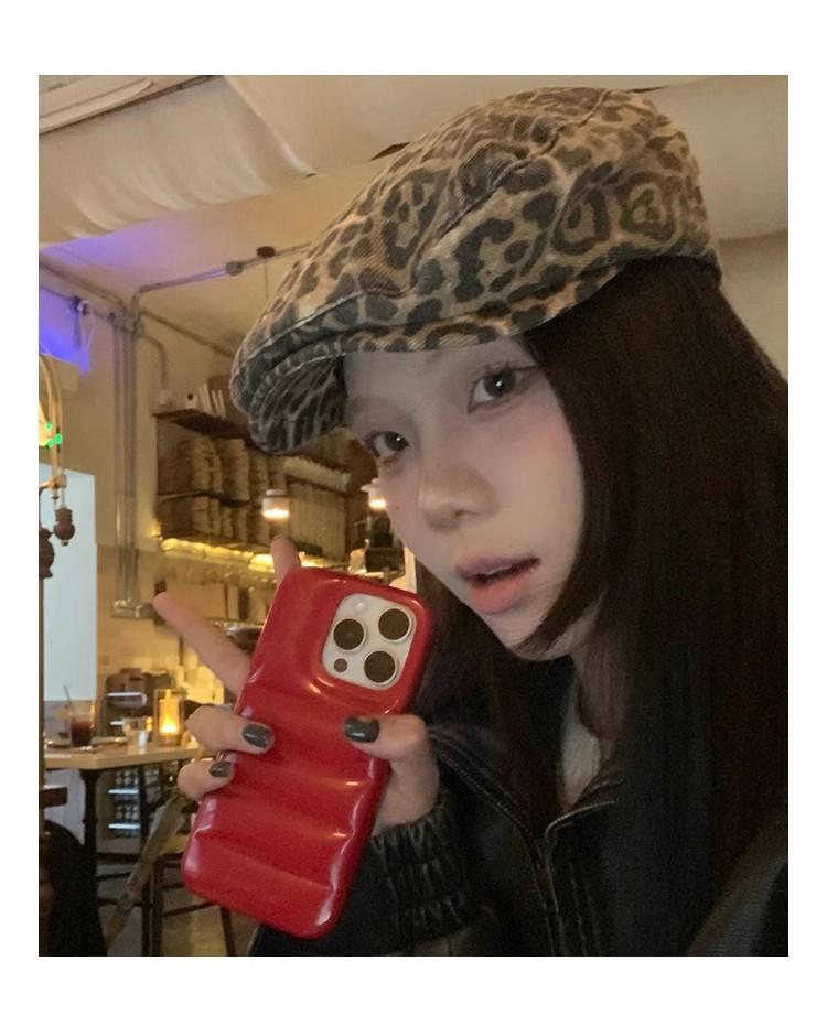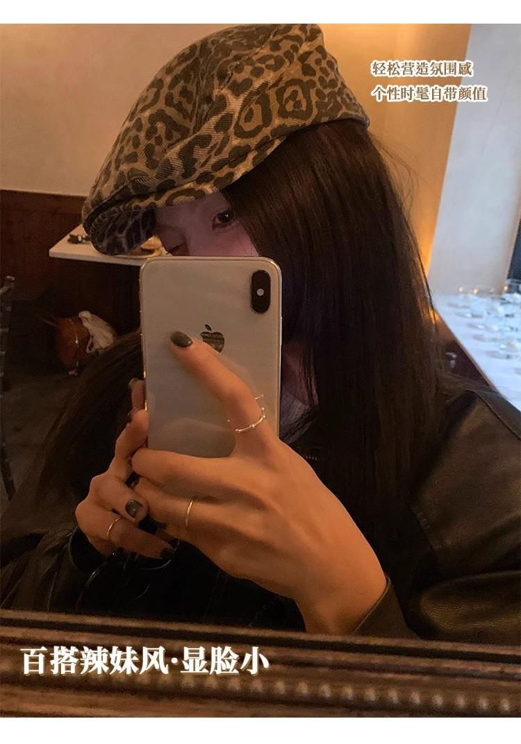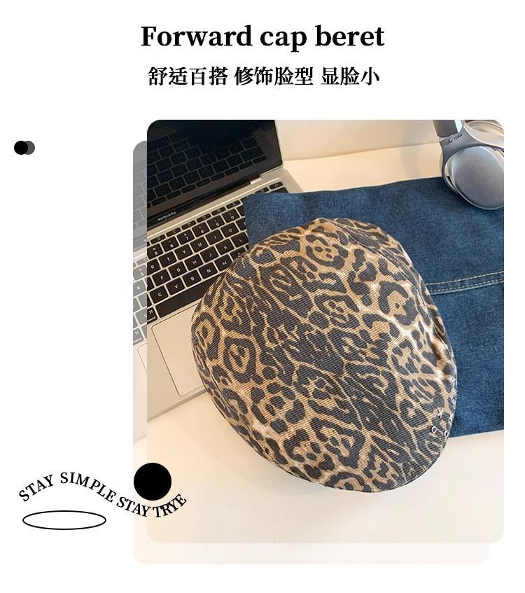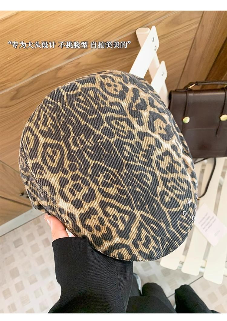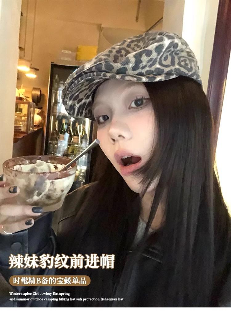 Boina pequeña con estampado de leopardo retro estilo americano para mujer, estilo Spice Girl Y2K, 2024