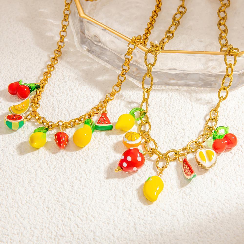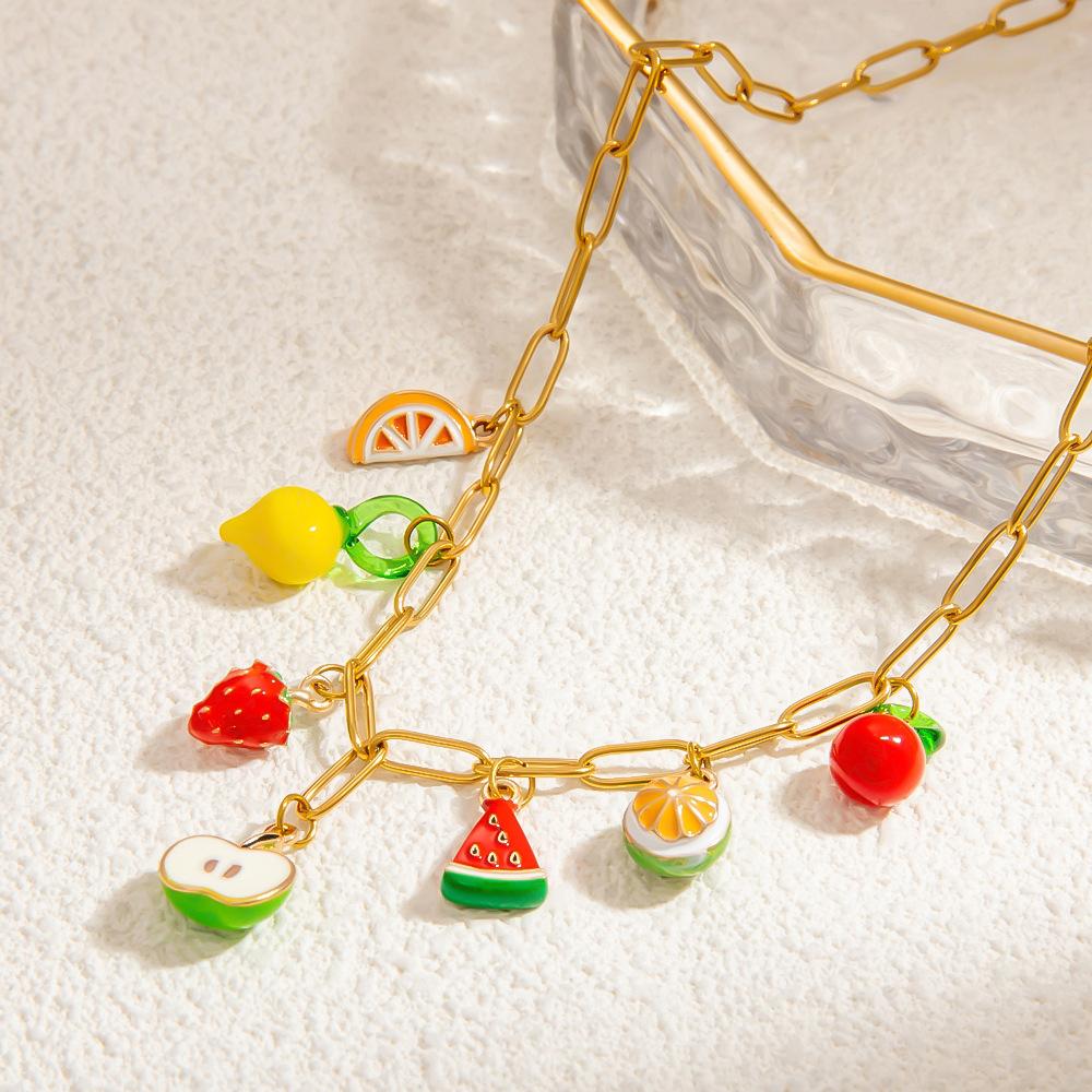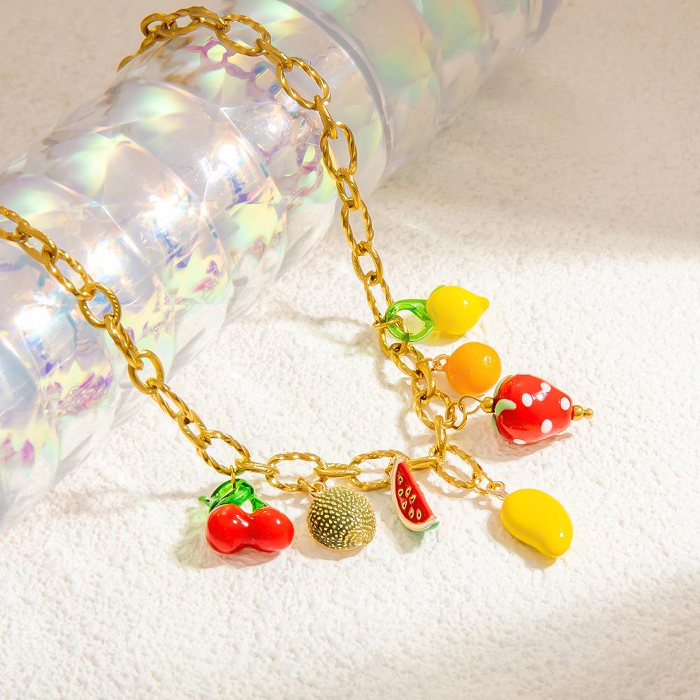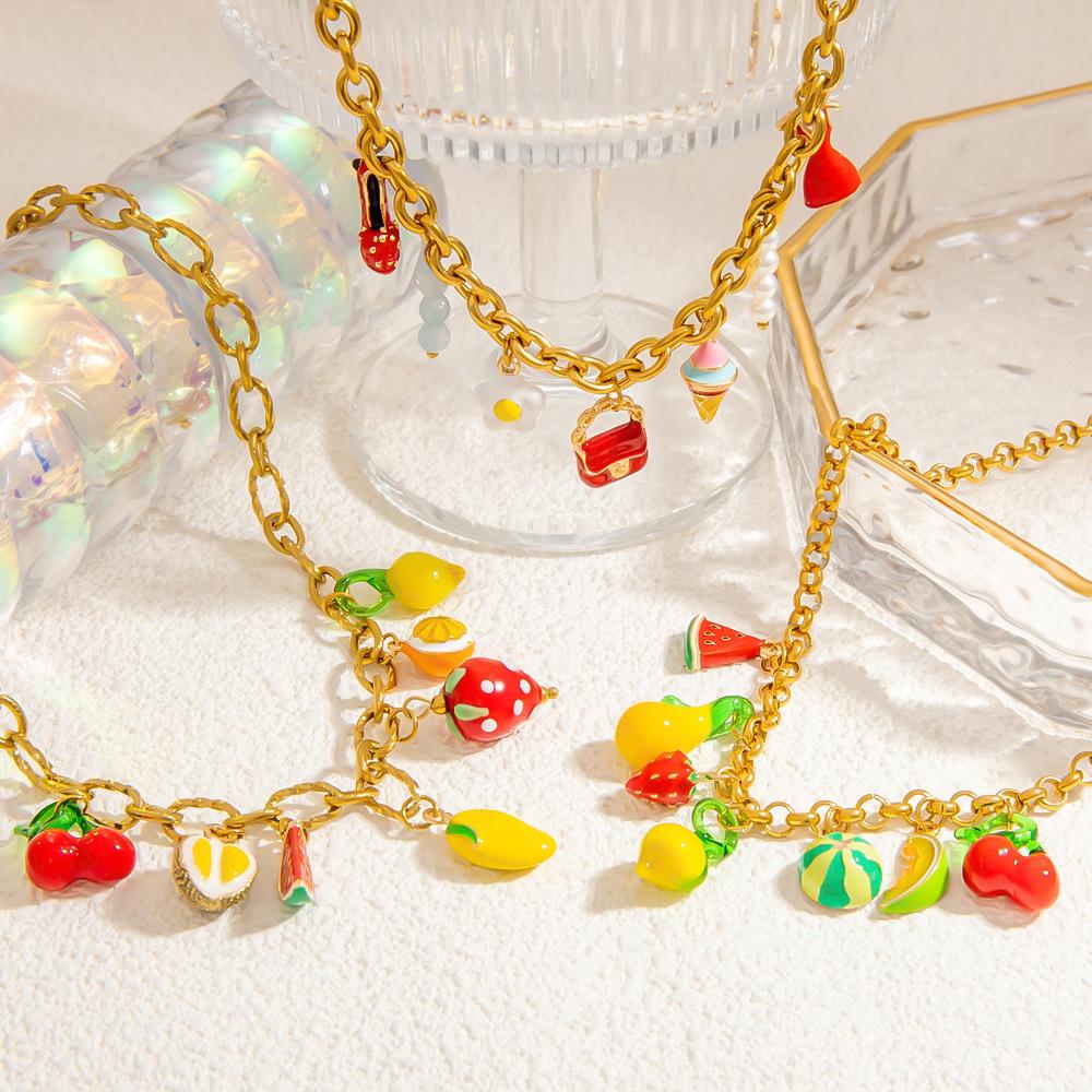 Collar de acero inoxidable transfronterizo de oro de 18 quilates con accesorios, colgante de glaseado de frutas de alta calidad, accesorios para colgante individual, joyería DIY con preservación del color.