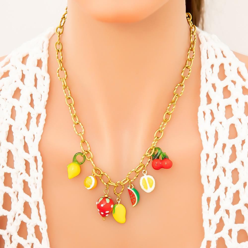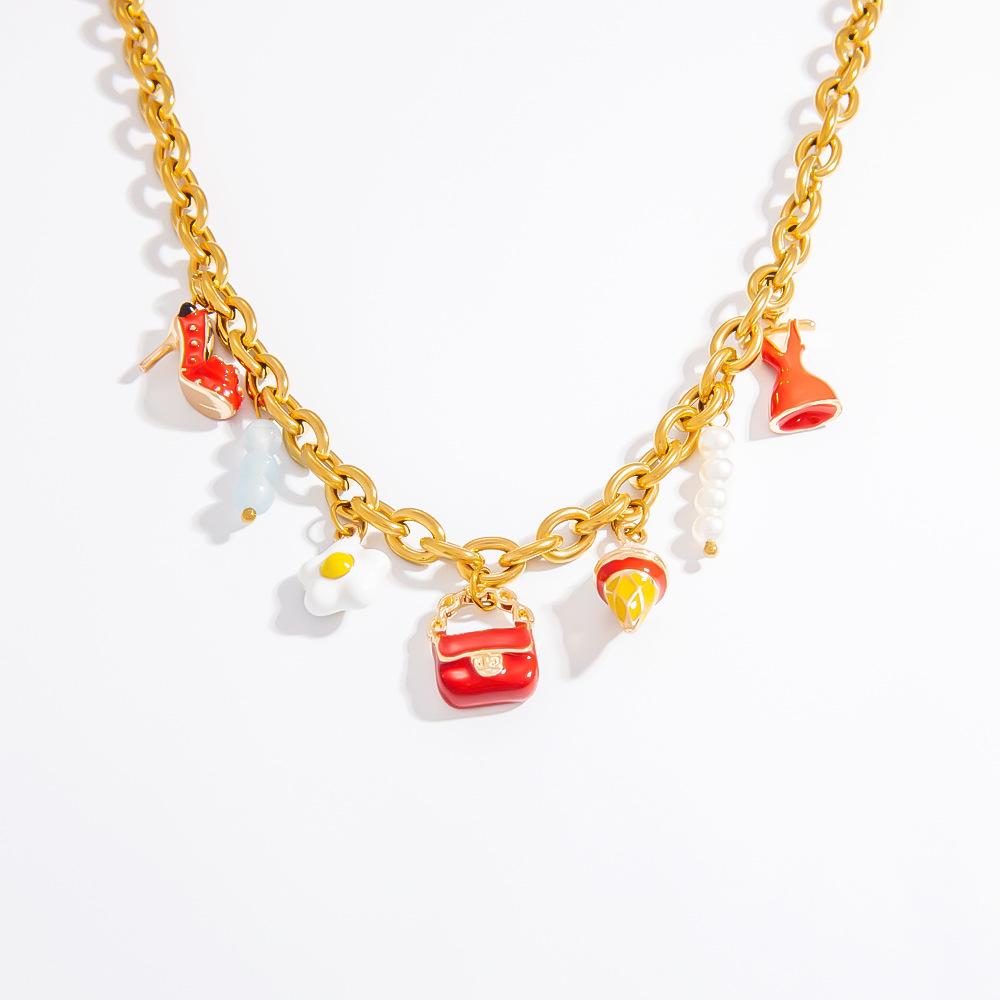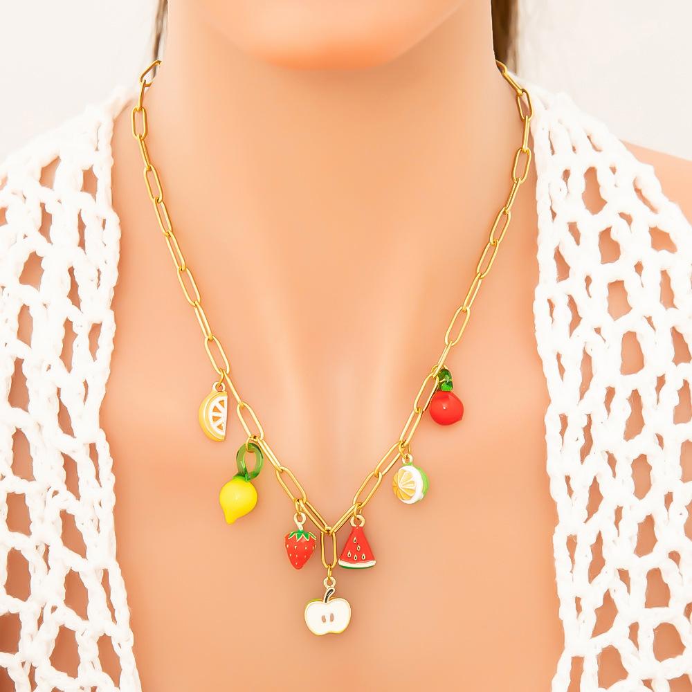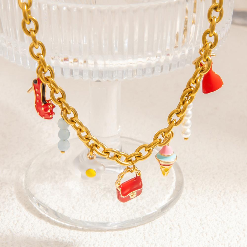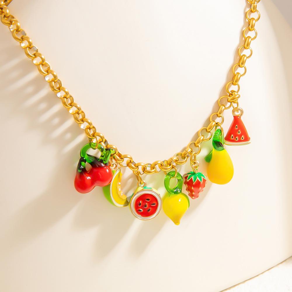 Collar de acero inoxidable transfronterizo de oro de 18 quilates con accesorios, colgante de glaseado de frutas de alta calidad, accesorios para colgante individual, joyería DIY con preservación del color.