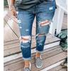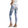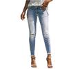 Pantalones vaqueros ajustados de algodón azul claro para mujer, de calidad Amazon, sexys, con rotos y bordes rasgados.