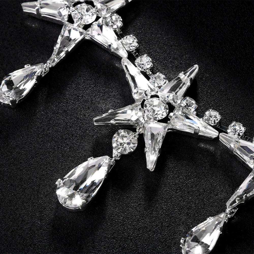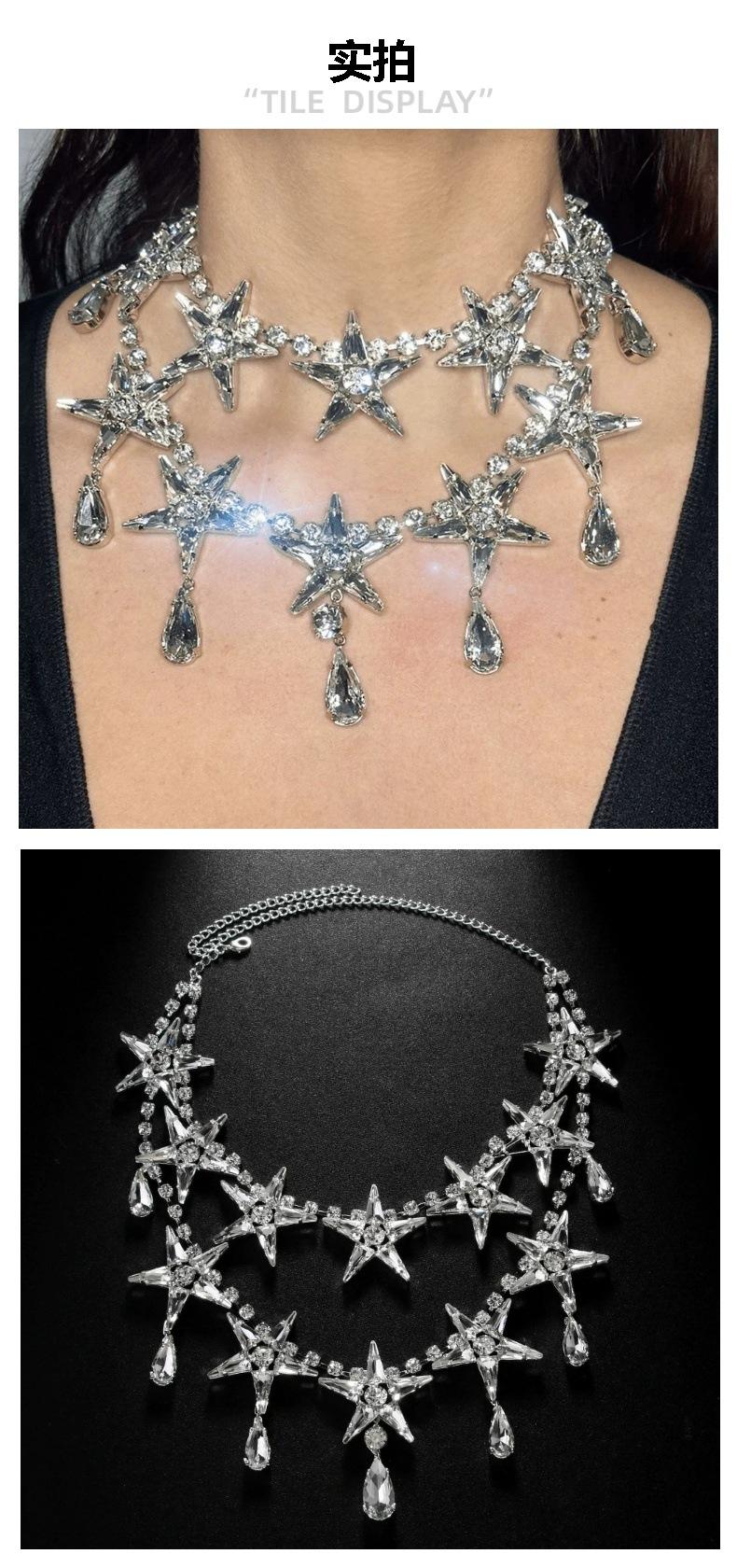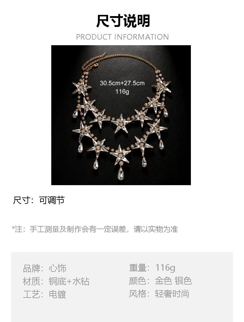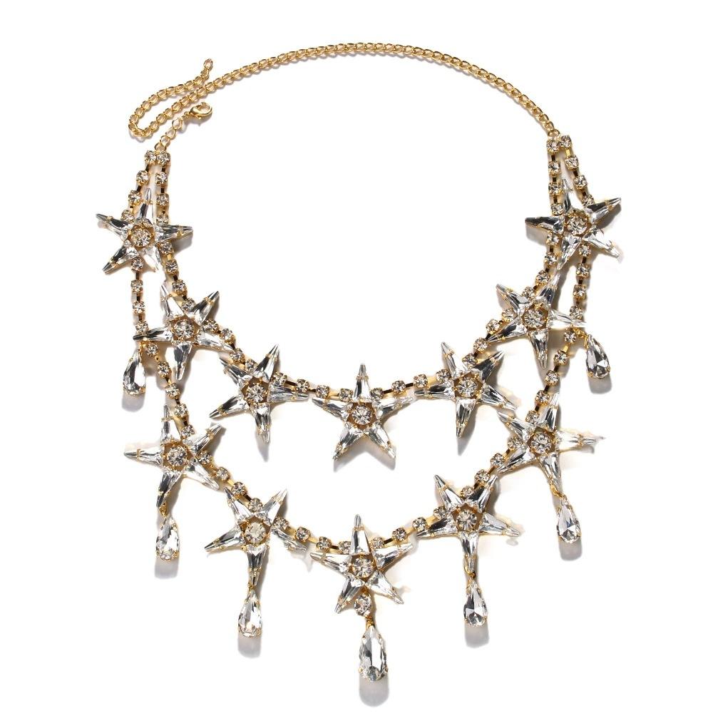 Collar de estrella de cinco puntas de doble capa con explosiones de AliExpress, cadena de clavícula con diamantes de imitación de alta calidad, estilo europeo y americano, con accesorios exagerados.
