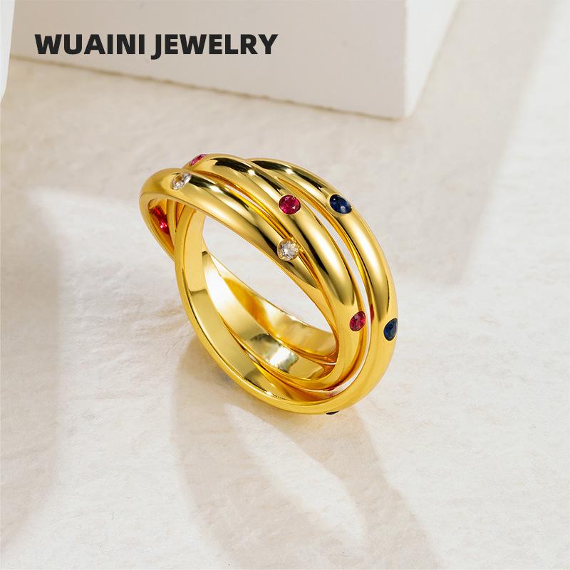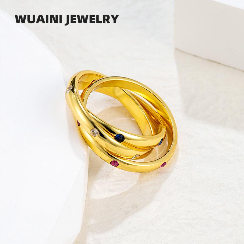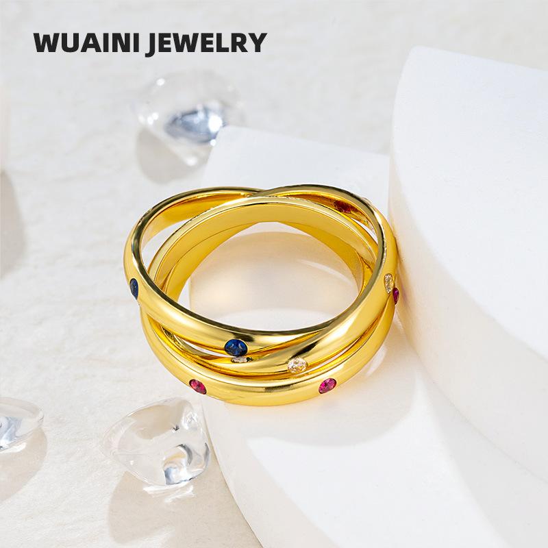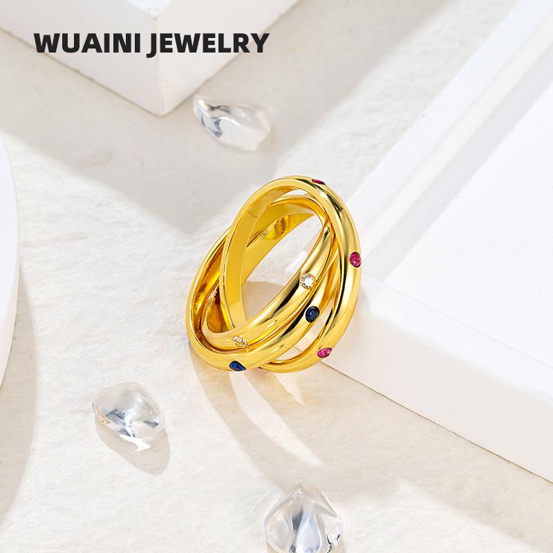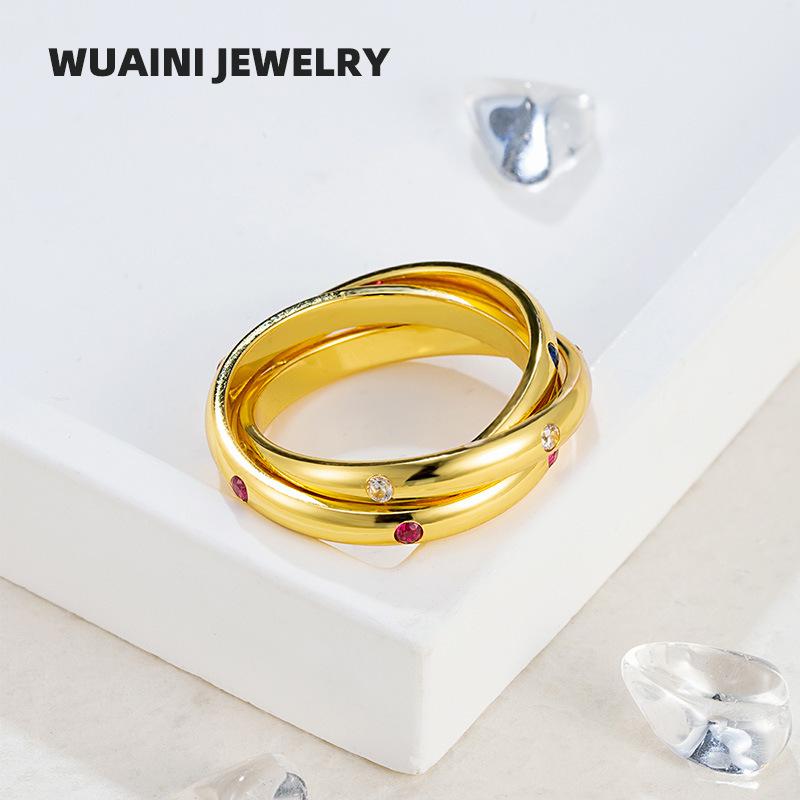 Anillo entrelazado de diamantes anillo de tres anillos anillo viento frío sensación de alta gama anillo para dedo de comida accesorios de alta gama de lujo ligero de nicho para mujer venta al por mayor