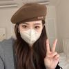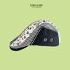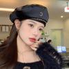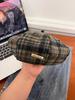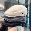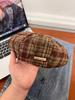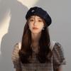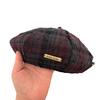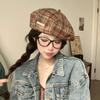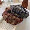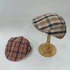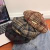 Sombrero de pintor estilo japonés retro a cuadros con bloques de color hacia adelante para mujer, boina pequeña de verano británica con cabeza grande y diseño versátil.