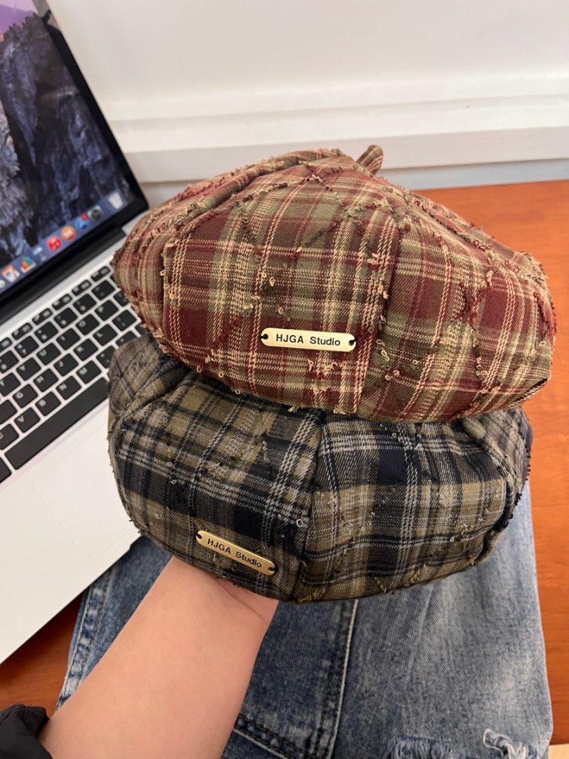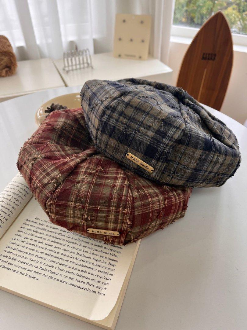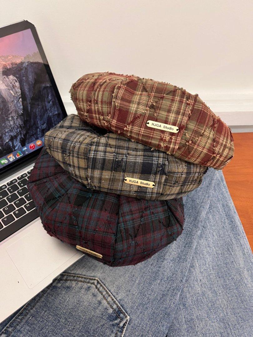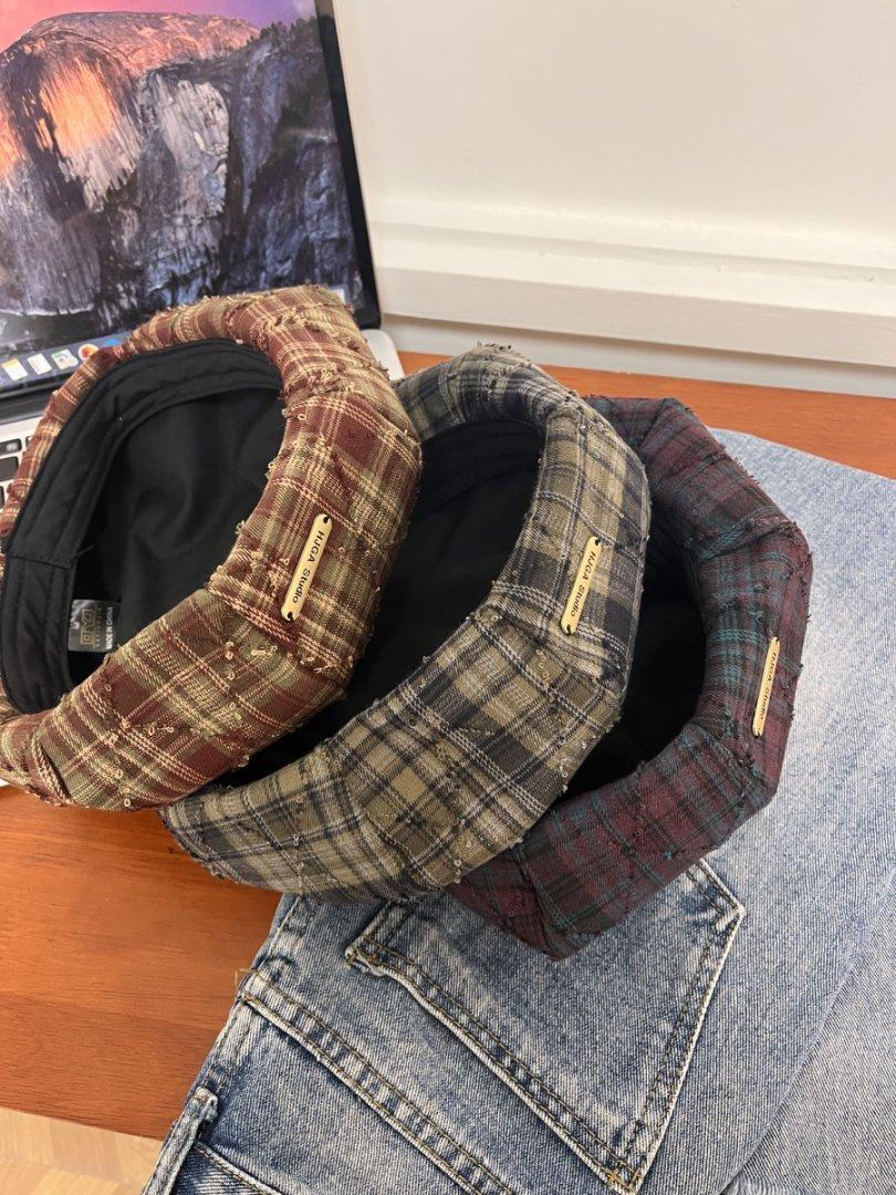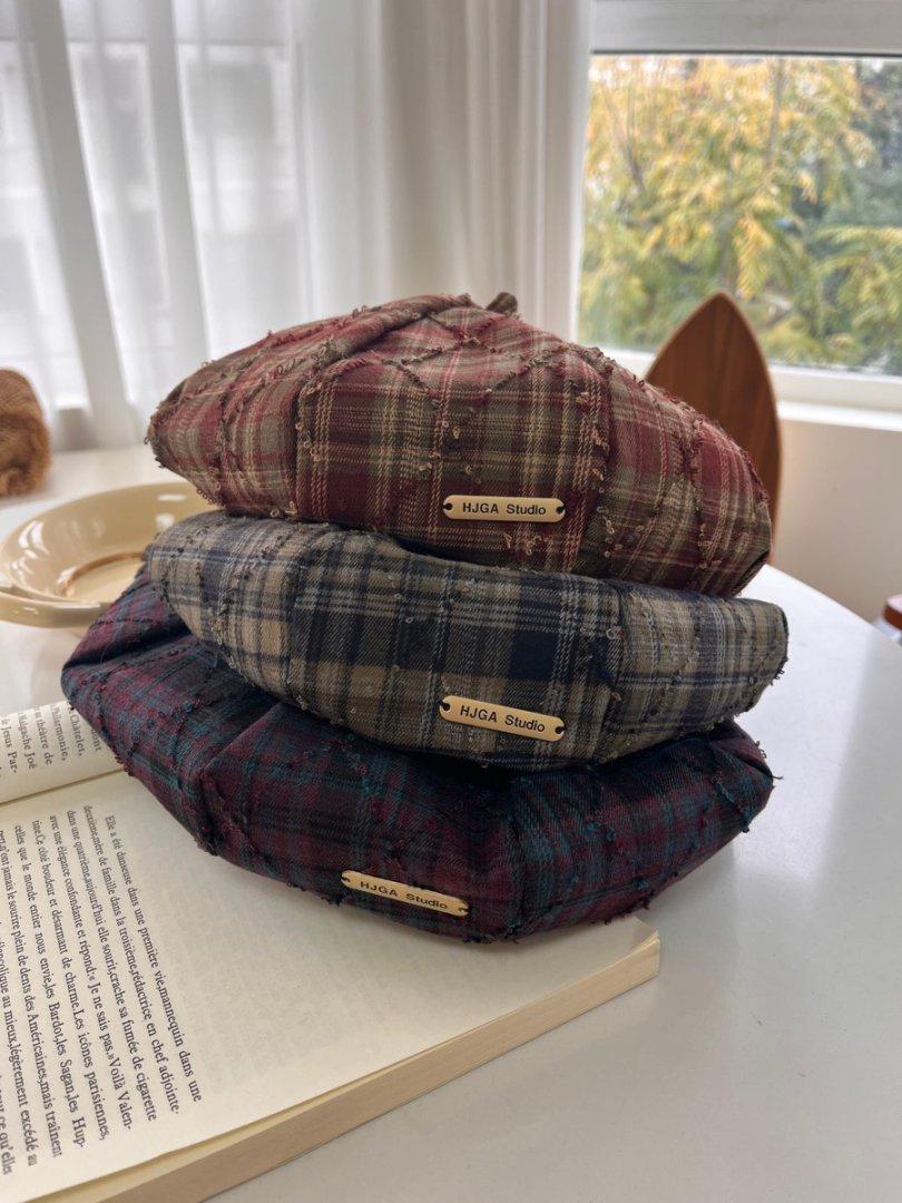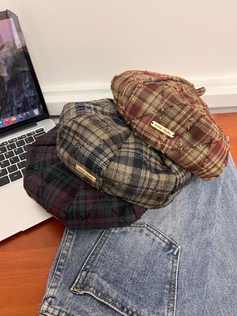 Dyj plaid beret-red plaid, Dyj plaid beret-purple plaid, Dyj plaid beret-blue grid