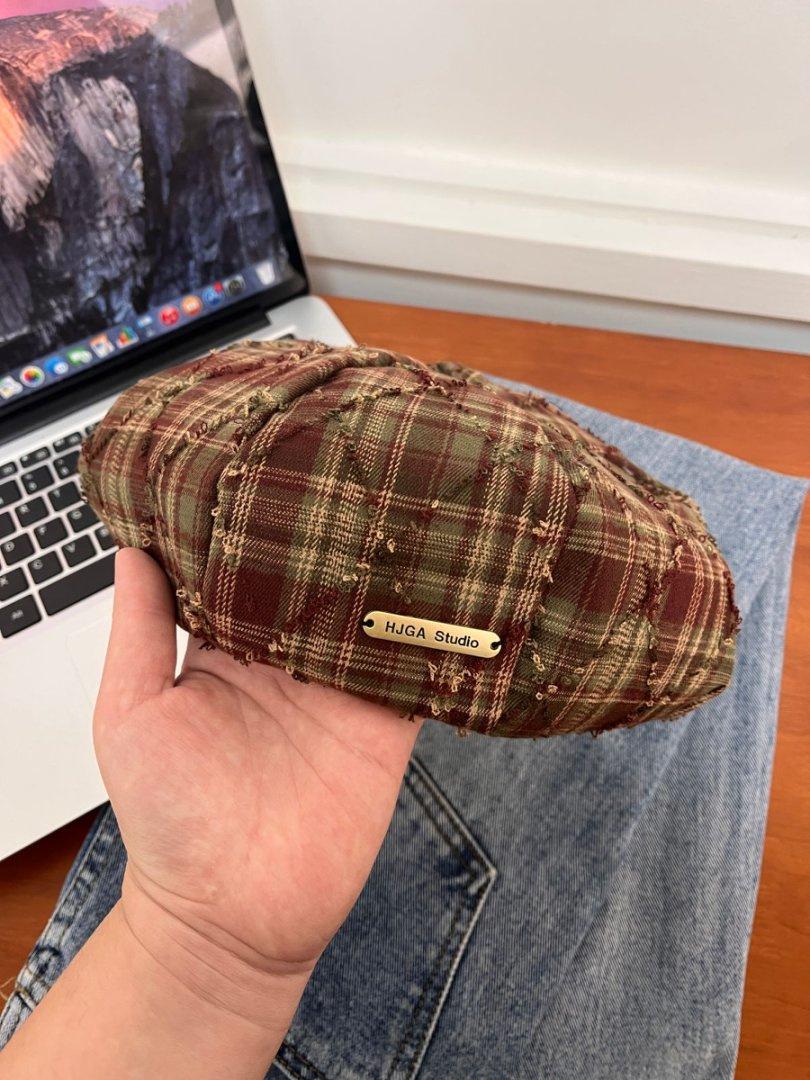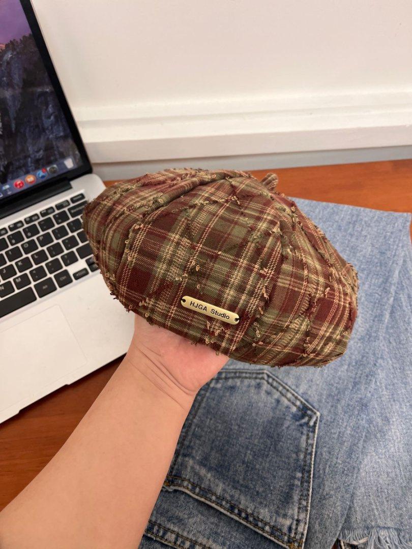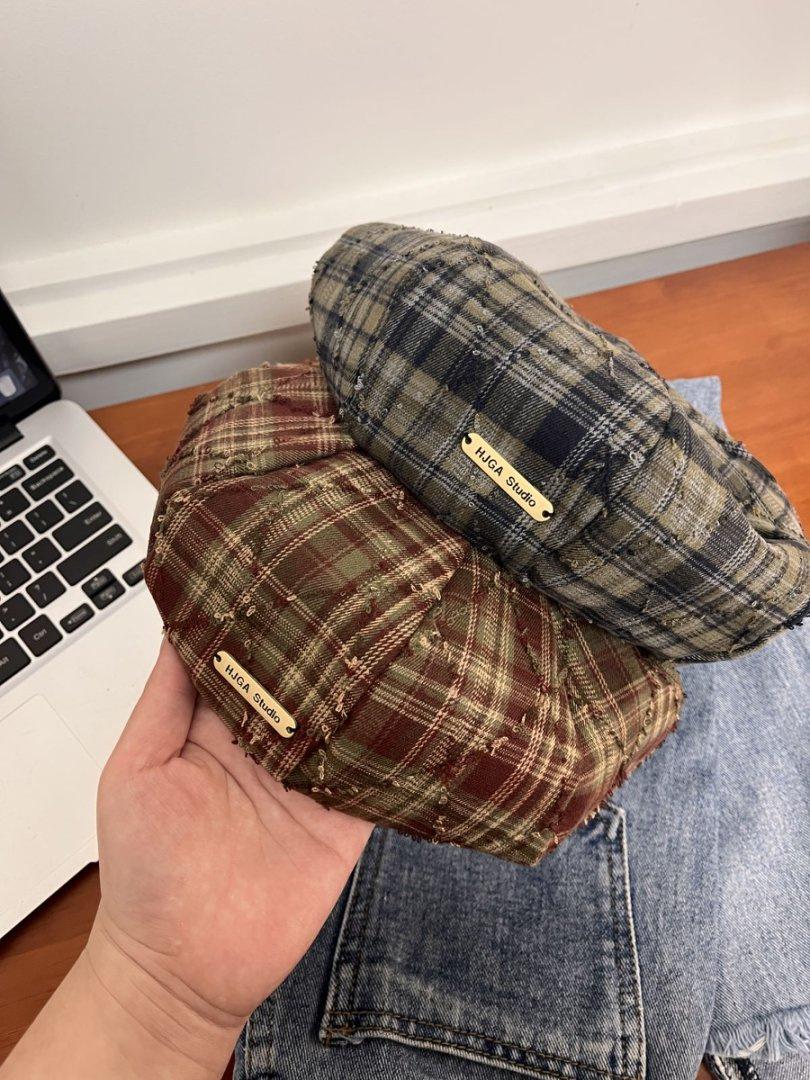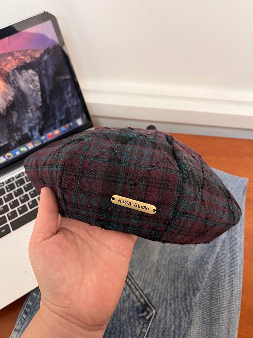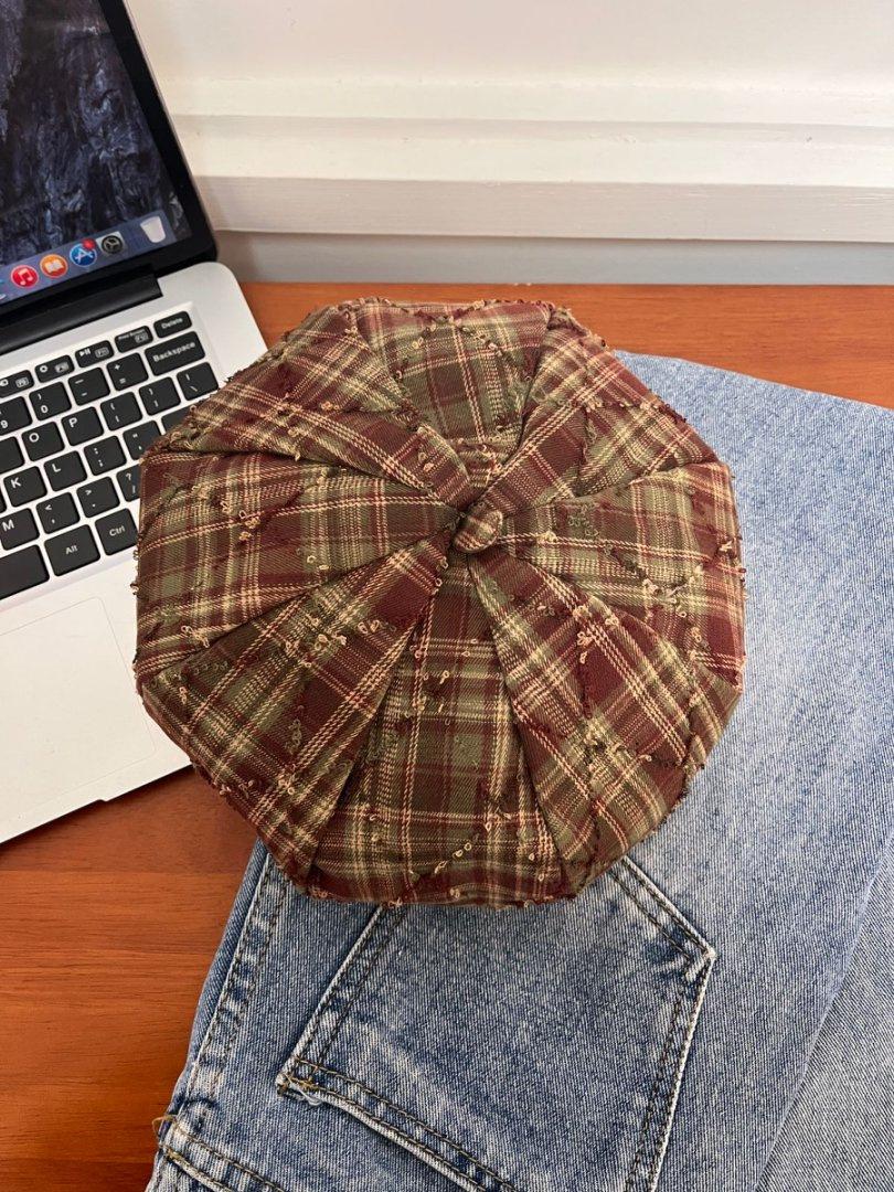 Dyj plaid beret-red plaid, Dyj plaid beret-purple plaid, Dyj plaid beret-blue grid