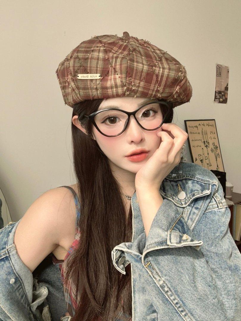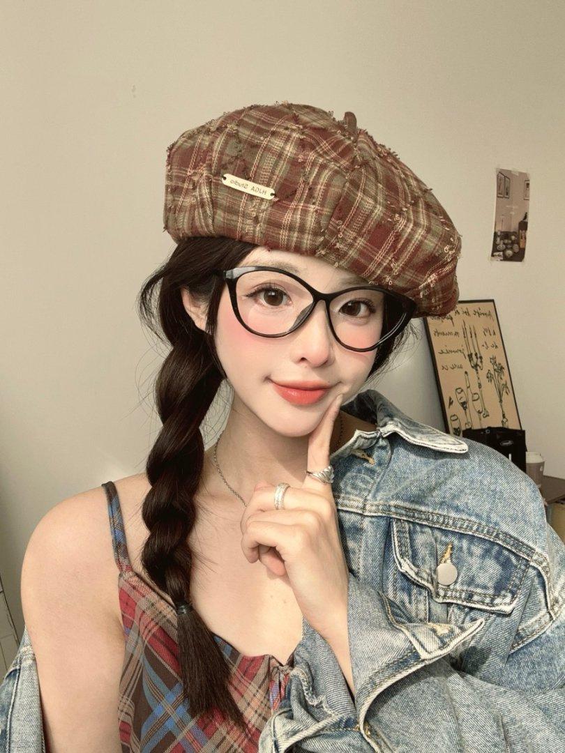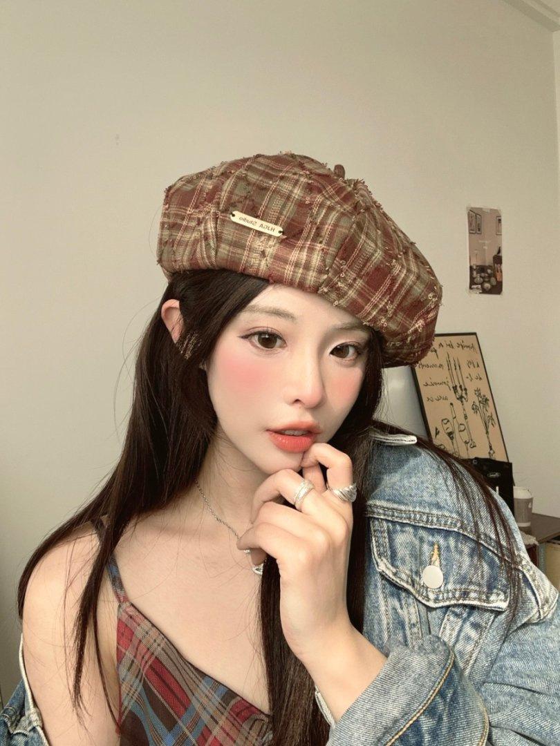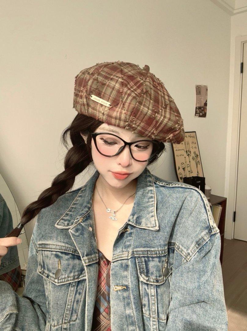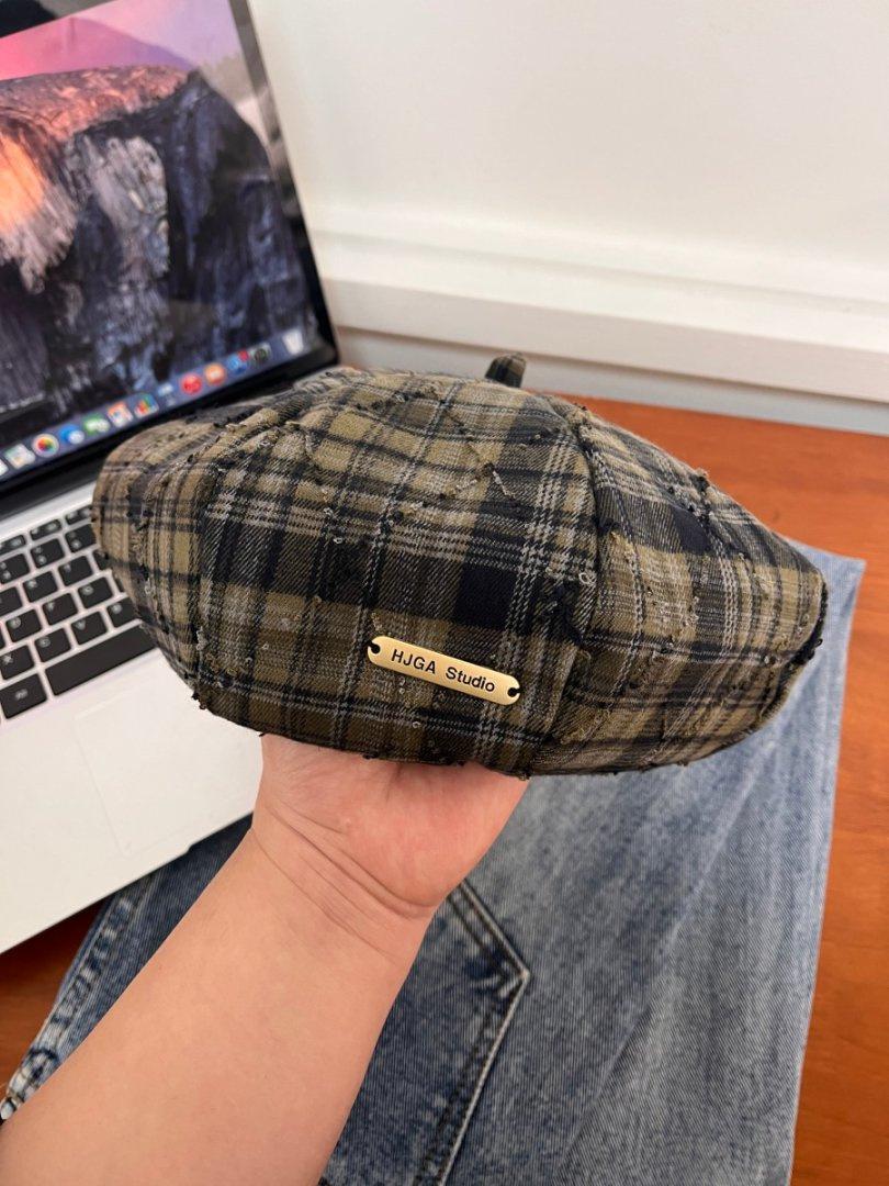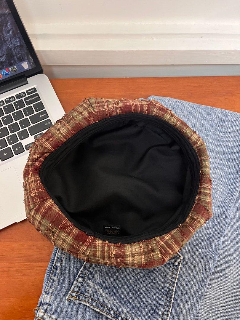 Dyj plaid beret-red plaid, Dyj plaid beret-purple plaid, Dyj plaid beret-blue grid
