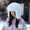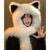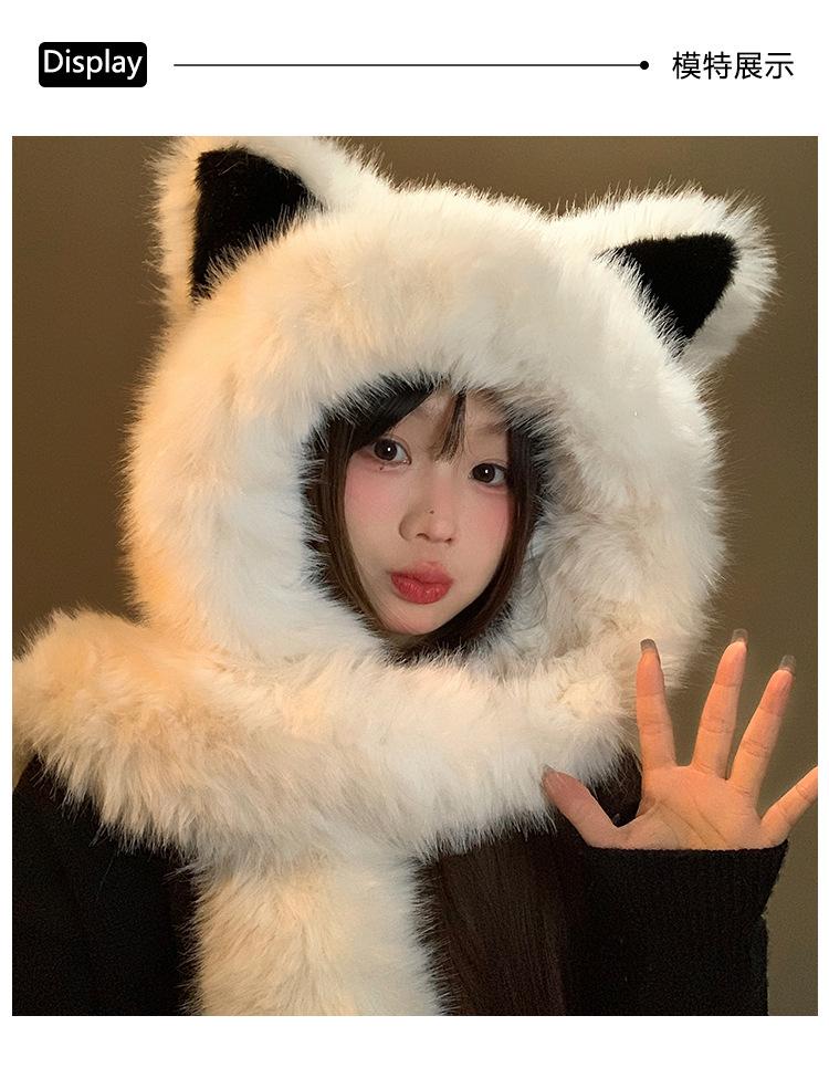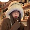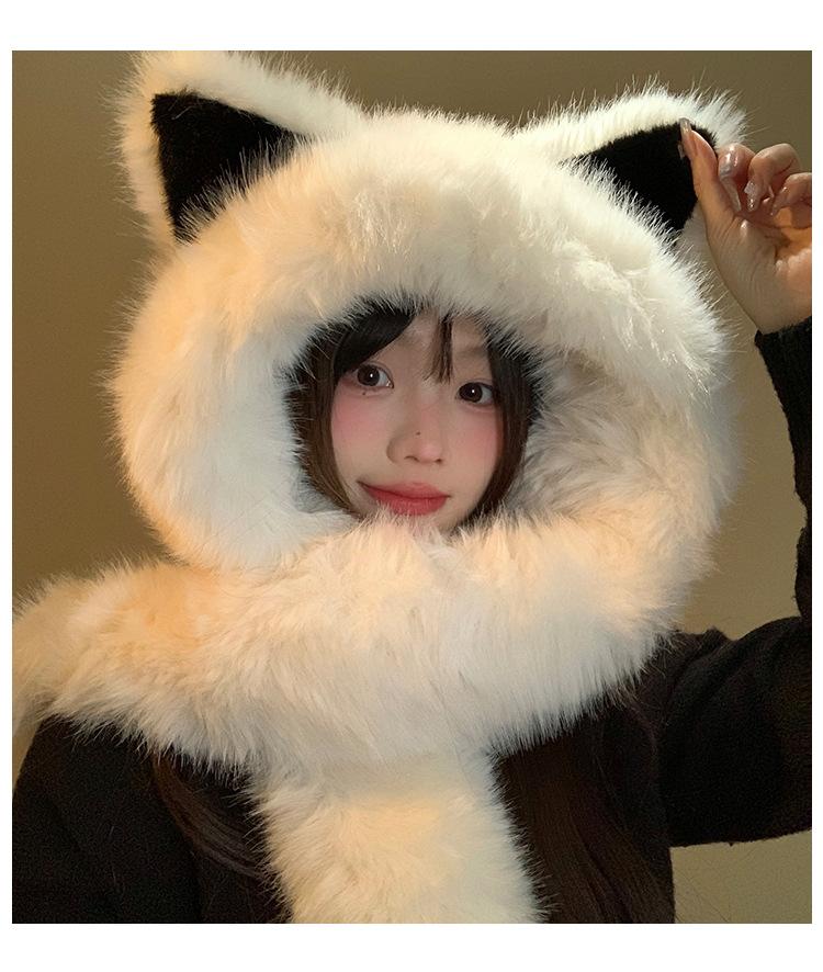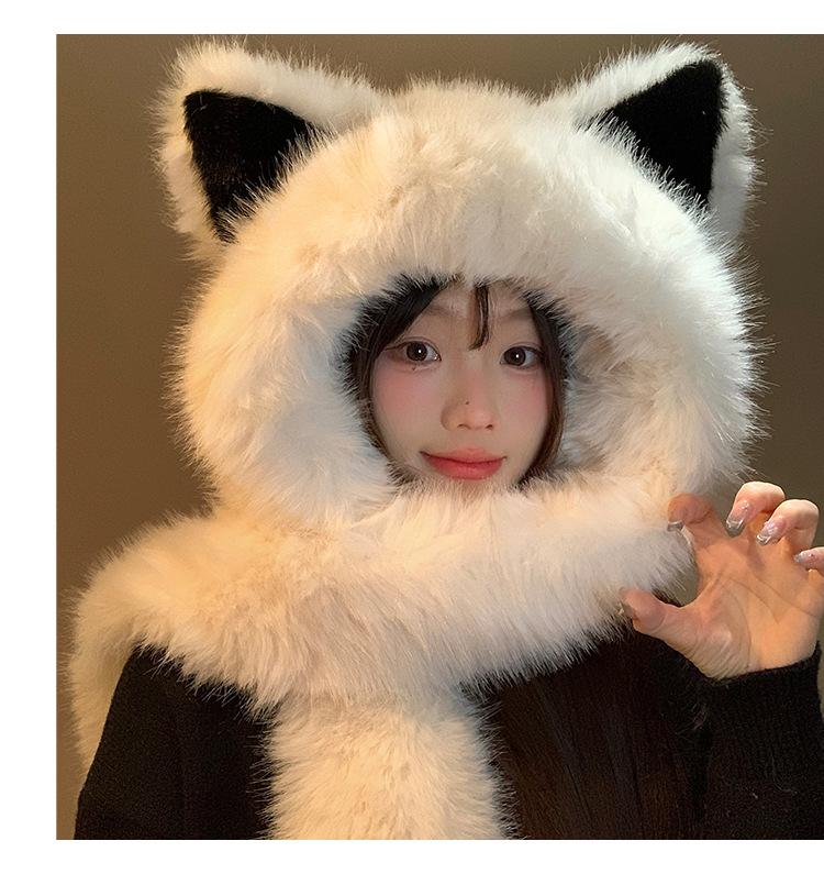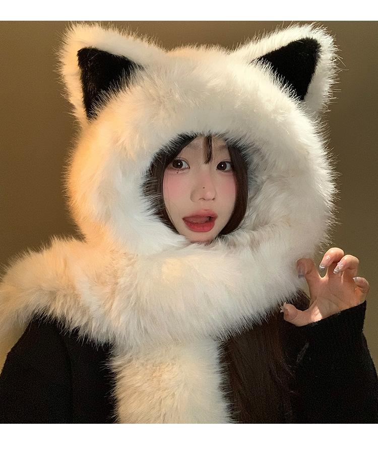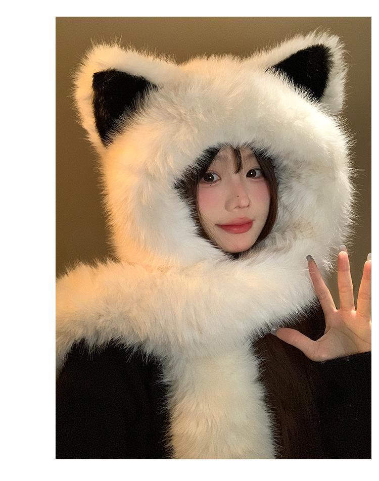 Gorro bufanda de felpa y grueso con orejas de zorro para mujer 2024 otoño e invierno cálido y que realza el rostro sombrero Lei Feng