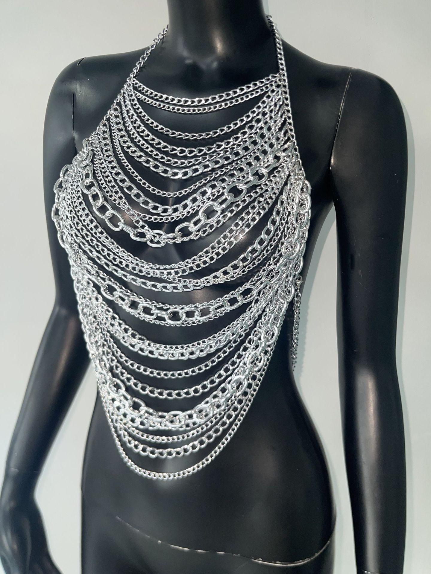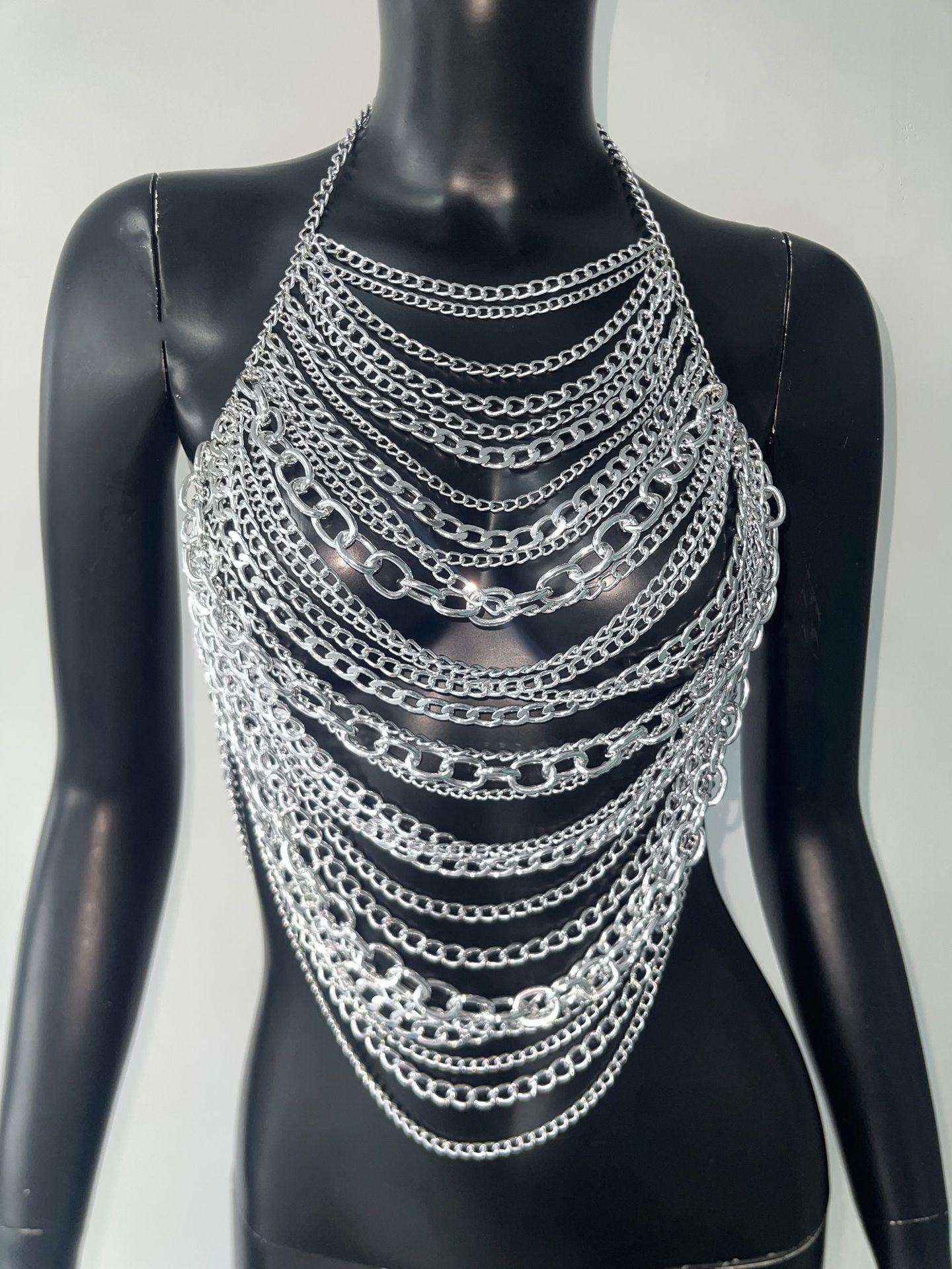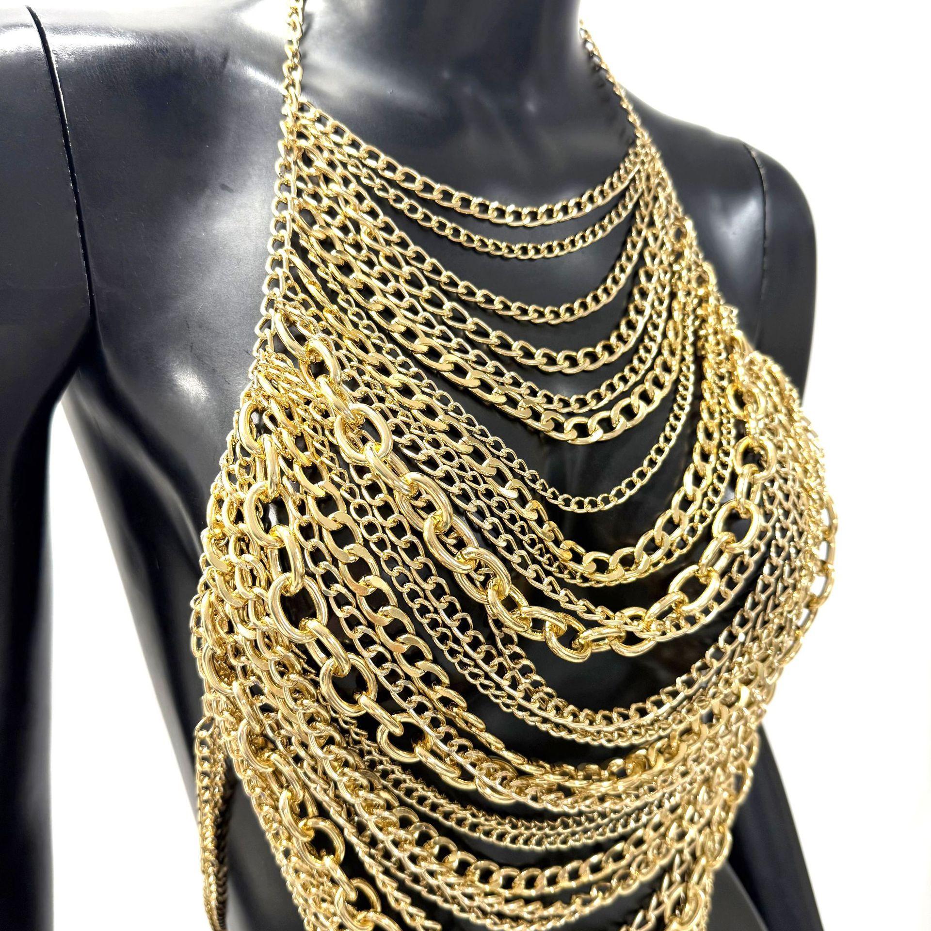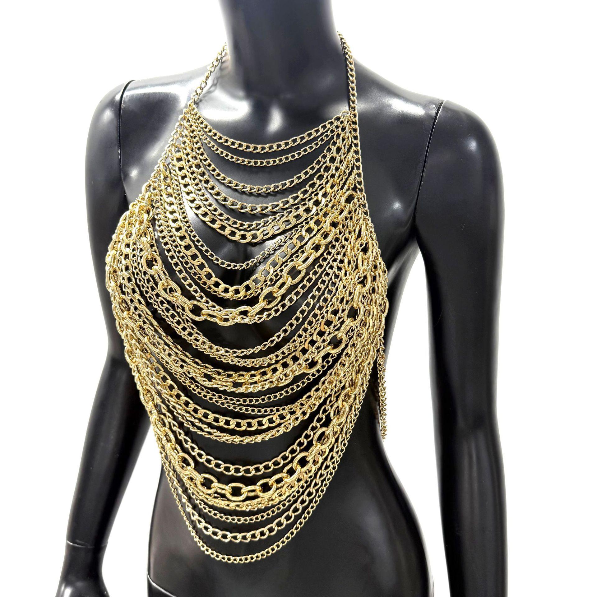 Cadena Hueca Sexy Caliente Europea y Americana para Colgar al Cuello Cadena de Pecho Trendy Personalizada Cadena Corporal Cadena de Metal de Aluminio Cadena de Pecho Multicapa para Mujer