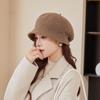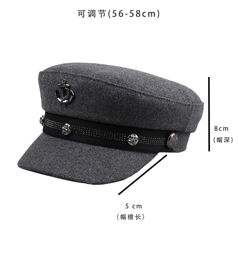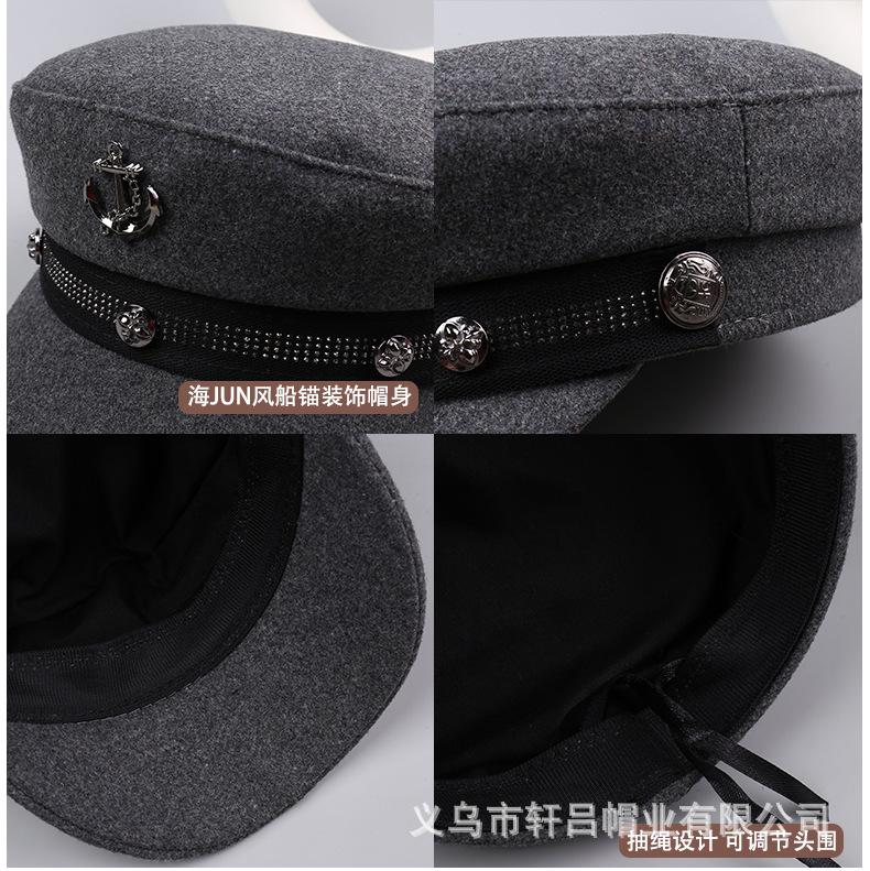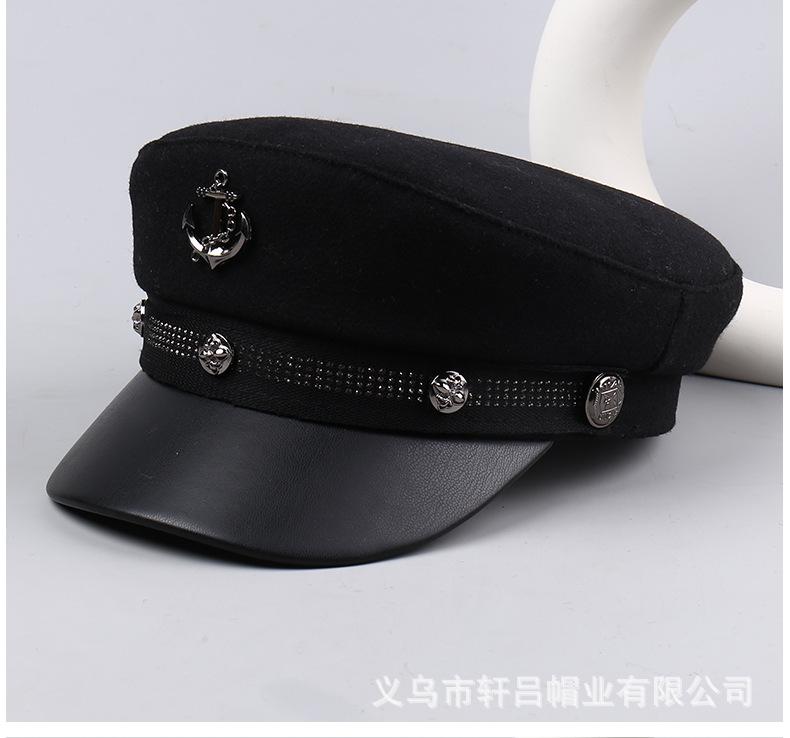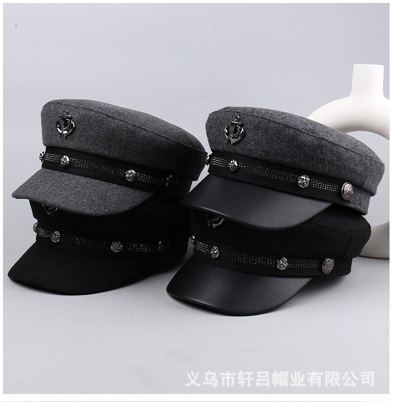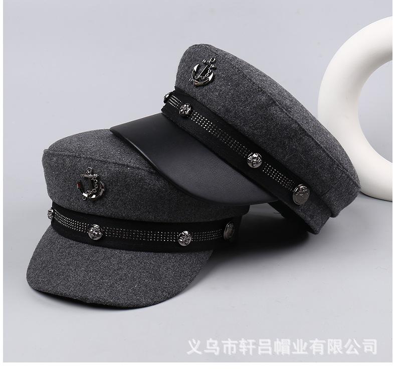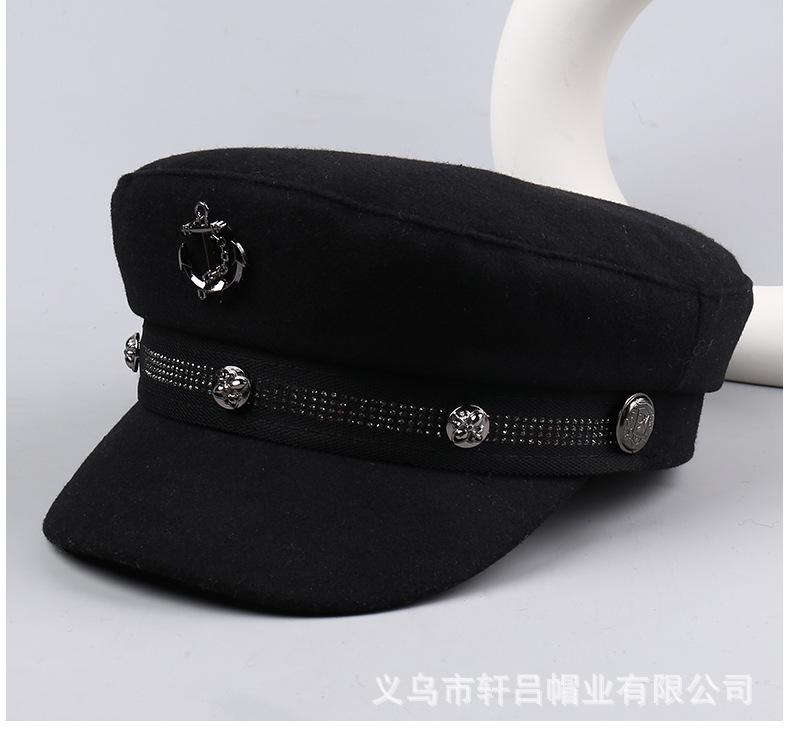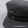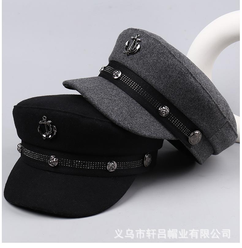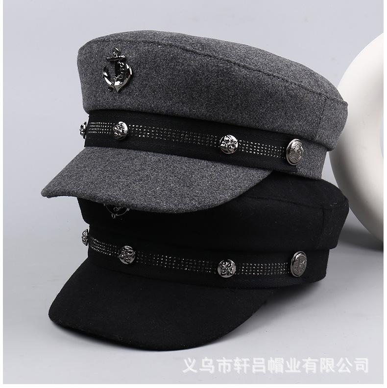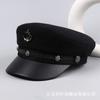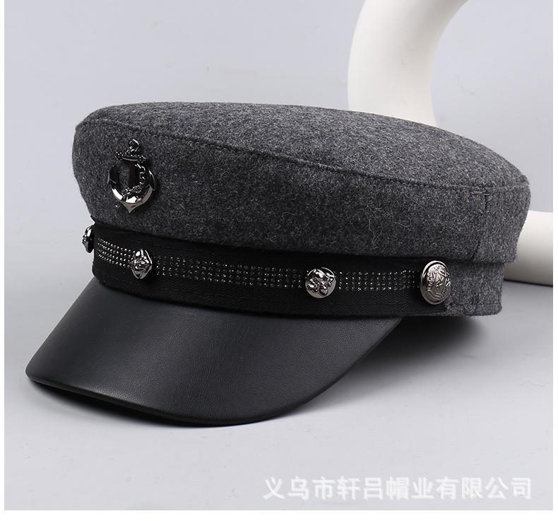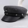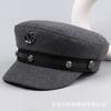 Otoño e Invierno Lana Cálido Moda Remache Gorra Plana para Mujer Estilo Coreano Combinable Moda Boina Lengua de Pato Sombrero Estilo Marinero