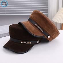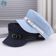 Moda Transfronteriza Europea y Americana Decoración de Cinturón con Etiqueta Metálica Sombrero de Copa Plana Literario Retro Personalidad Ligero Versátil Gorra de Visera