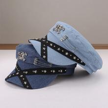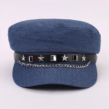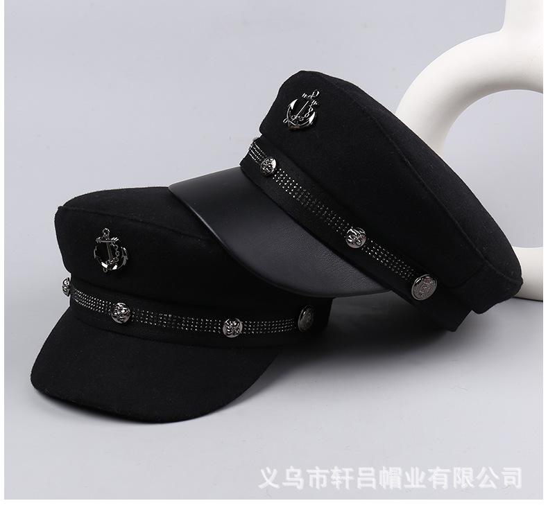 Otoño Nuevo Japonés Retro Cadena Decoración de Remaches Sombrero de Marinero de Copa Plana para Mujer Personalidad Nicho Chica Picante Sombrero de Visera de Pato