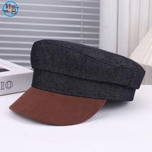 Moda estilo coreano sombrero octogonal de diamantes de imitación para mujer otoño e invierno temperamento versátil copa plana sombrero de marinero ala curva muestra cara pequeña gorra de visera