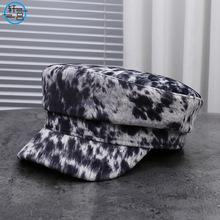 Nueva Moda Otoño Invierno Temperamento Decoración Tie-Dye Versátil Sombrero para el Sol Vacaciones al Aire Libre Cortavientos Cálido Sombrero de Copa Plana