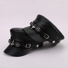 Kujo Jotaro cos estilo punk sombrero de copa plano hombres y mujeres personalidad cuero remache largo estampado leopardo plateado gorra de béisbol
