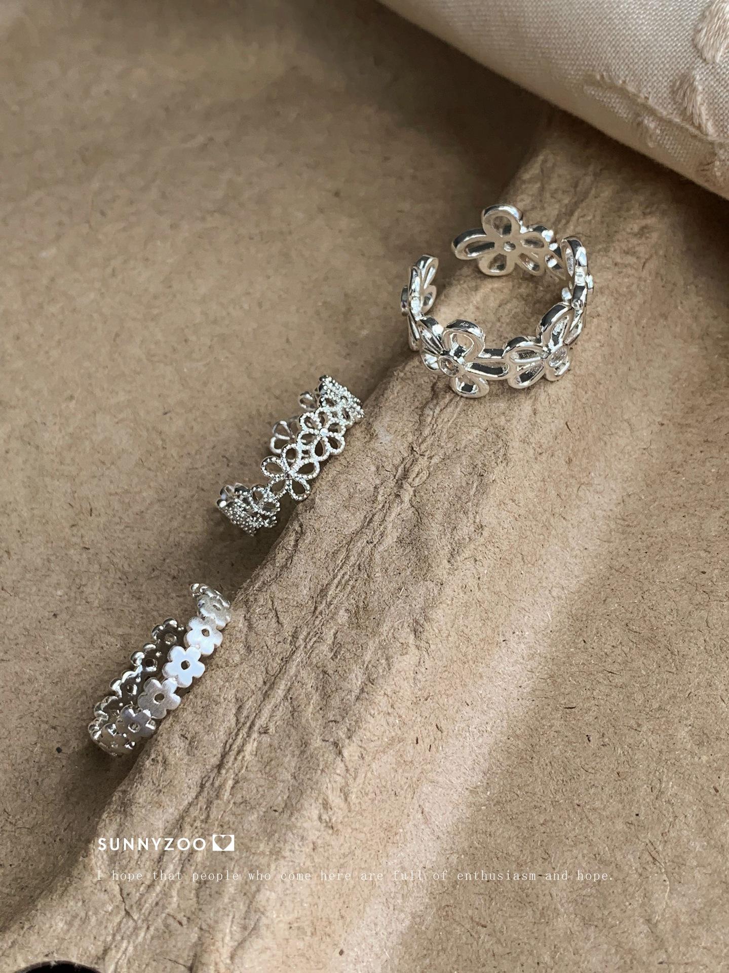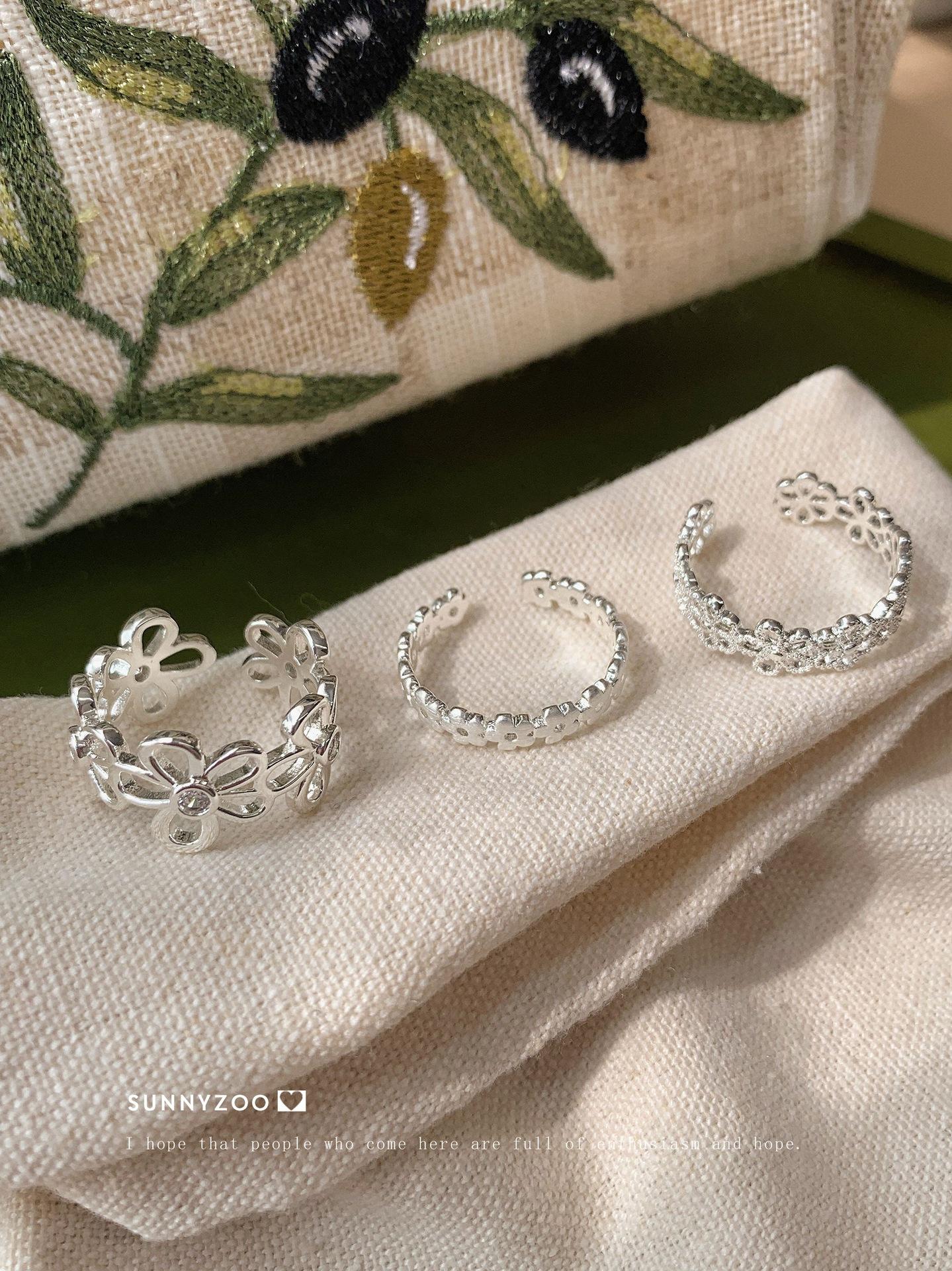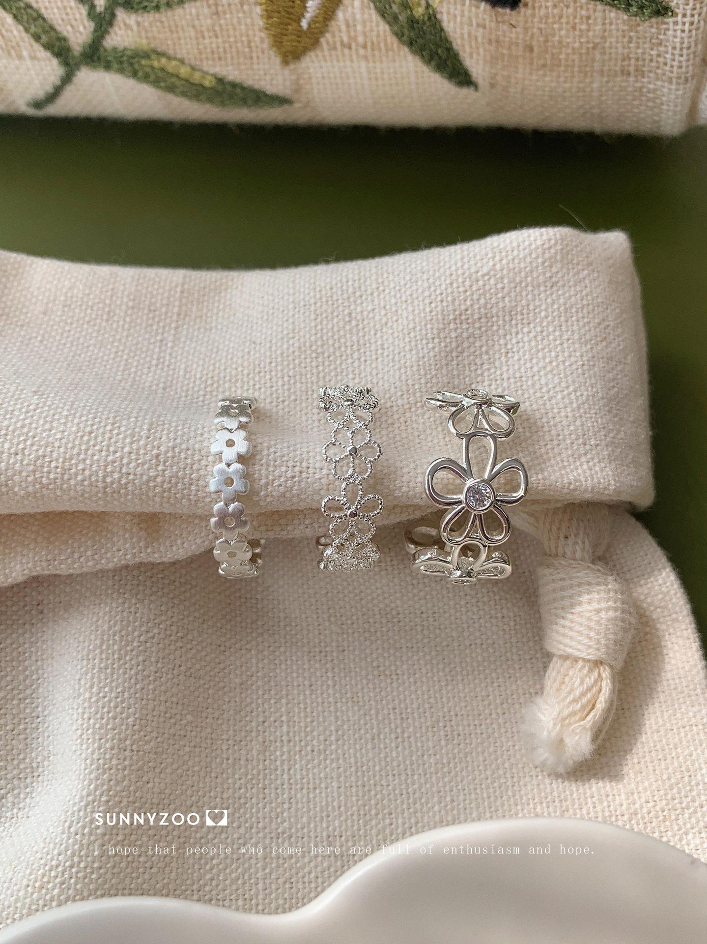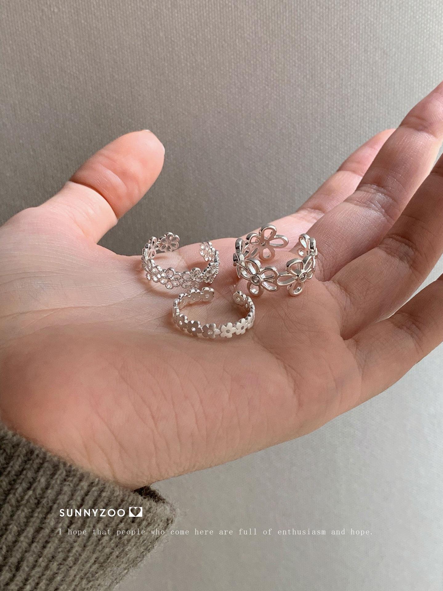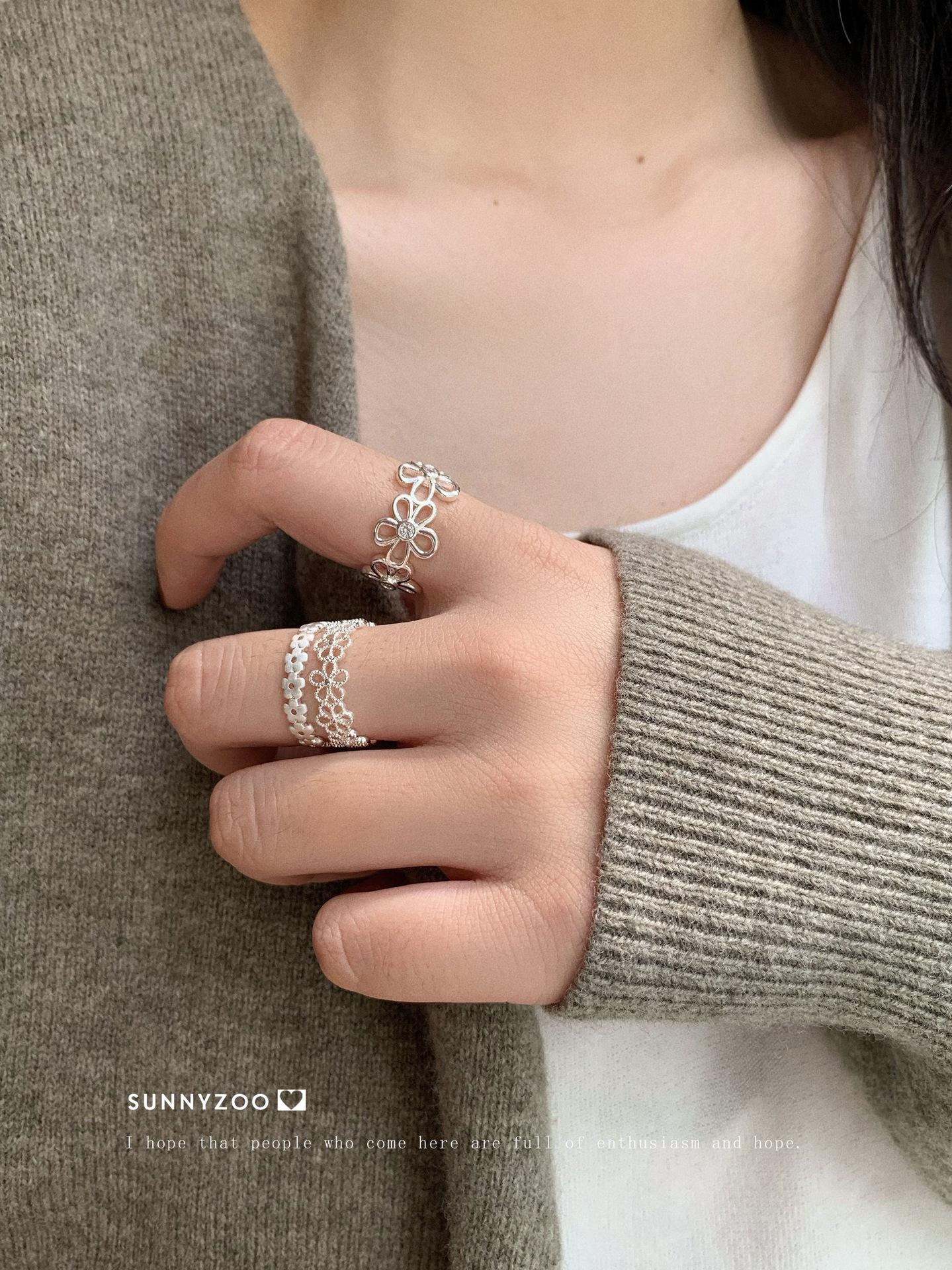 Anillo de flor cepillada hueca para mujer, simple, elegante, de moda, anillo de dedo abierto chapado en plata S925, anillo de dedo de nicho