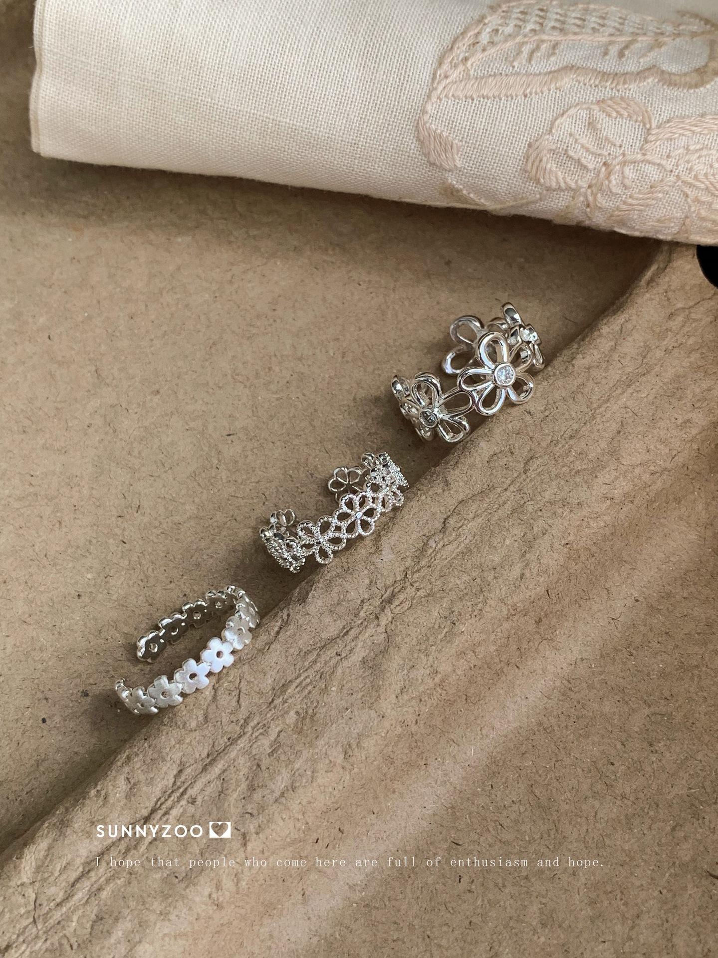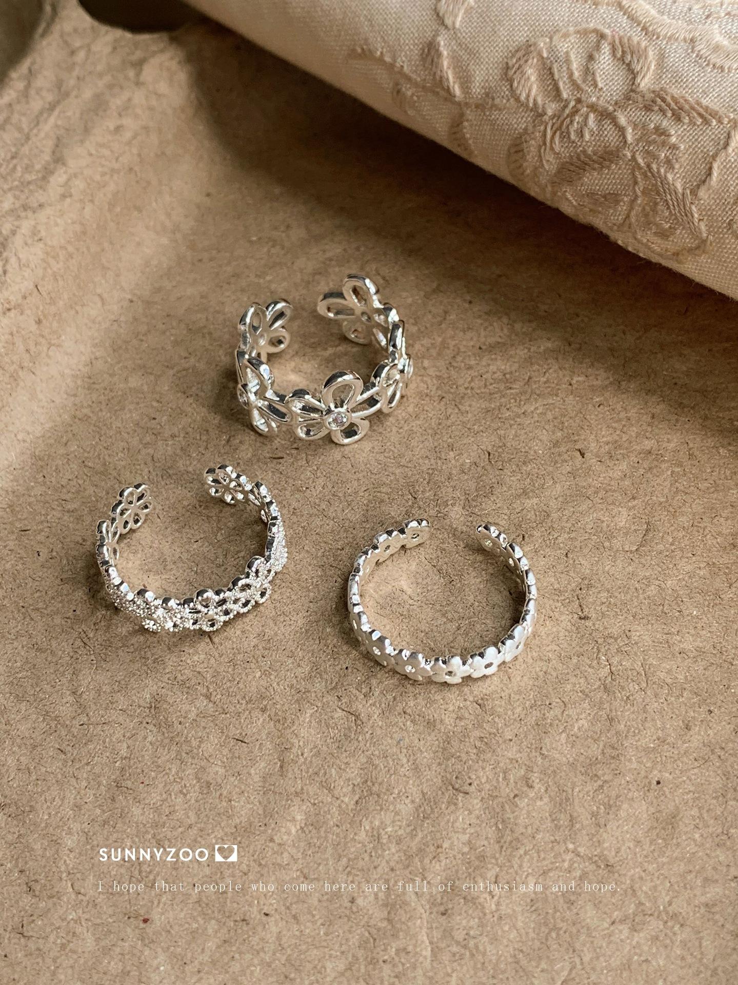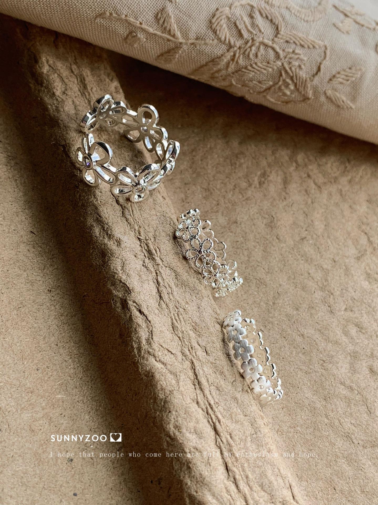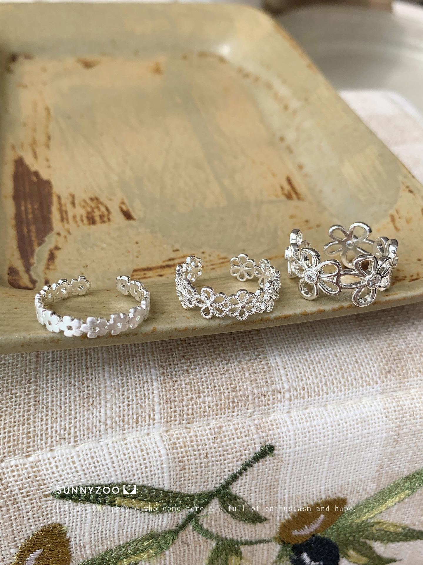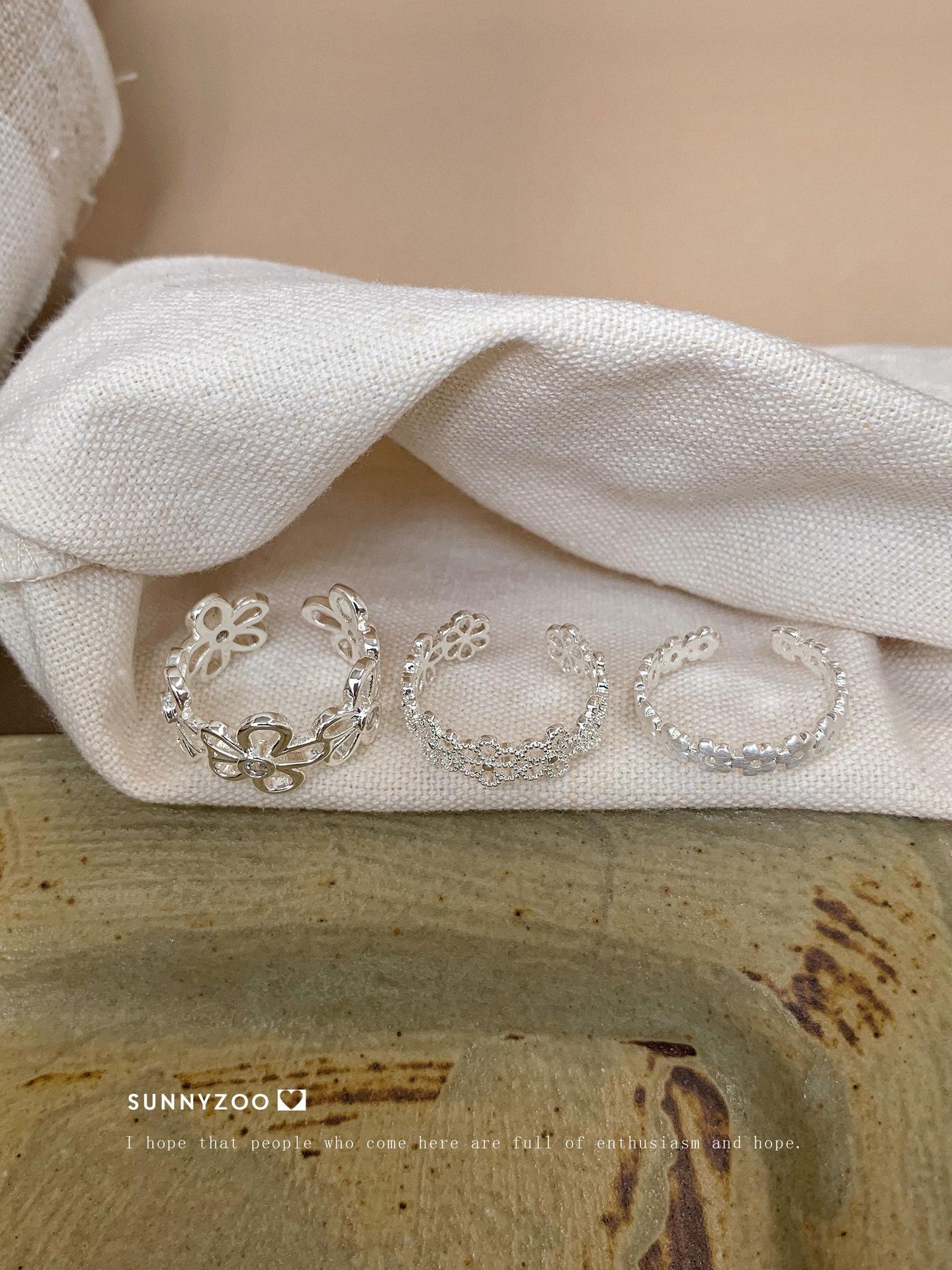 Anillo de flor cepillada hueca para mujer, simple, elegante, de moda, anillo de dedo abierto chapado en plata S925, anillo de dedo de nicho