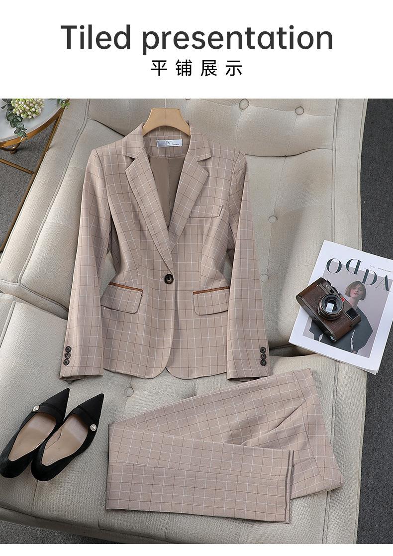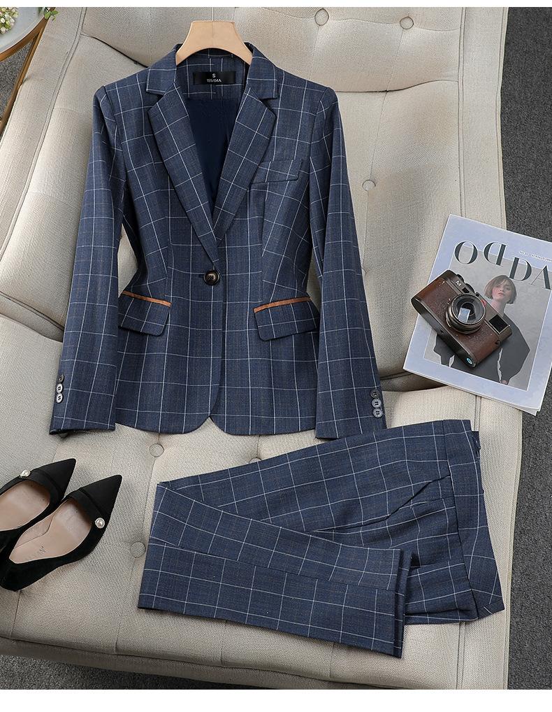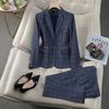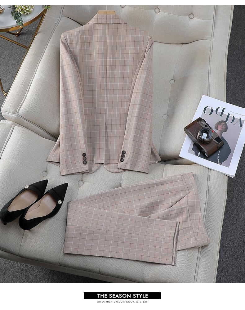 Traje a cuadros para mujer, primavera y otoño, ropa profesional, temperamento, diosa, fan, chaqueta de traje de alta gama, conjunto de dos piezas para mujer