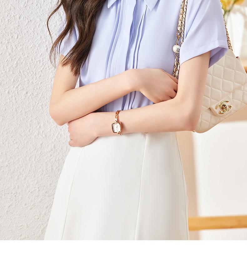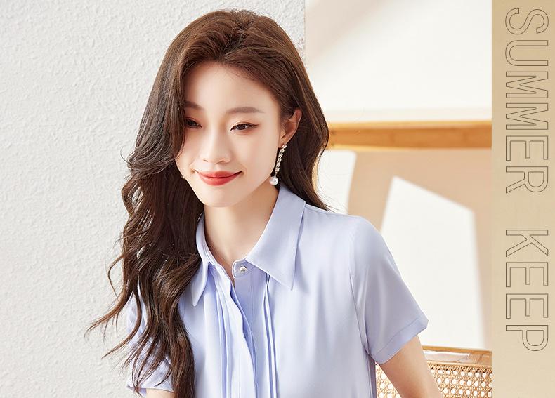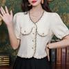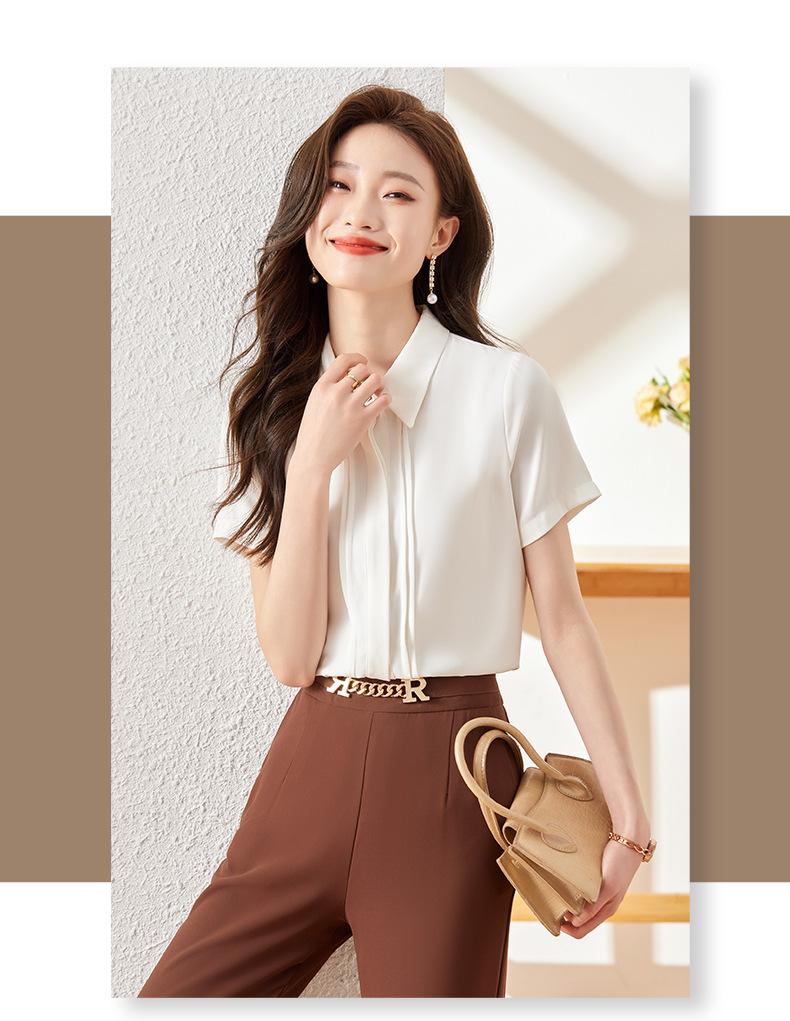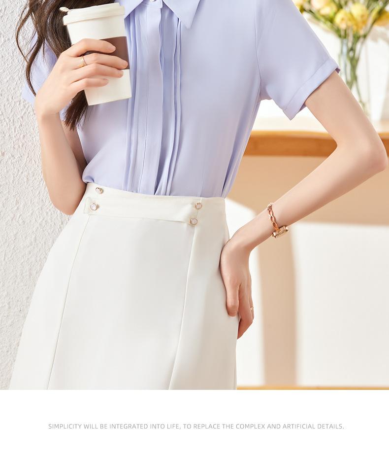 Camisa de manga corta para mujer, verano 2024, nueva, ligera, madura, francesa, elegante, diseño superior, camisa profesional de nicho