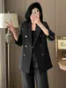 Saco de Traje para Mujer Primavera y Otoño Negro Pequeño Ropa Profesional Nicho Traje Traje Estilo Occidental Fan de Diosa Micropantalones