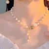 Collar de camelia de estilo coreano, cadena de cuello de perla de nicho de lujo ligero, collar de estilo fresco para mujer, cadena de clavícula con flores dulces para mujer