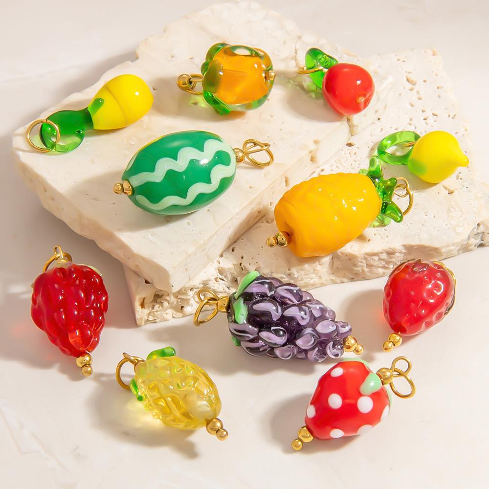 Colgante de collar de cristal de fruta, joyería artesanal transfronteriza, accesorios de bricolaje que no se decoloran, colgante de acero inoxidable en oro de 18 quilates, colgante individual