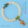 Pulsera de cabeza de mono natural para hombre, cuentas redondas de nogal, texto original de semillas, juego de cuentas ligeras, anillo único bodhi, pulsera de cuentas de juego de placa para mujer