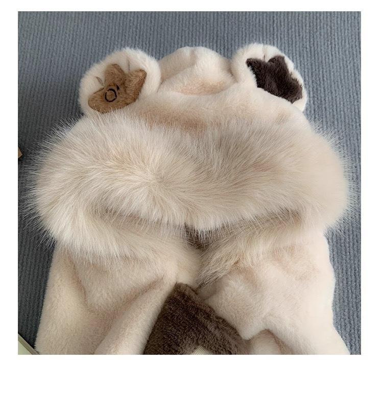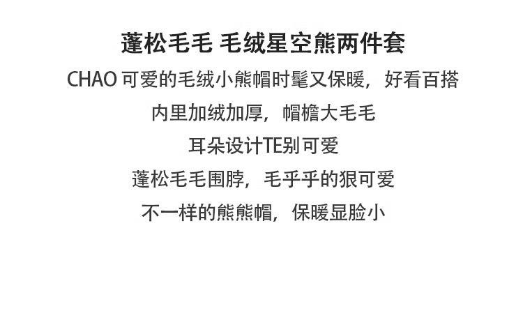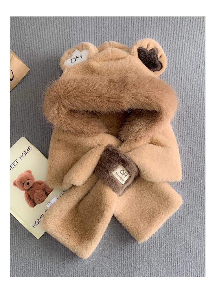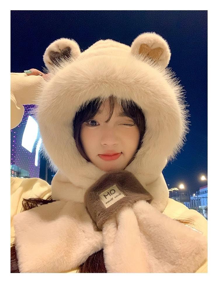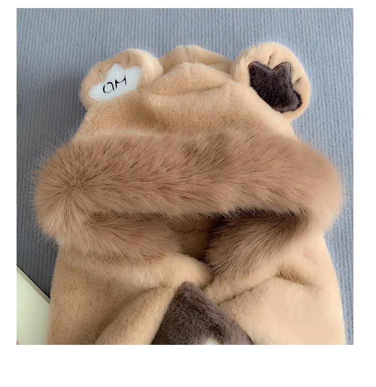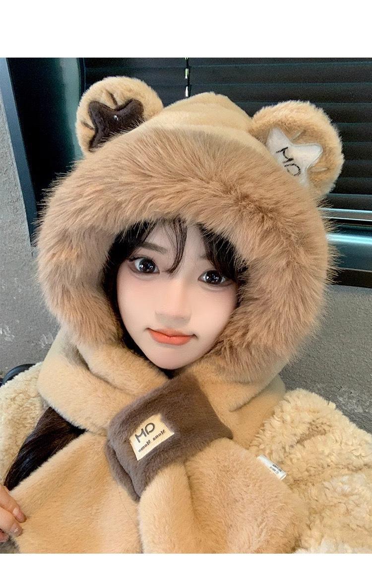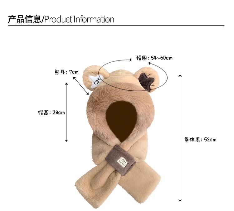 Lindo Gorro de Oso Bufanda Conjunto de Dos Piezas para Mujer Invierno Forrado de Polar Grueso Nuevo Cálido Esponjoso Gorro Bufanda con Capucha