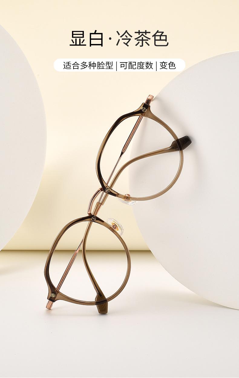 Montura de gafas Kasha 11923 al por mayor, montura de gafas color té frío para mujer, montura redonda con diseño de viento, cara lisa, montura pequeña de titanio ultraligera