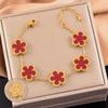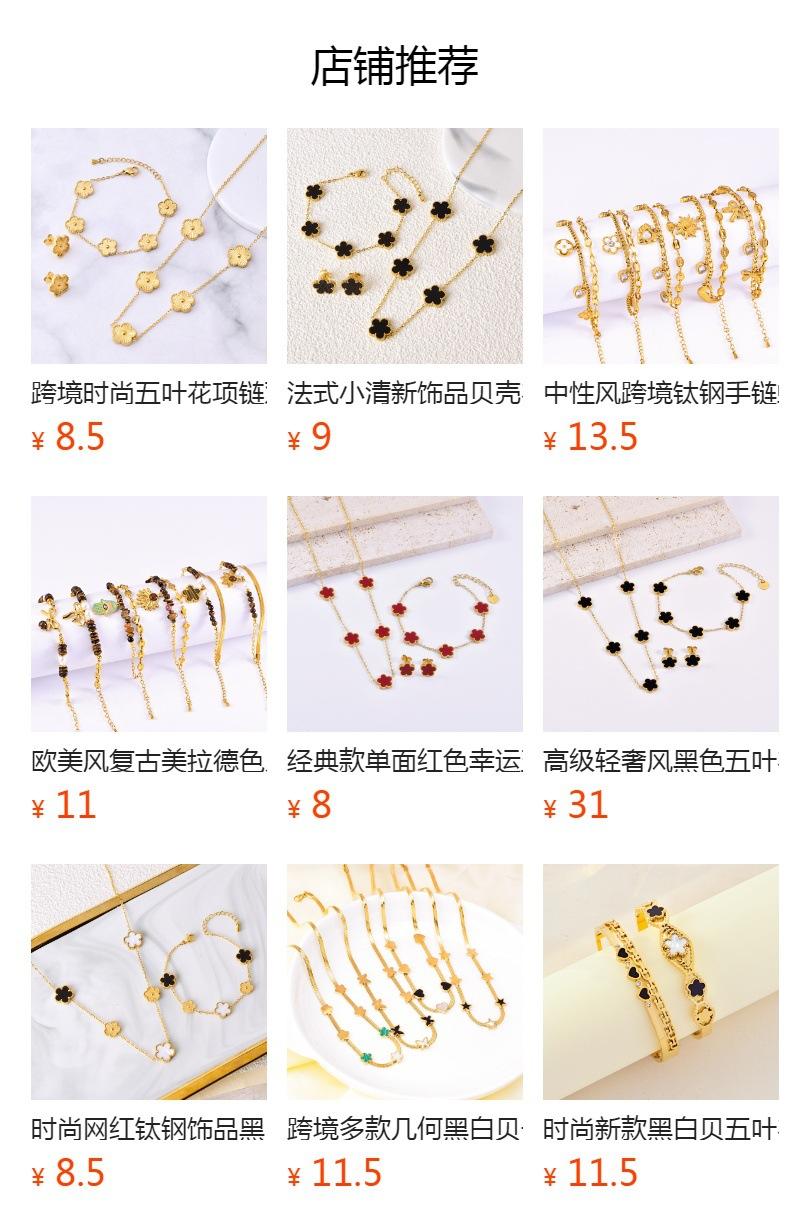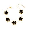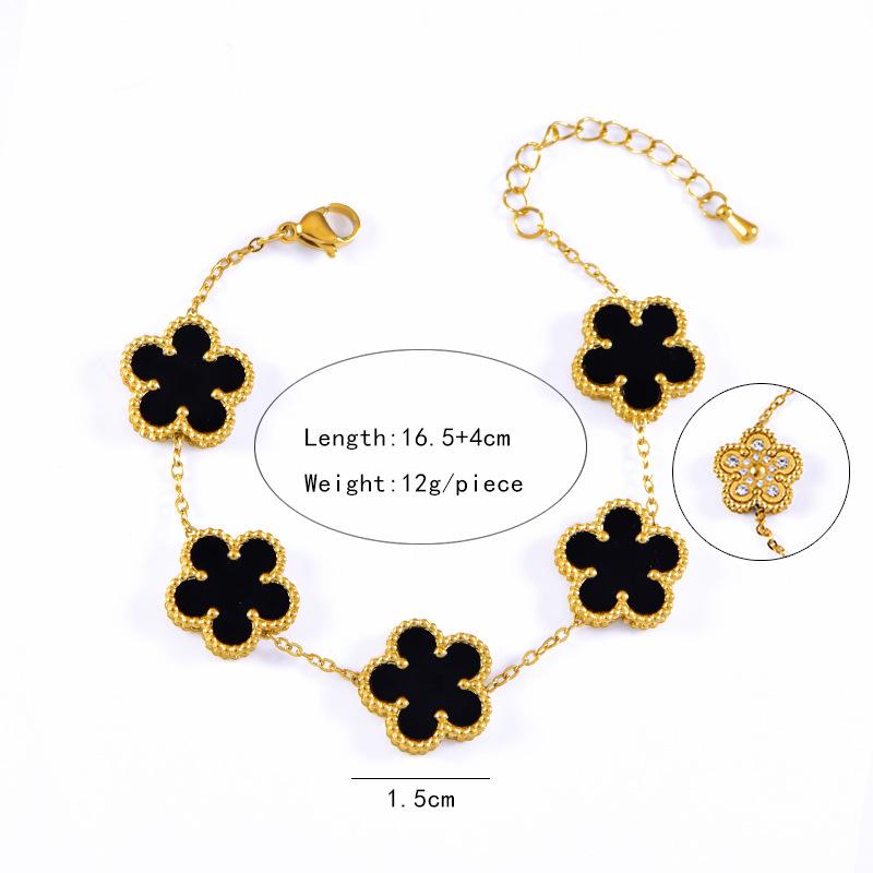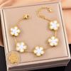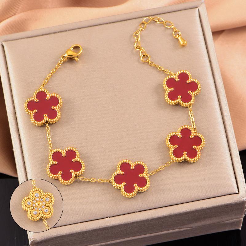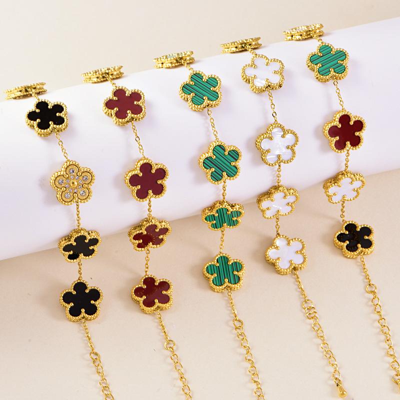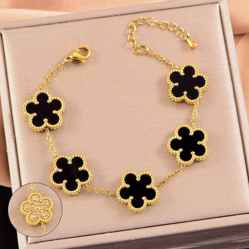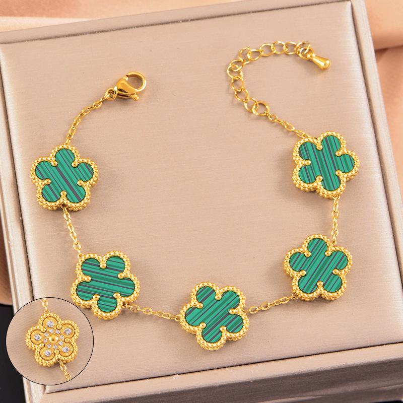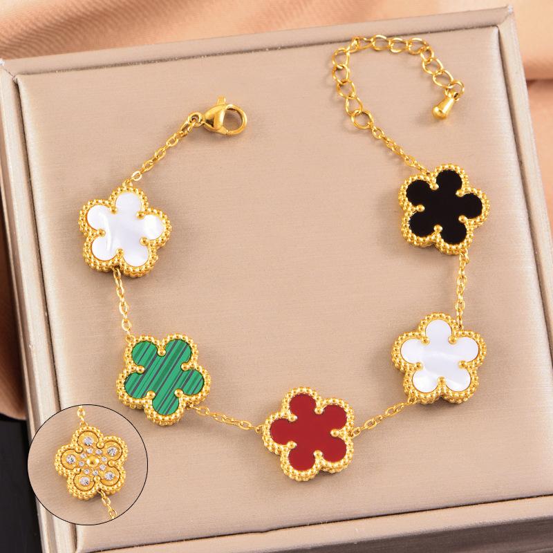 Pulsera de acero inoxidable de alta gama de lujo ligero a doble cara con cinco hojas de concha blanca, pulsera de moda con diamantes, joyería al por mayor