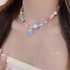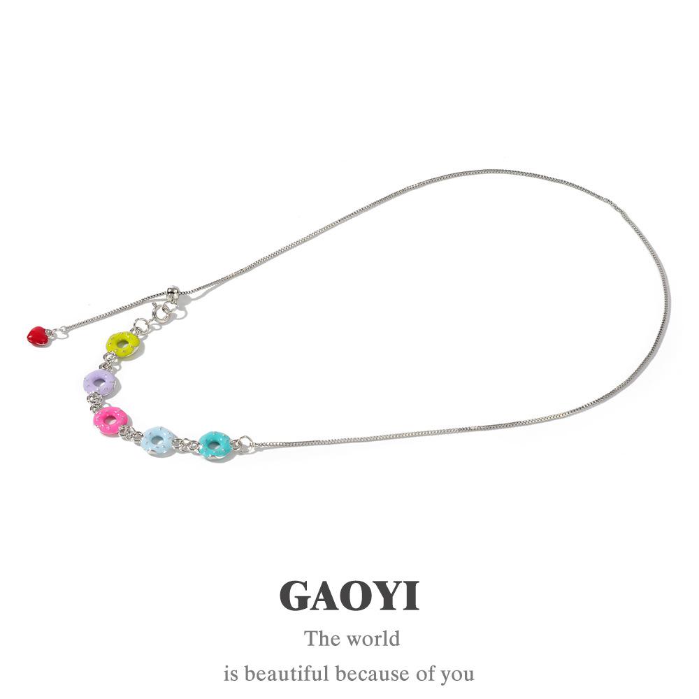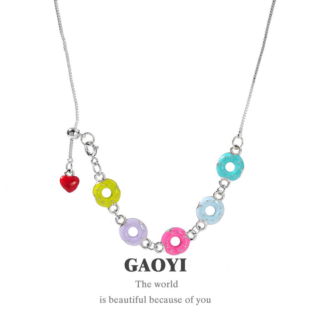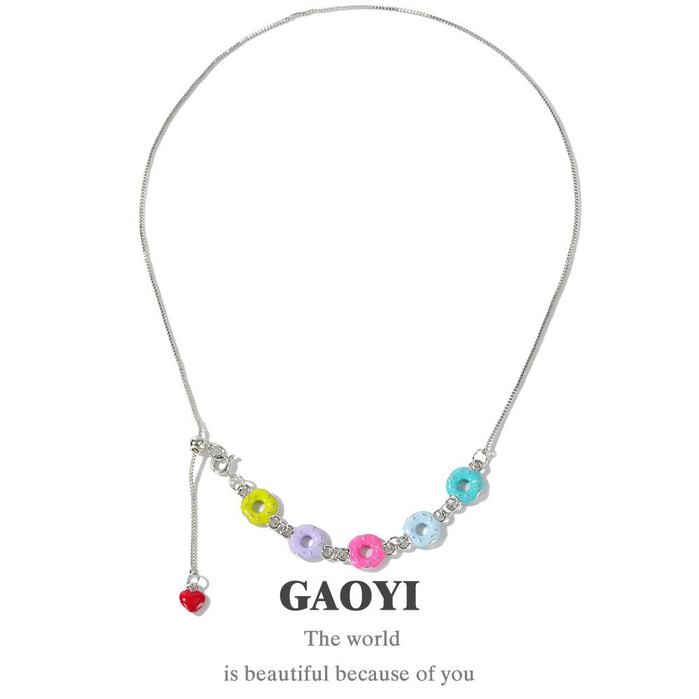 Collar con colgante de dona colorida personalizada estilo dulce para mujer, diseño nicho de verano, dulce, cool, chica hot, cadena para clavícula