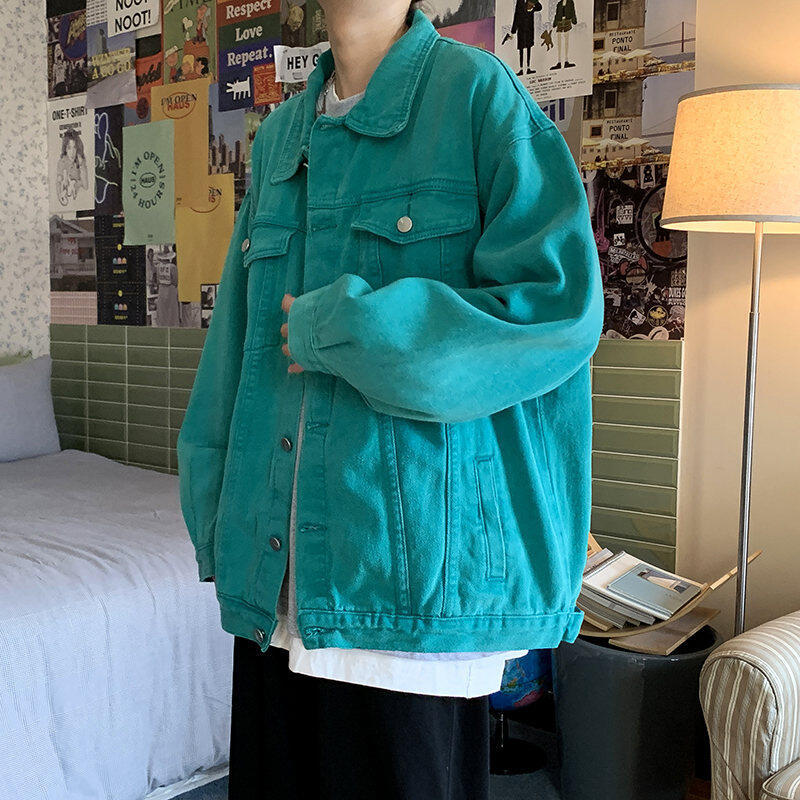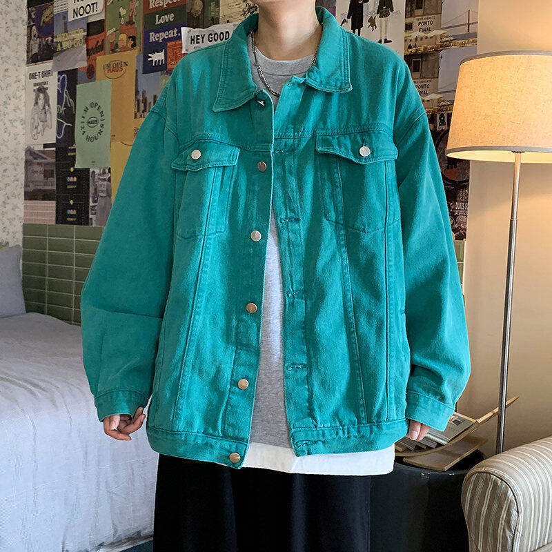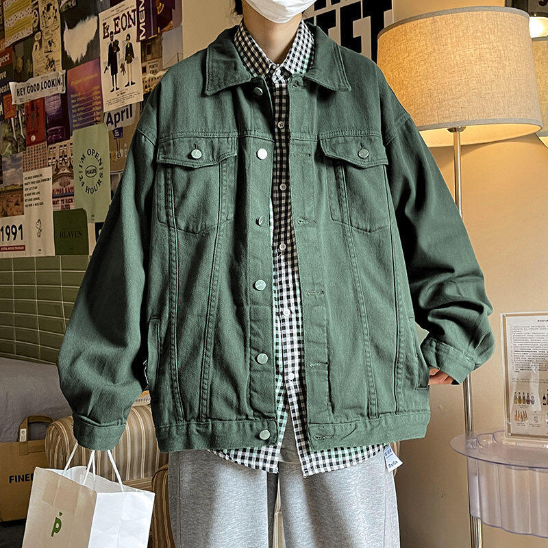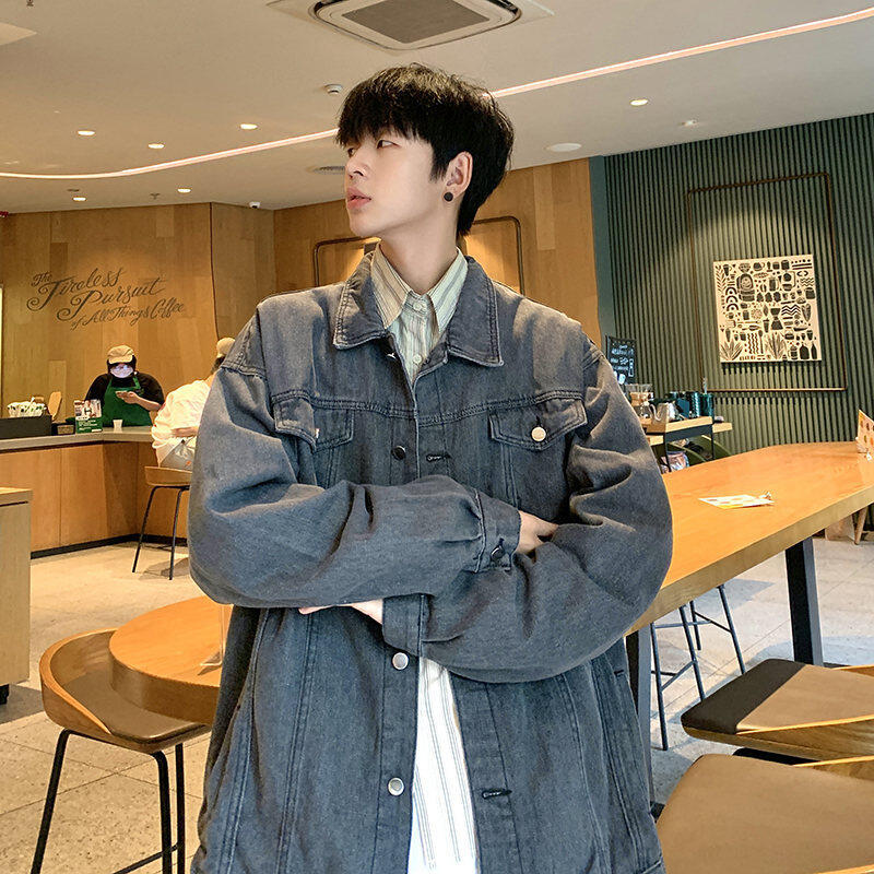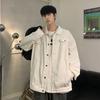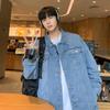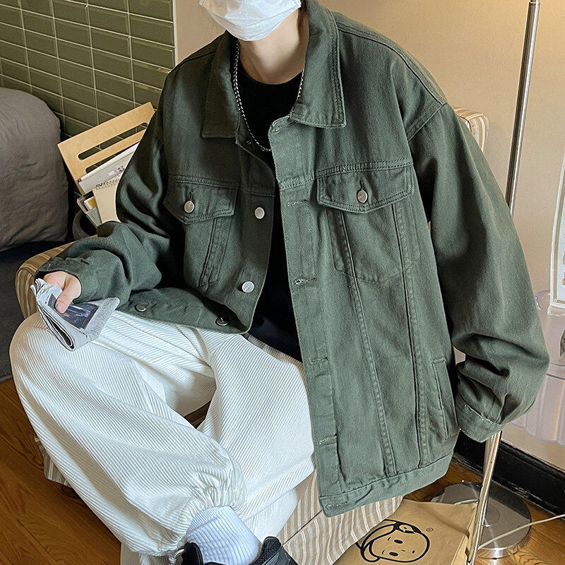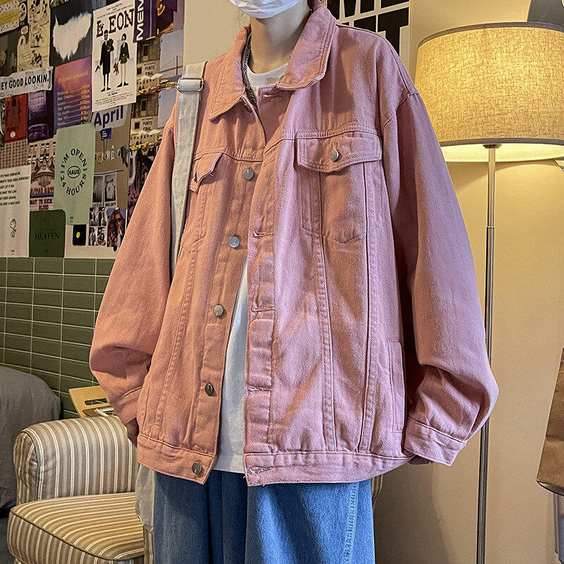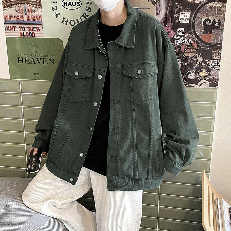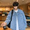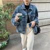 Chaqueta de Mezclilla Nueva de Primavera y Otoño Estilo Hong Kong Unisex Juvenil Color Puro Simple Solapa Sencilla Chaqueta Holgada Top
