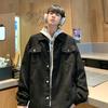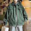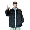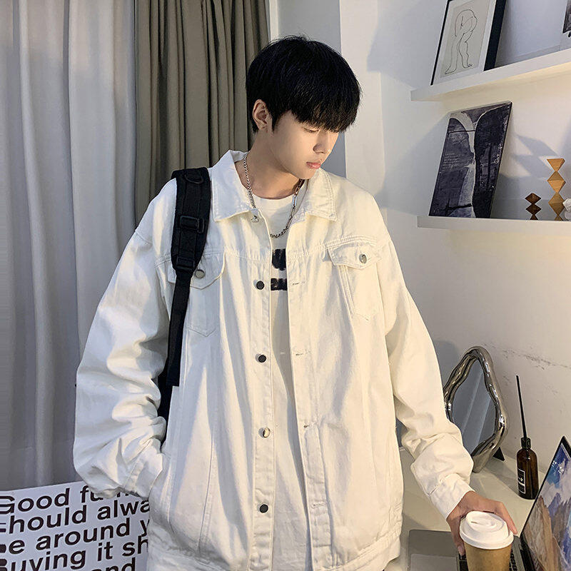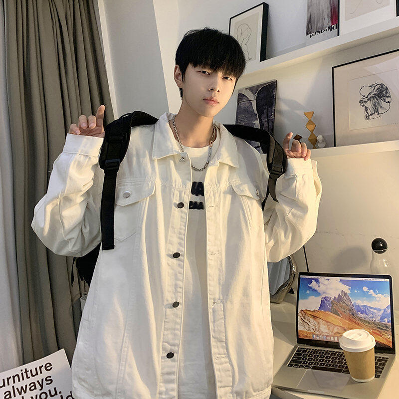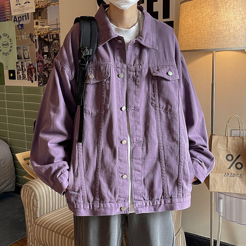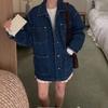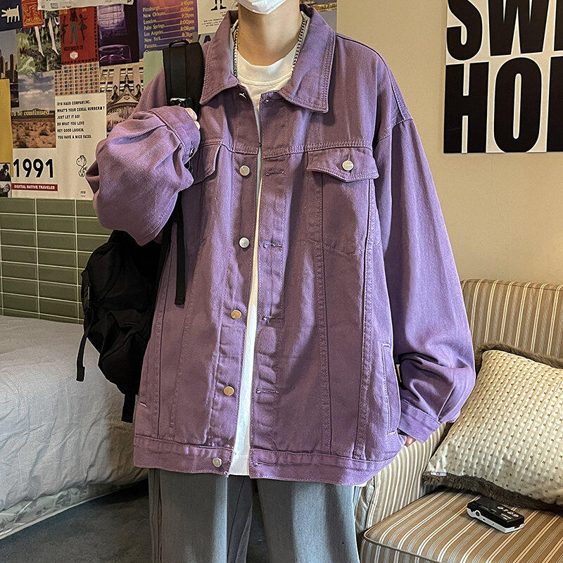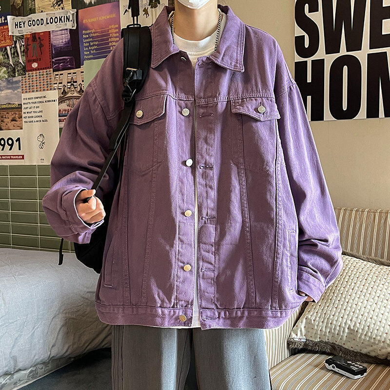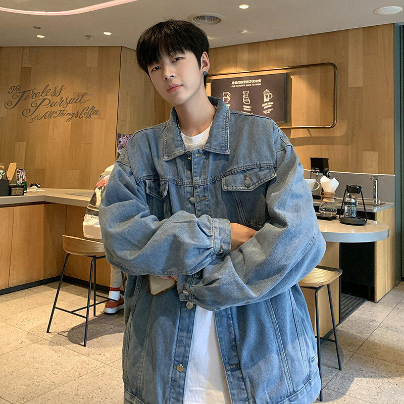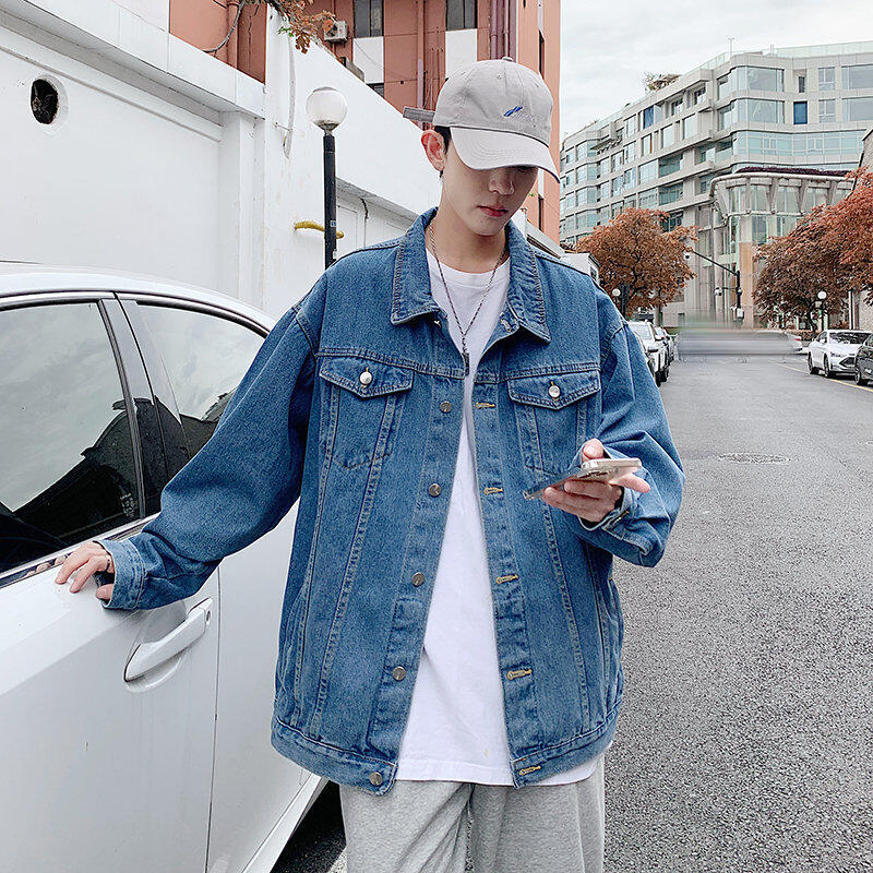 Chaqueta de Mezclilla Nueva de Primavera y Otoño Estilo Hong Kong Unisex Juvenil Color Puro Simple Solapa Sencilla Chaqueta Holgada Top