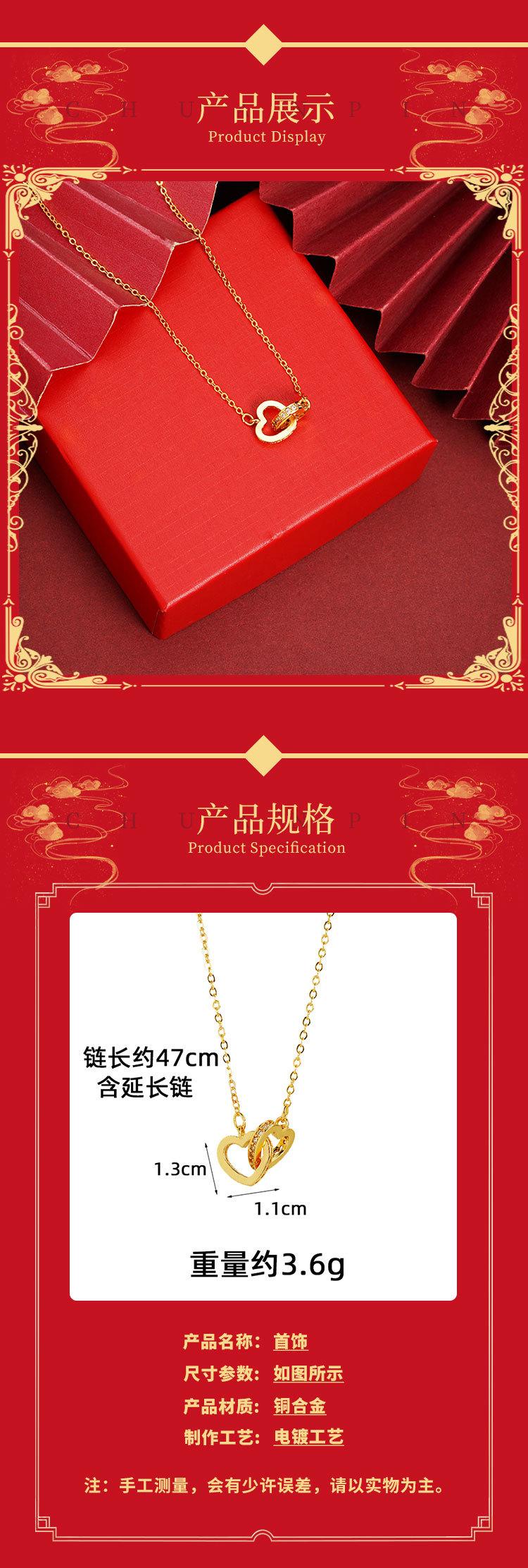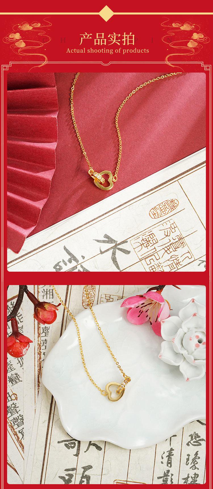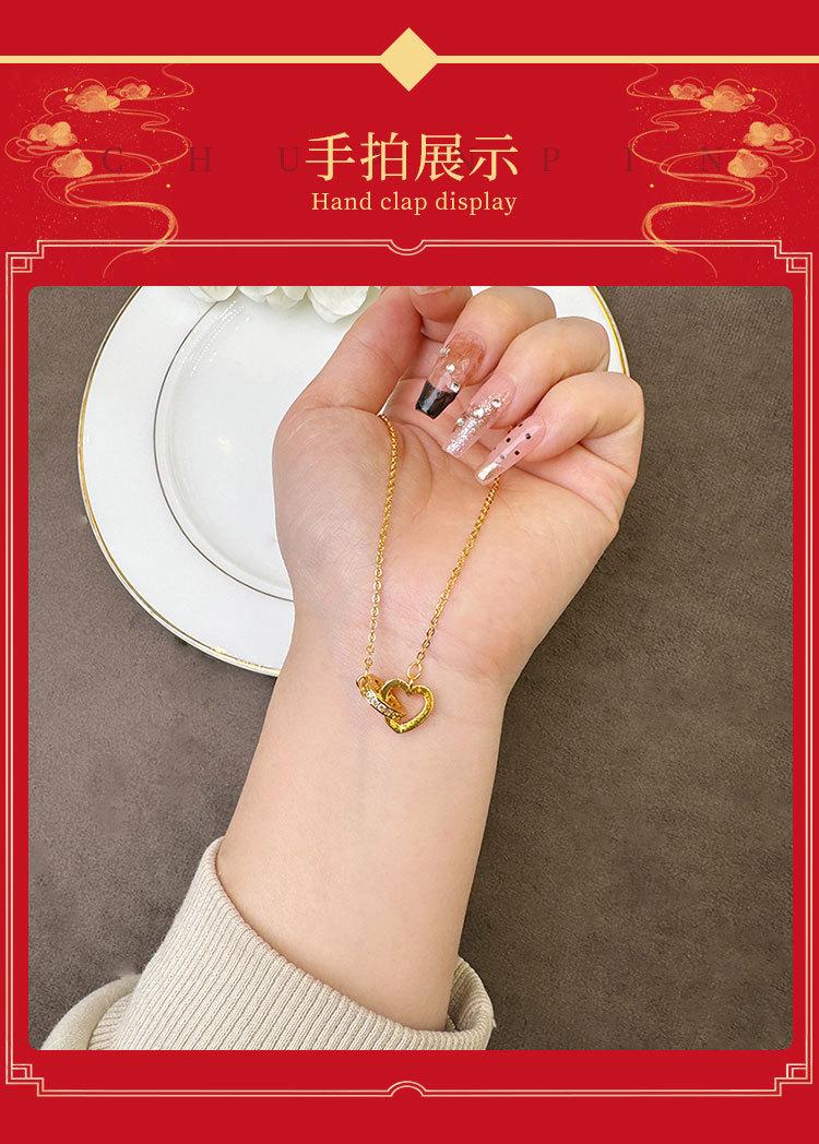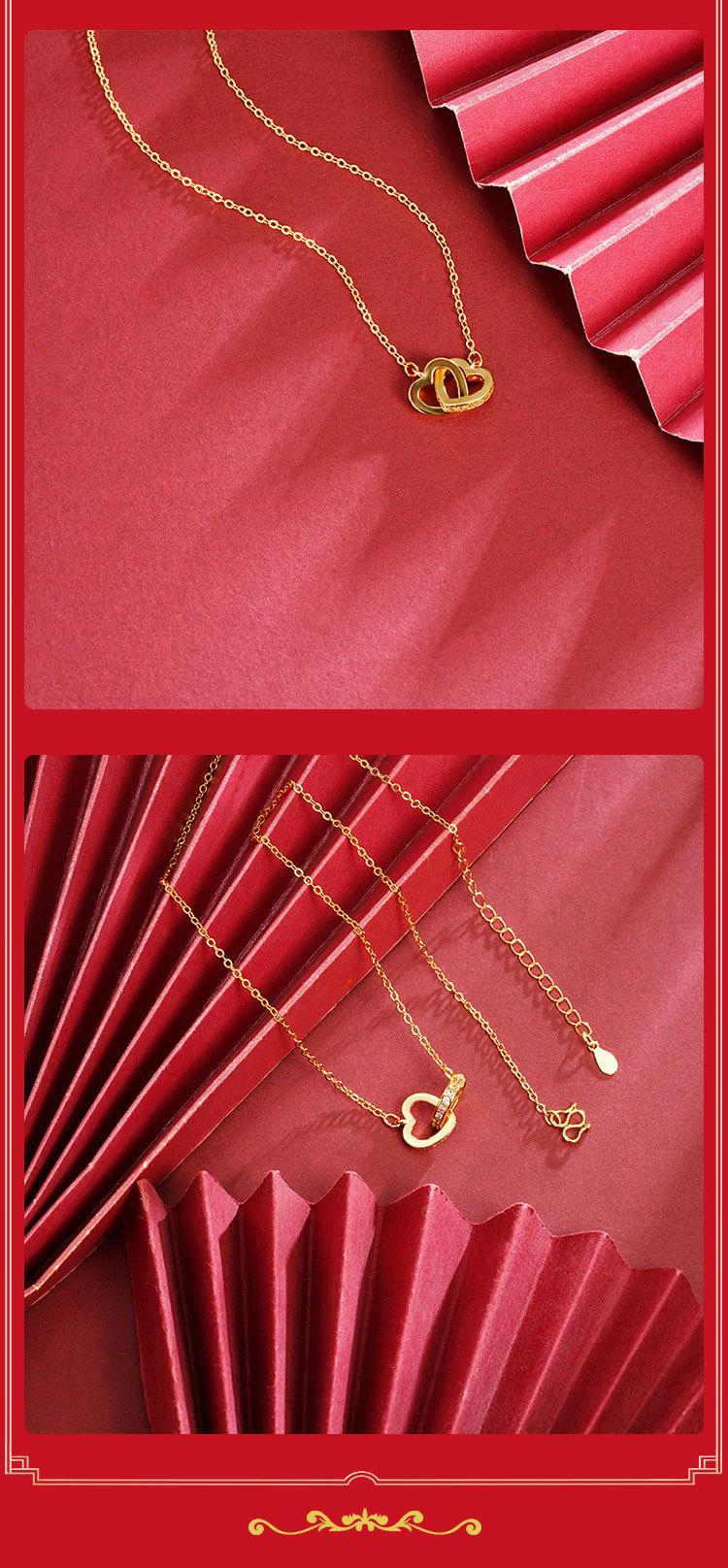 Nuevo Collar de Oro Arena Vietnamita Corazón a Corazón con Diamantes Engastados Línea en Forma de Corazón Cadena para Clavícula Diseño para Mujer Joyería Simple para Principiantes