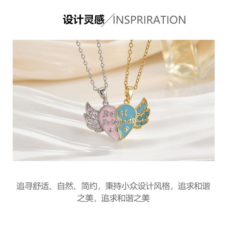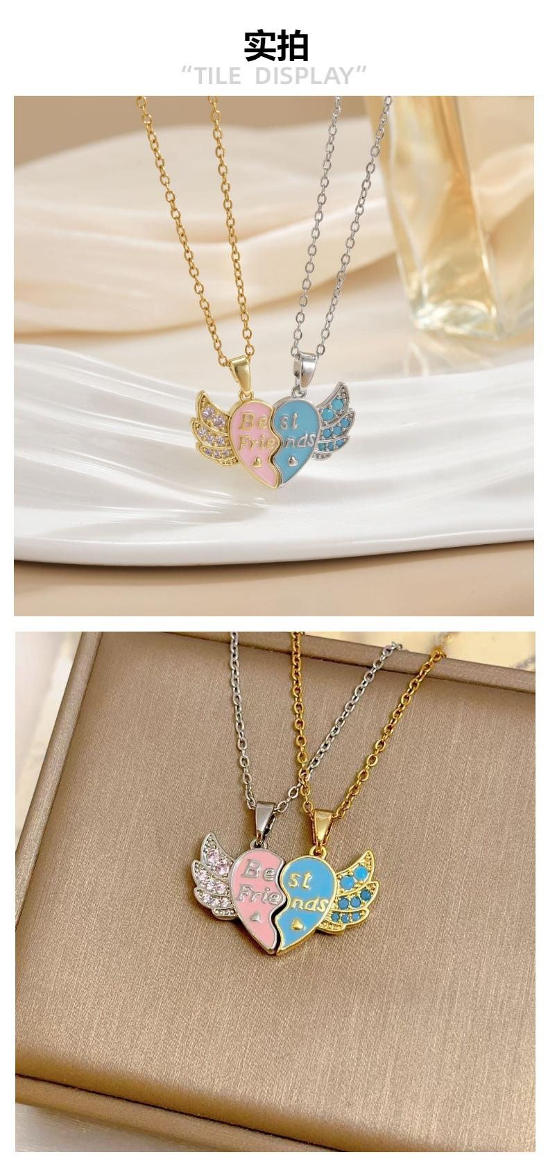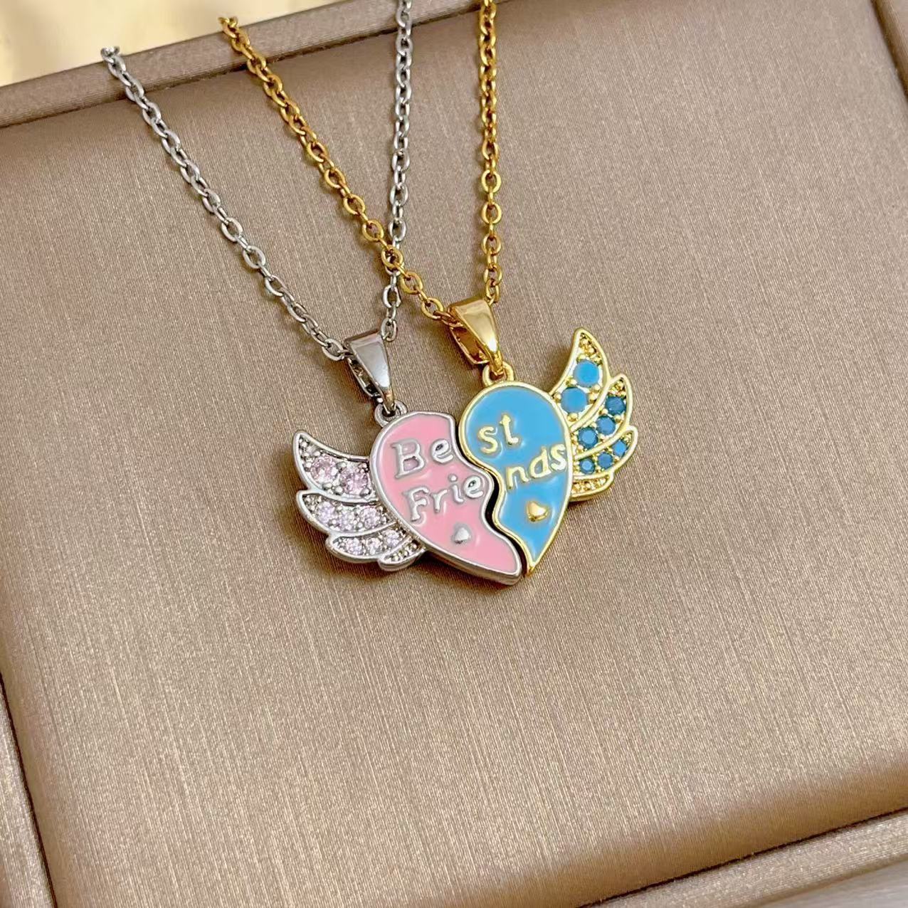 Collar con colgante de alas y costuras en forma de corazón para novias, amigos y mejores amigos, con carta transfronteriza de Amazon