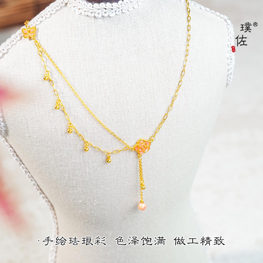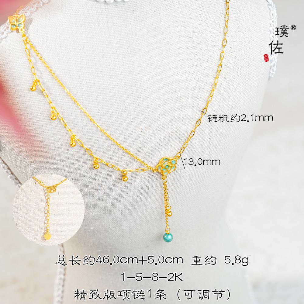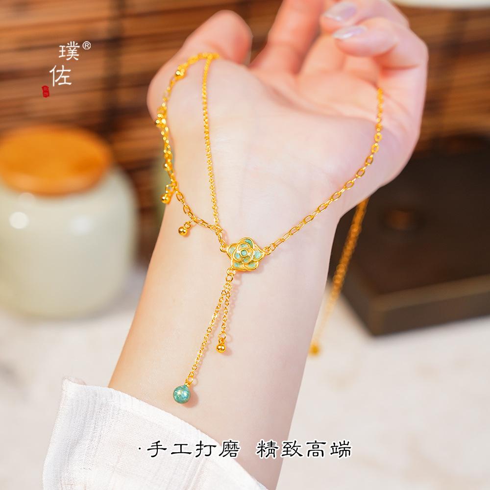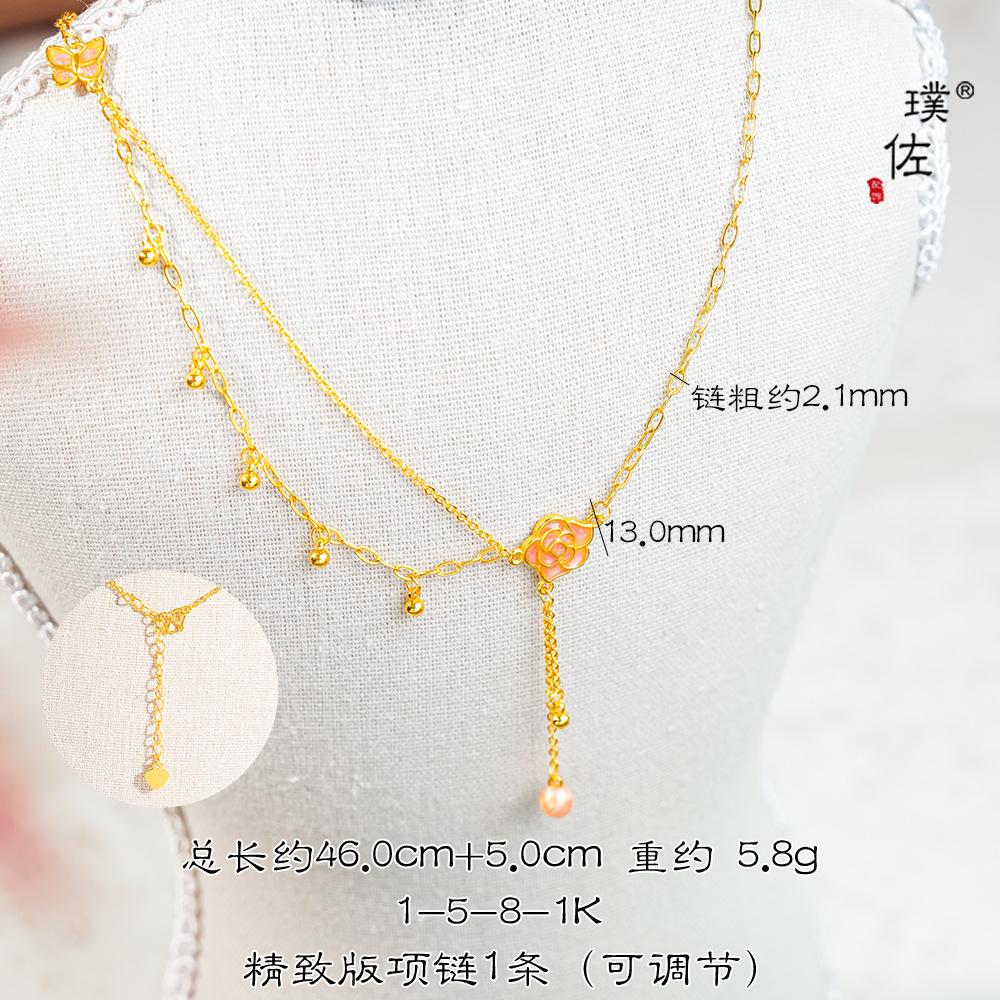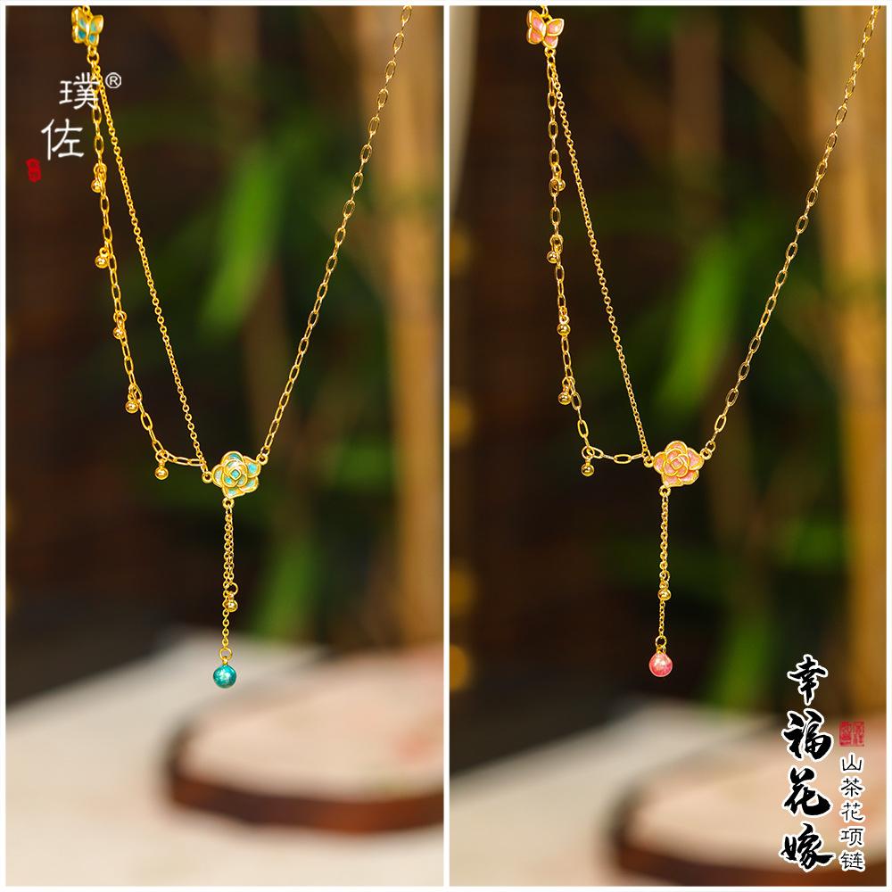 Puzuo Tienda de Oro Mismo Estilo Sha Jin Collar de Borla de Flor de Camelia Estilo Femenino Cadena de Clavícula de Lujo Ligero Regalo para Novia