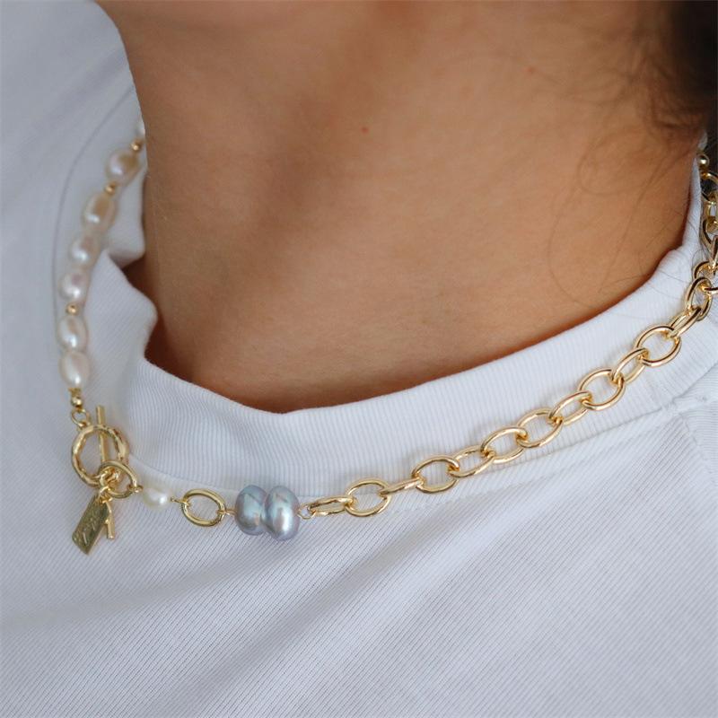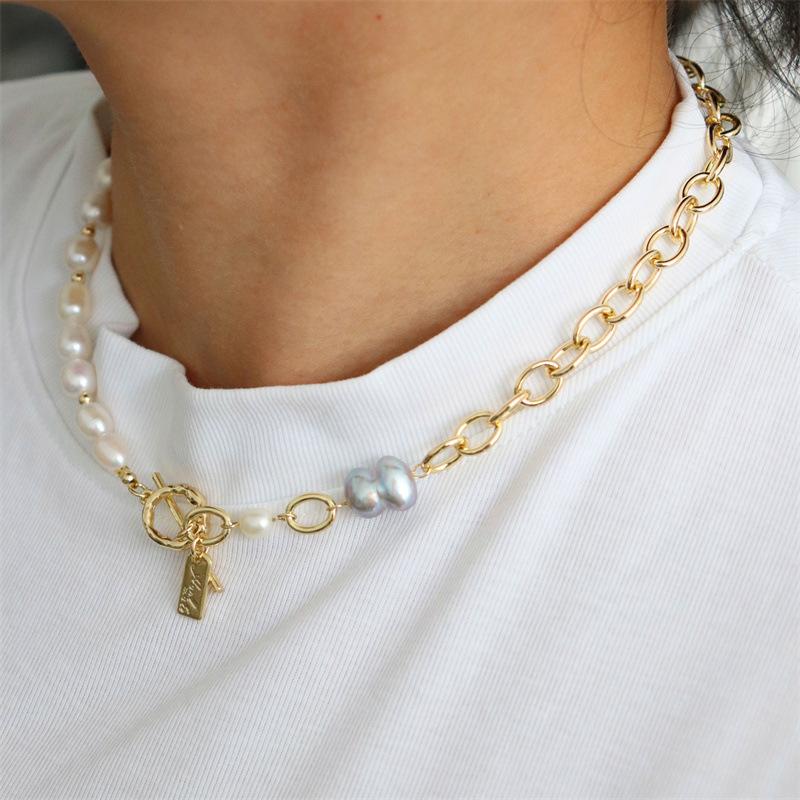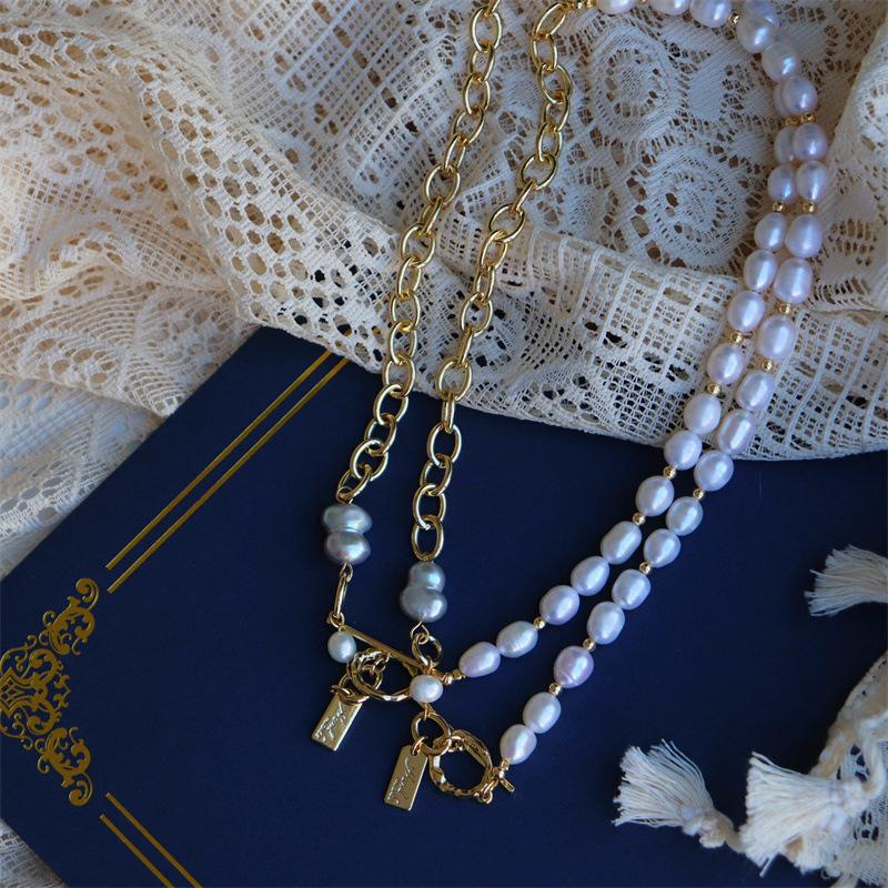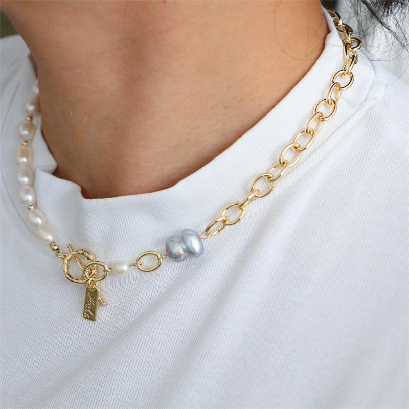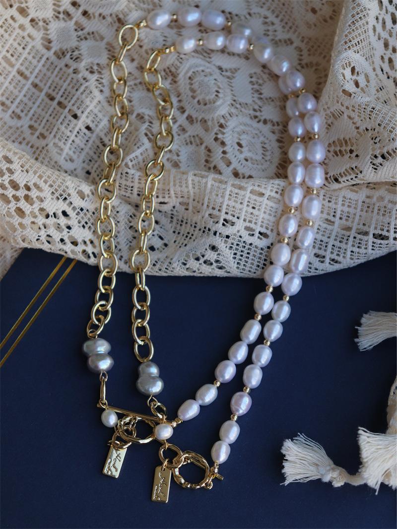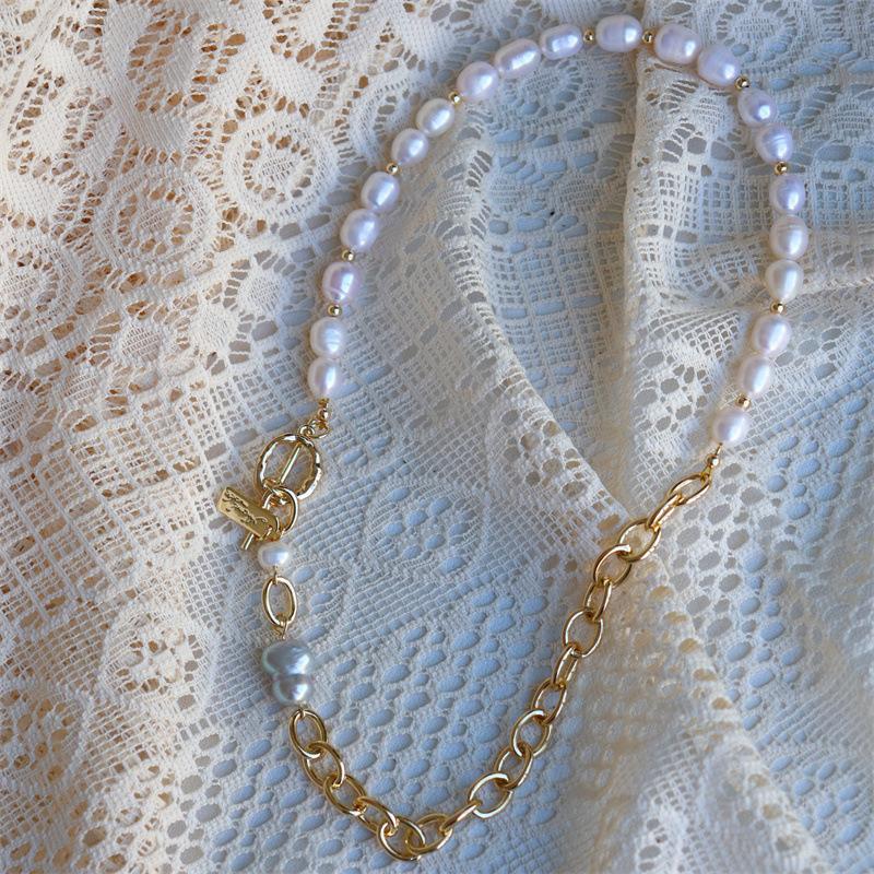Material: Perla natural de agua dulce cadena chapada en oro con retención de color.
