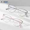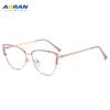 Gafas antiluz azul para mujer, ultraligeras, modernas, personalizadas, con montura de ojo de gato, nuevo estilo, con montura de metal y miopía.