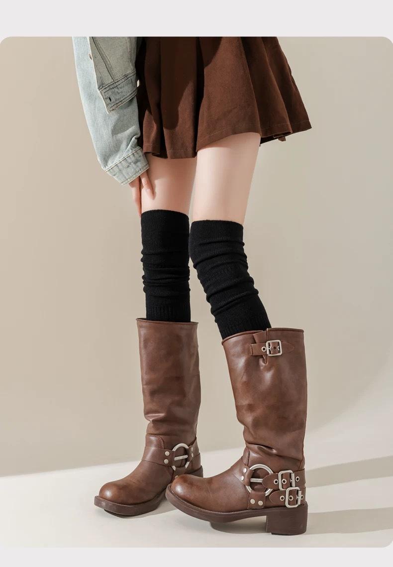 Calcetines hasta la rodilla para mujer, calentadores largos cálidos antideslizantes para otoño e invierno, adecuados para combinar con botas, calcetines apilados con forro polar para mayor calidez