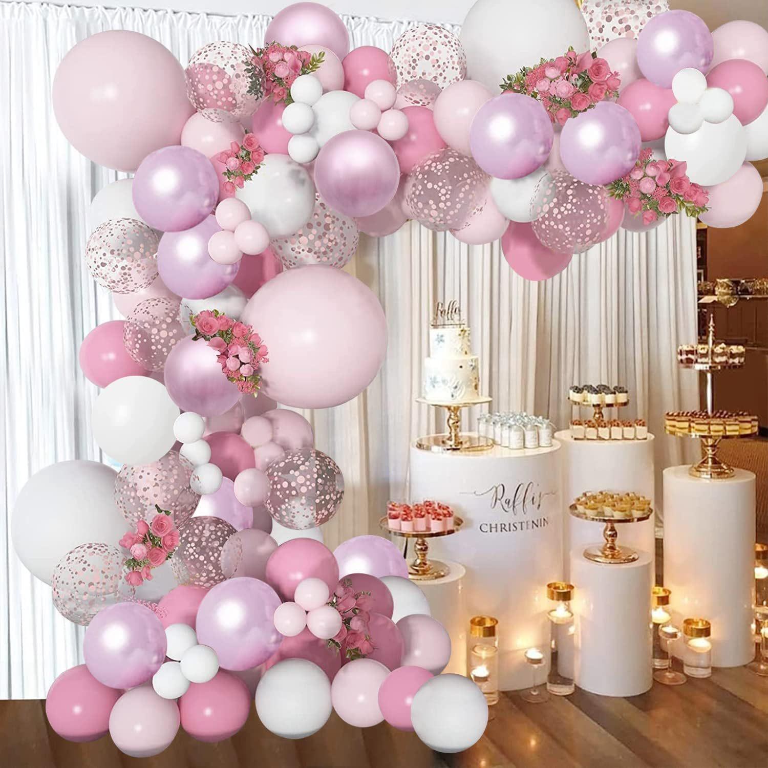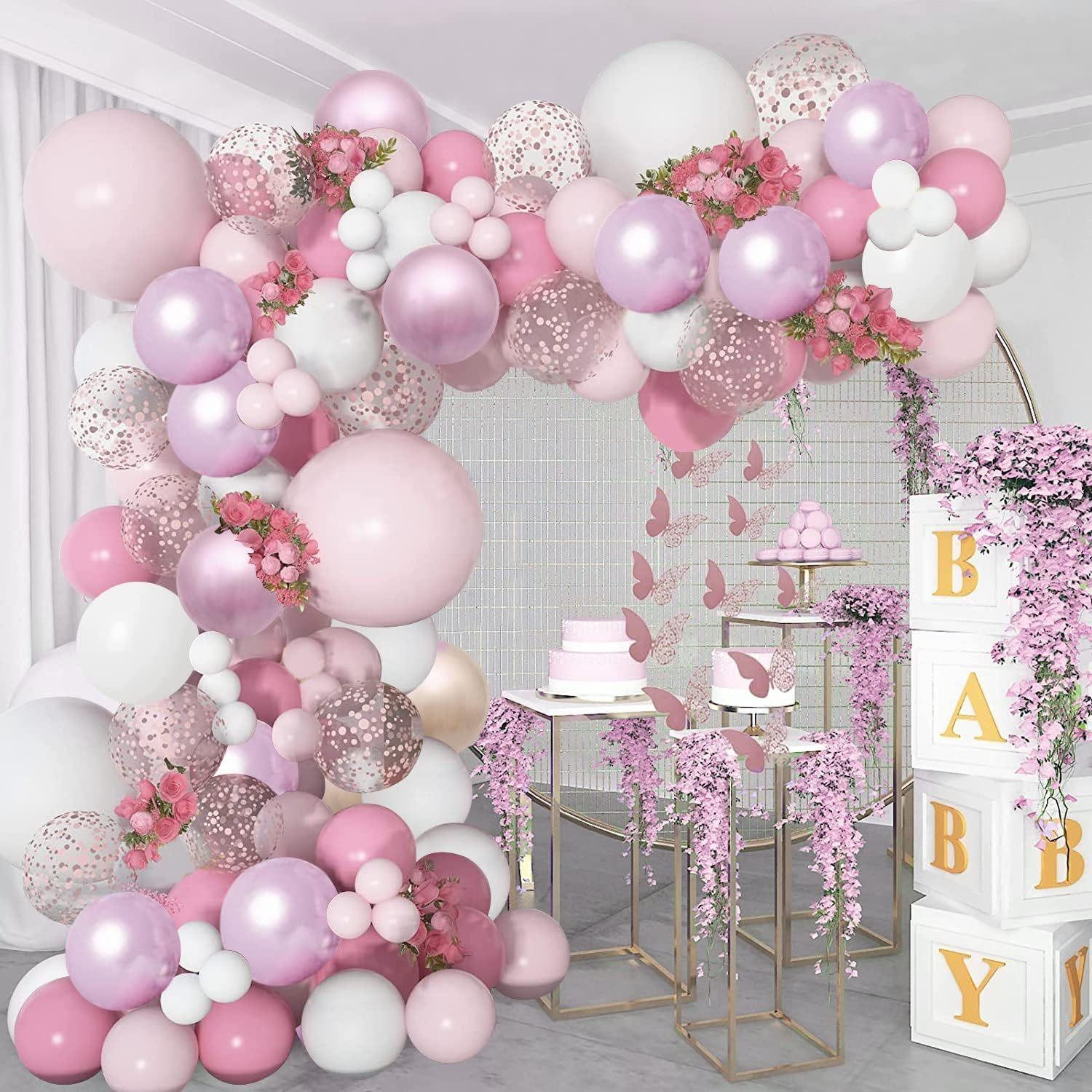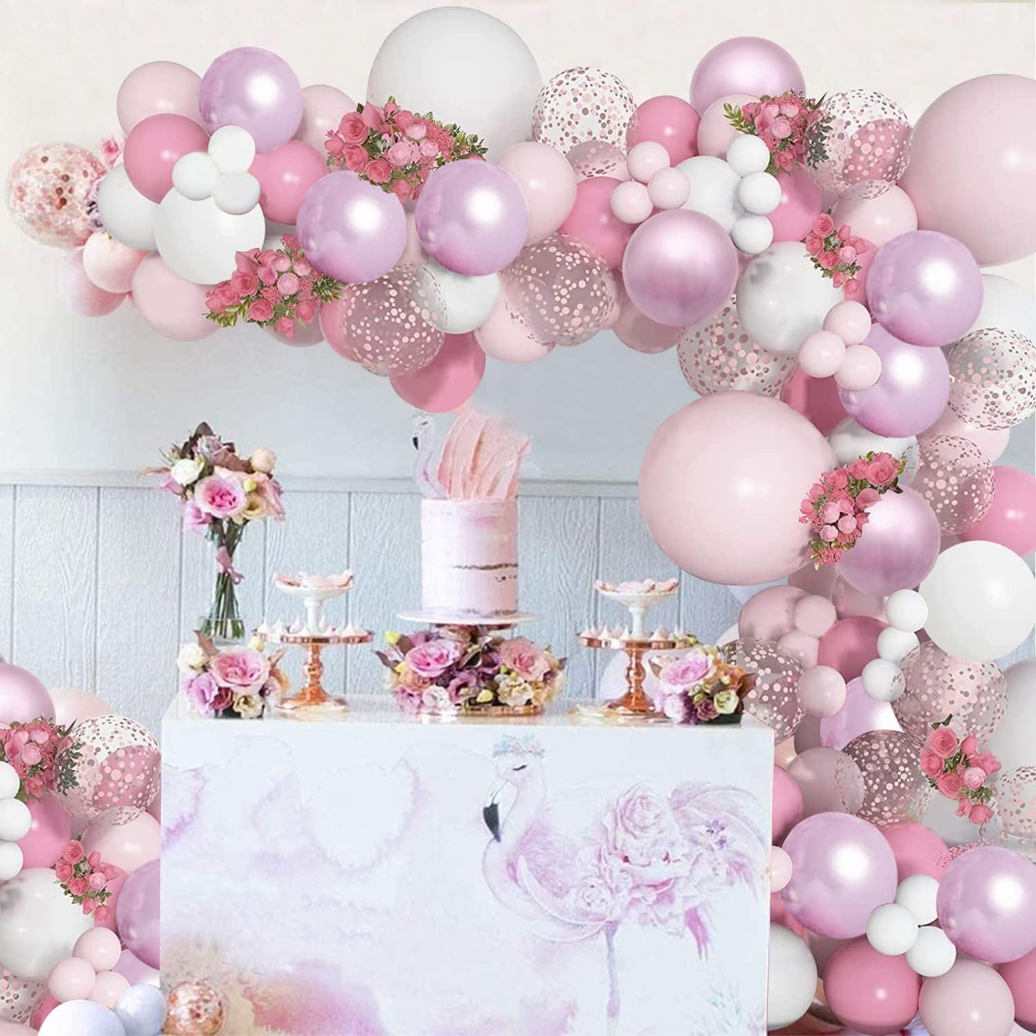 Traje de globo de arco de guirnalda rosa metalizado para fiesta de cumpleaños, despedida de soltera, fiesta de aniversario, boda