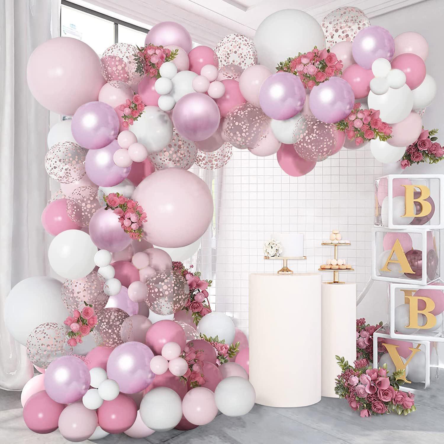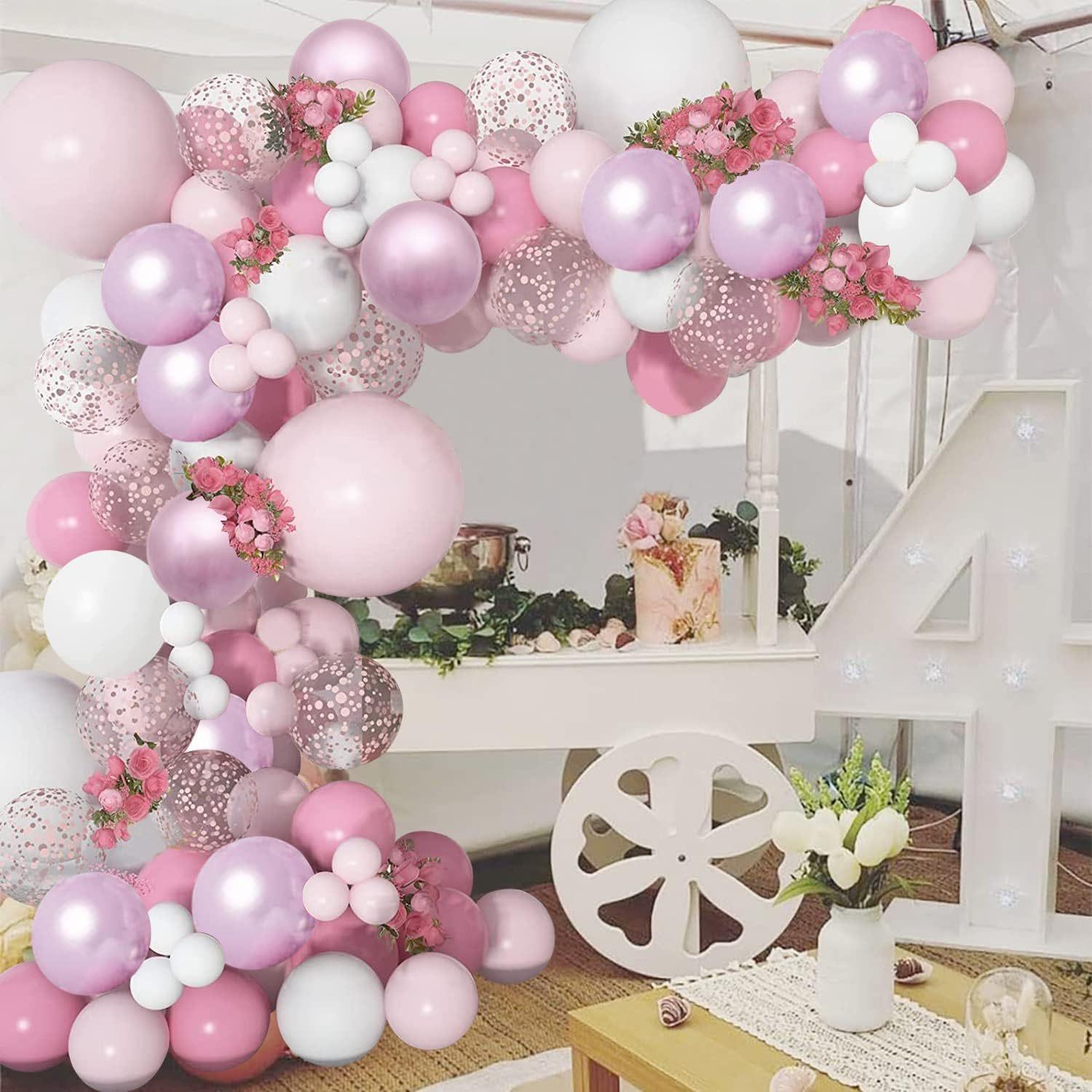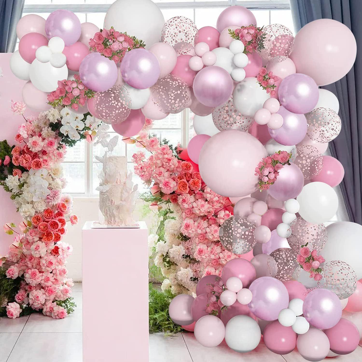 Traje de globo de arco de guirnalda rosa metalizado para fiesta de cumpleaños, despedida de soltera, fiesta de aniversario, boda