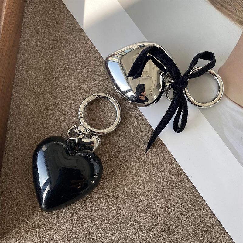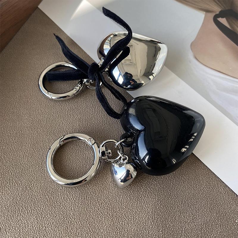 Corea del Sur Ins Black Love Bag Colgante Accesorios Diseño de nicho Lazo Plata Llavero de amor Nuevo