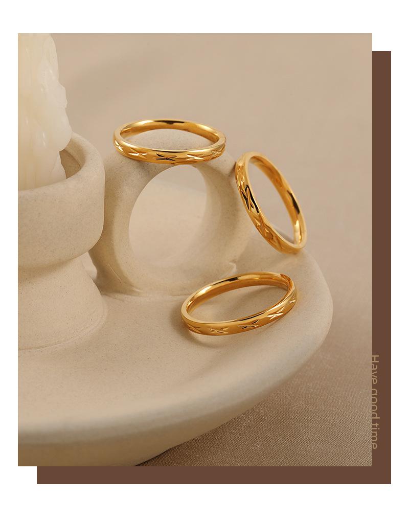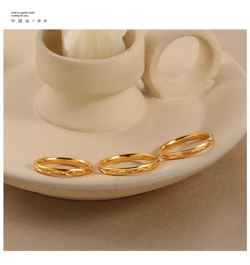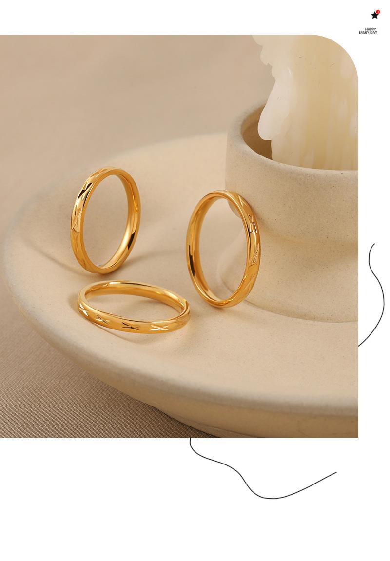 Nuevo anillo ultrafino de estilo coreano con diseño de flor y cuadros de diamantes cruzados, personalidad de moda, anillo para el dedo índice de acero de titanio chapado en oro.