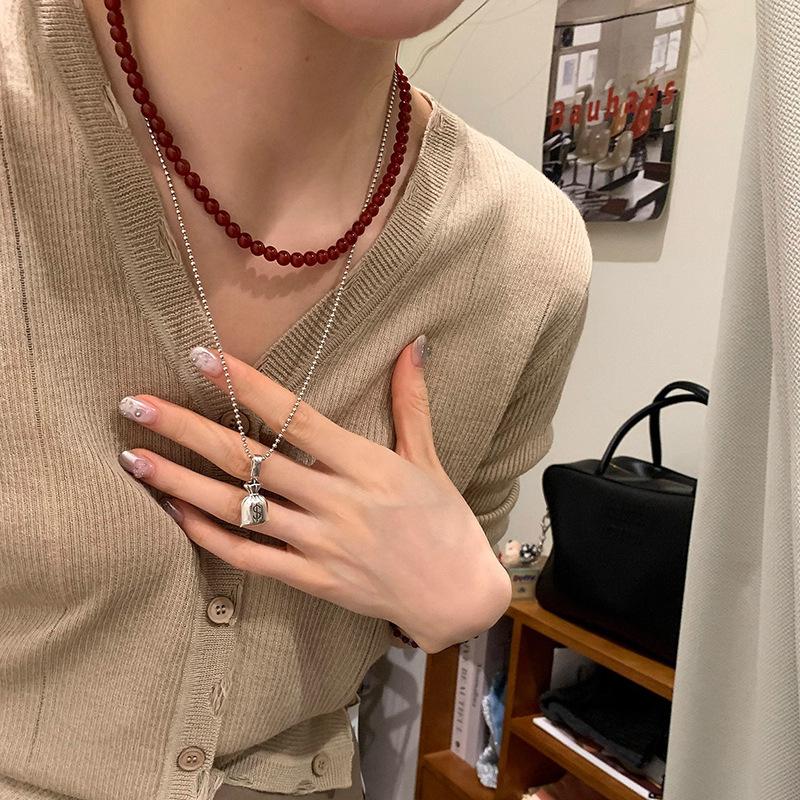 Collar de cadena de suéter largo con bolsa de dinero antigua vintage, nuevo collar de nicho para mujer, diseño rico para las cuatro estaciones, productos nuevos de alta gama