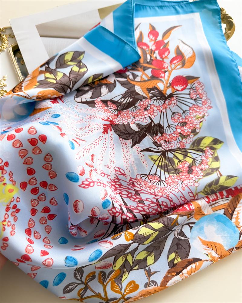 2025 nueva bufanda de seda cuadrada pequeña vintage de 70 cm, bufanda estampada de primavera y verano, bufanda profesional