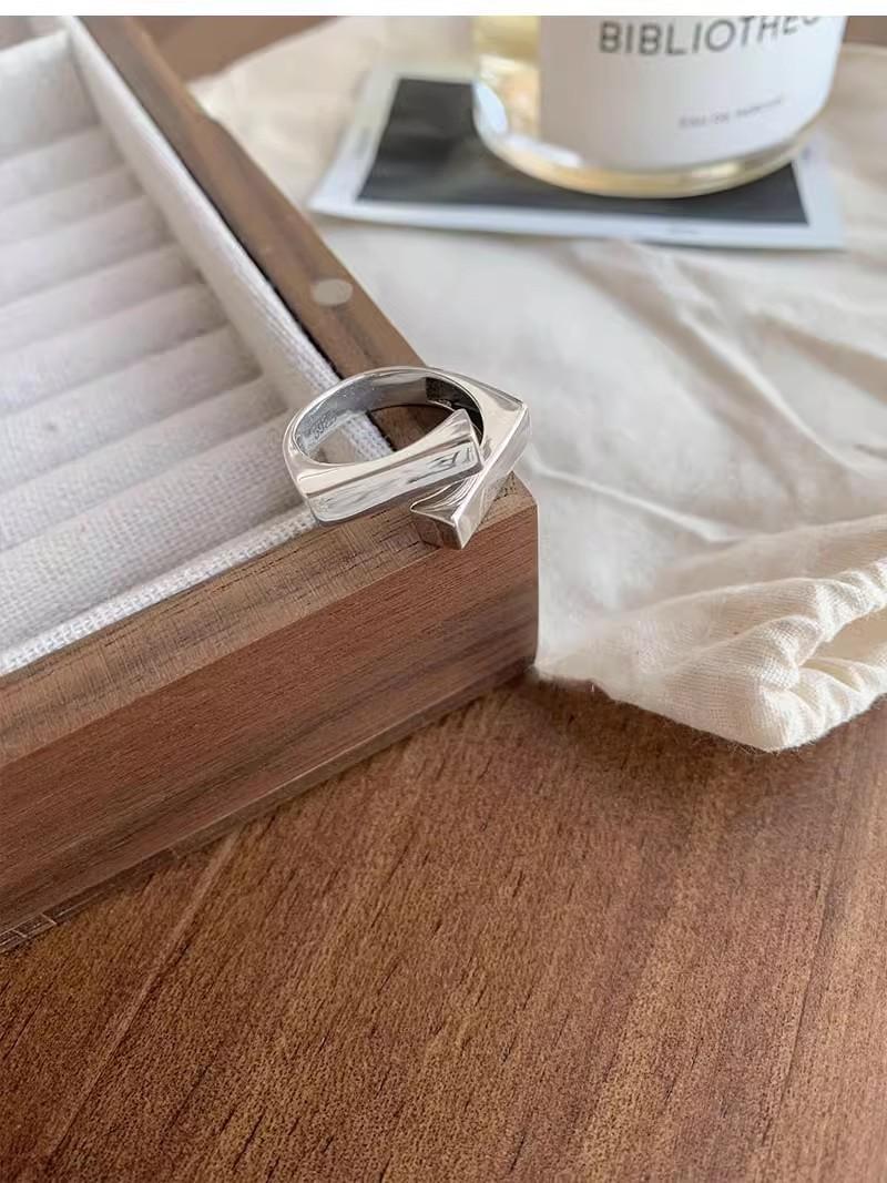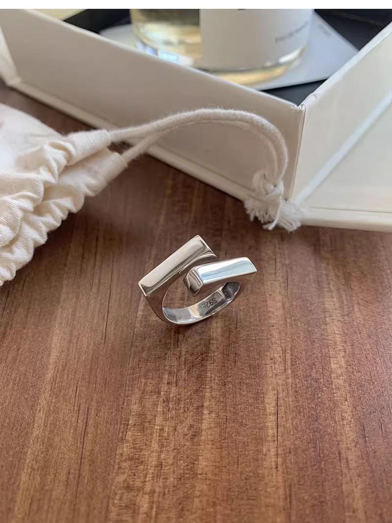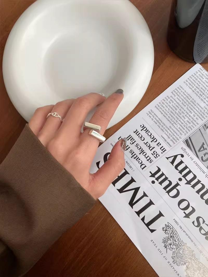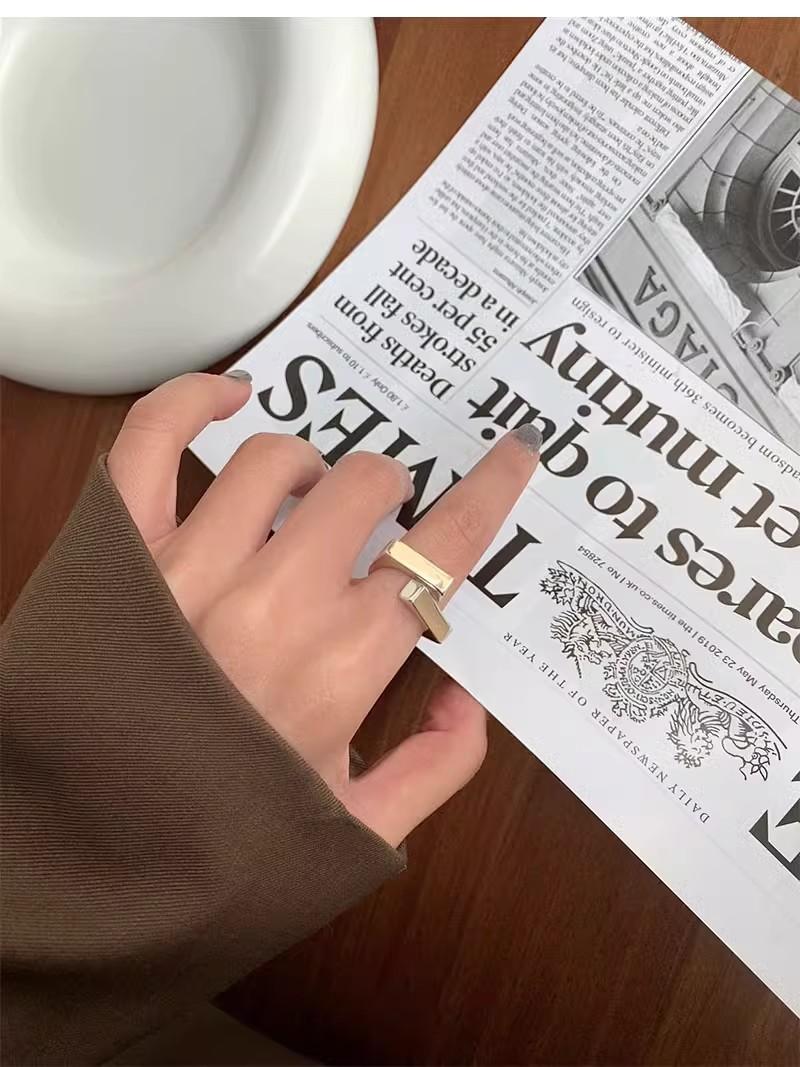 Anillo abierto cuadrado largo escalonado de Corea del Sur para mujer, nuevo diseño de nicho de moda, anillo minimalista de estilo frío a la moda.