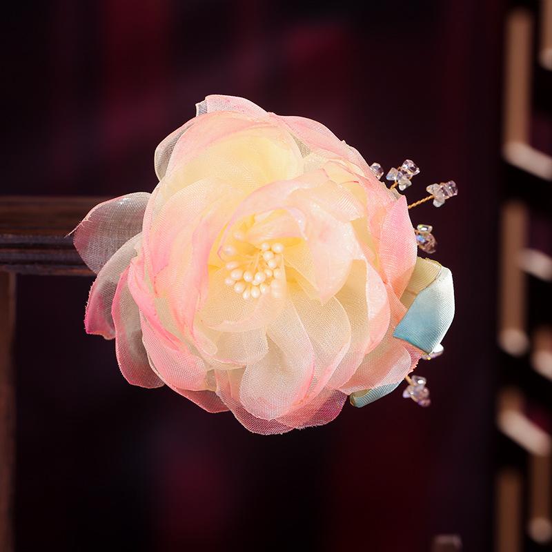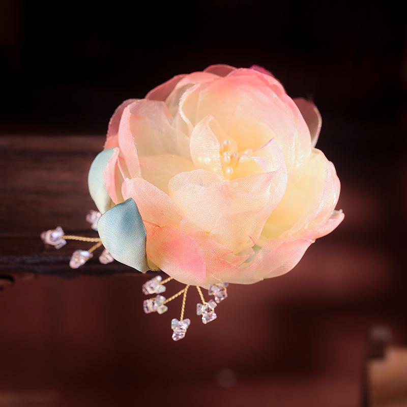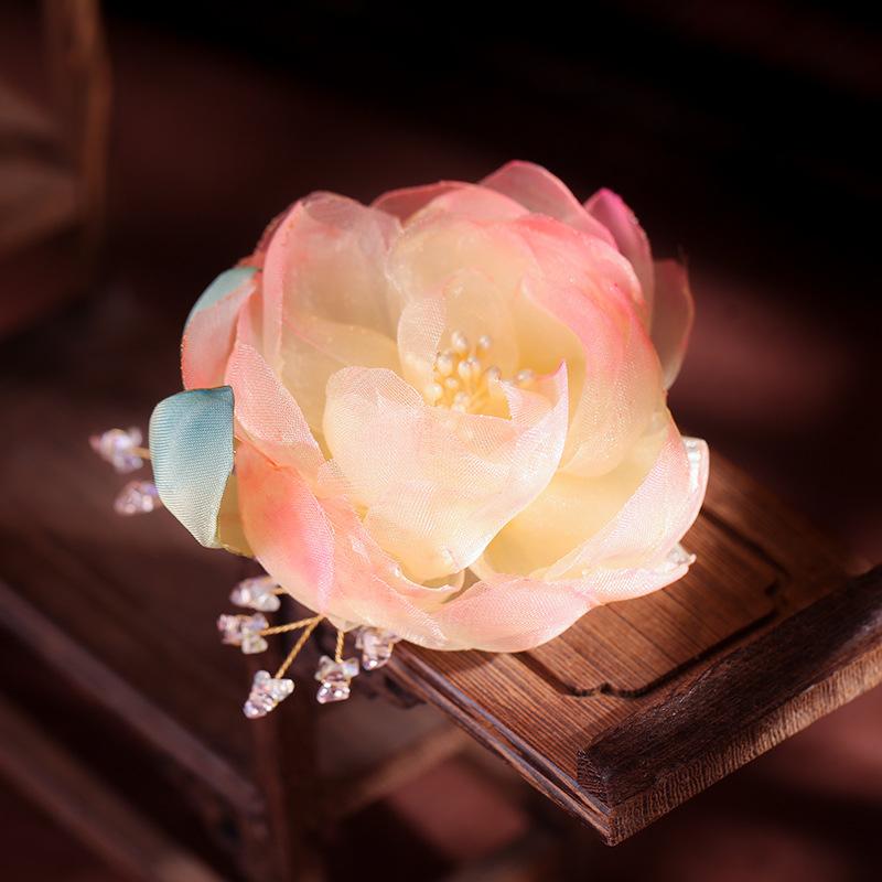 Súper hada caliente floral organza clip lateral clip para el cabello hilo de seda de alta gama borla antigua hecho a mano nuevo clip diario para el cabello