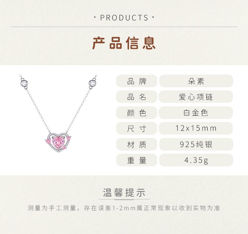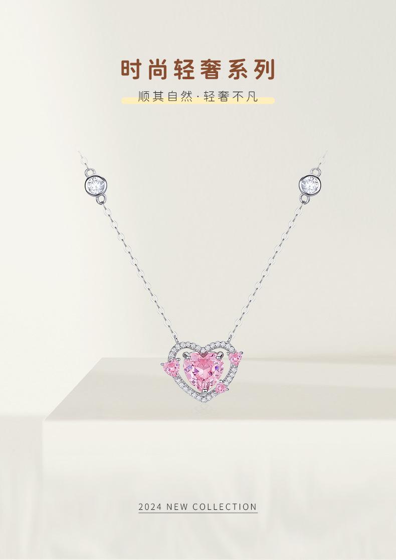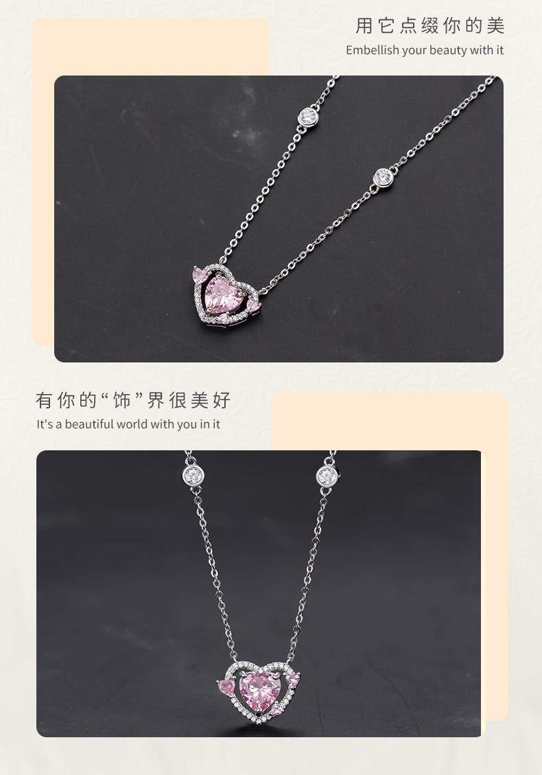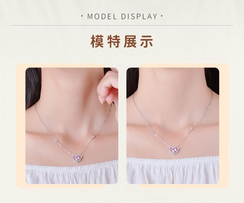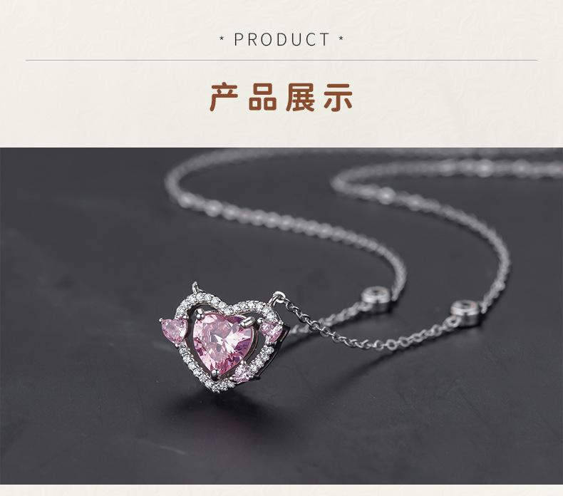 Collar de Corazón de Plata Esterlina 925 con Diamante Rosa para Mujer, Cadena de Cuello Personalizada de Alta Gama, Cadena para Clavícula, Joyería de Plata Mei Long del Condado de Haifeng