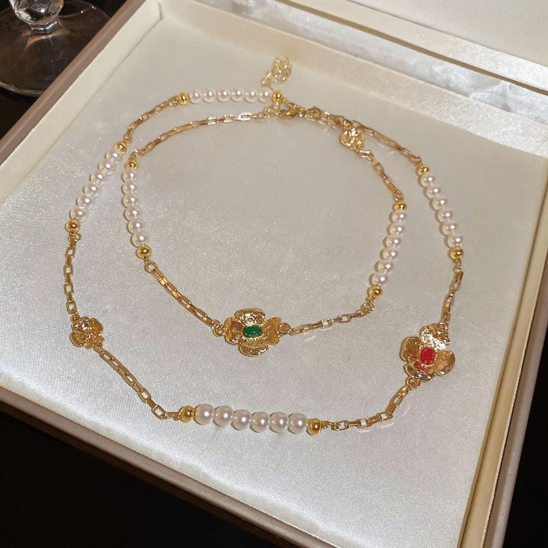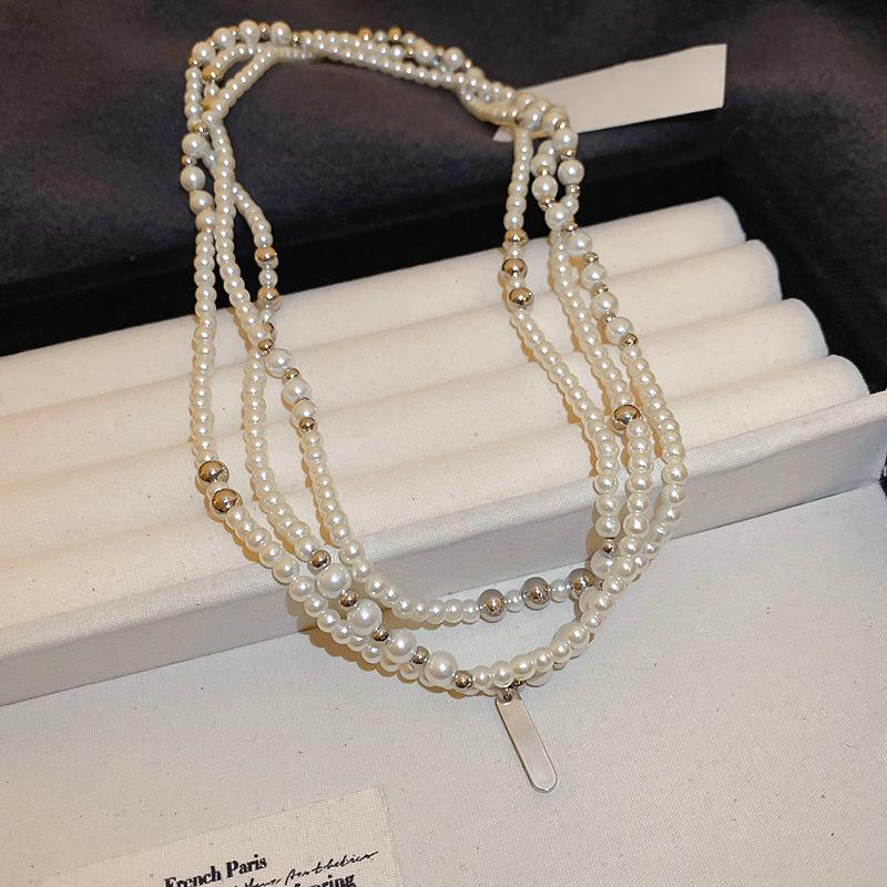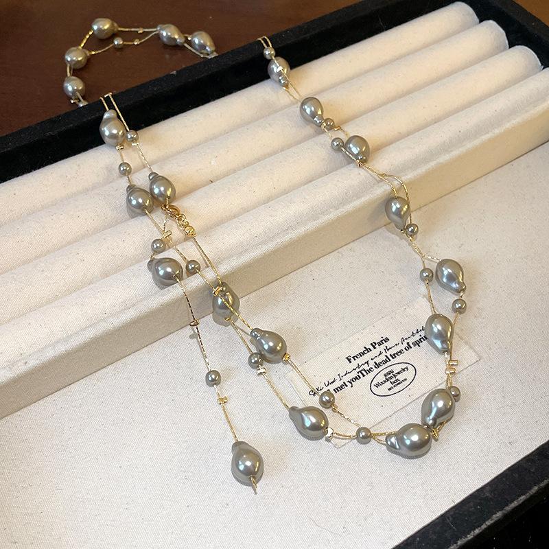 Collar de perlas de circón a bajo precio, estilo retro, de alta gama, combinable con todo, cadena ligera de lujo, joyería de nicho para mujer, venta al por mayor
