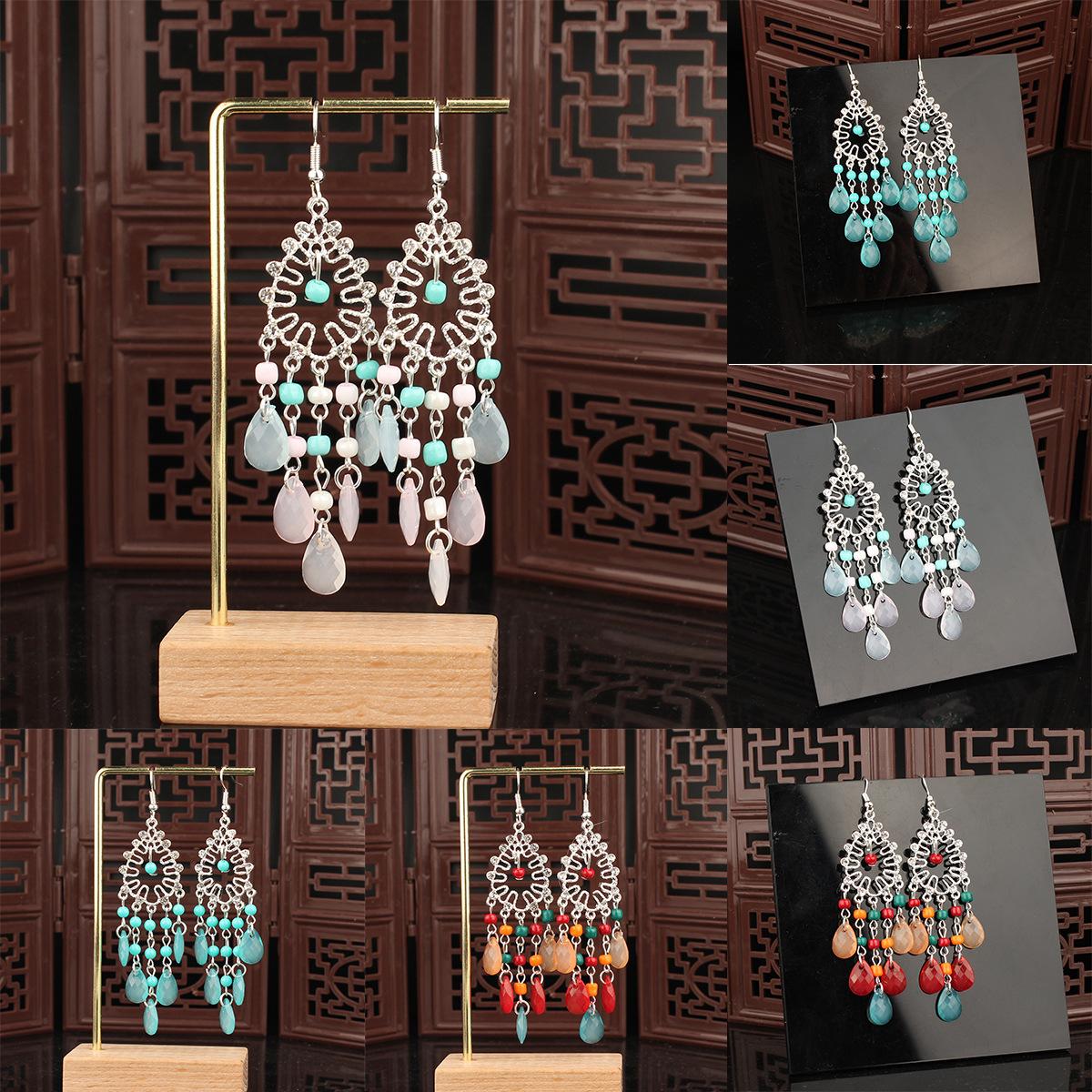 Nuevos pendientes de borlas con gotas de agua transfronterizos de Europa y Estados Unidos, pendientes de gemas de estilo bohemio Joker de gran sentido en stock al por mayor